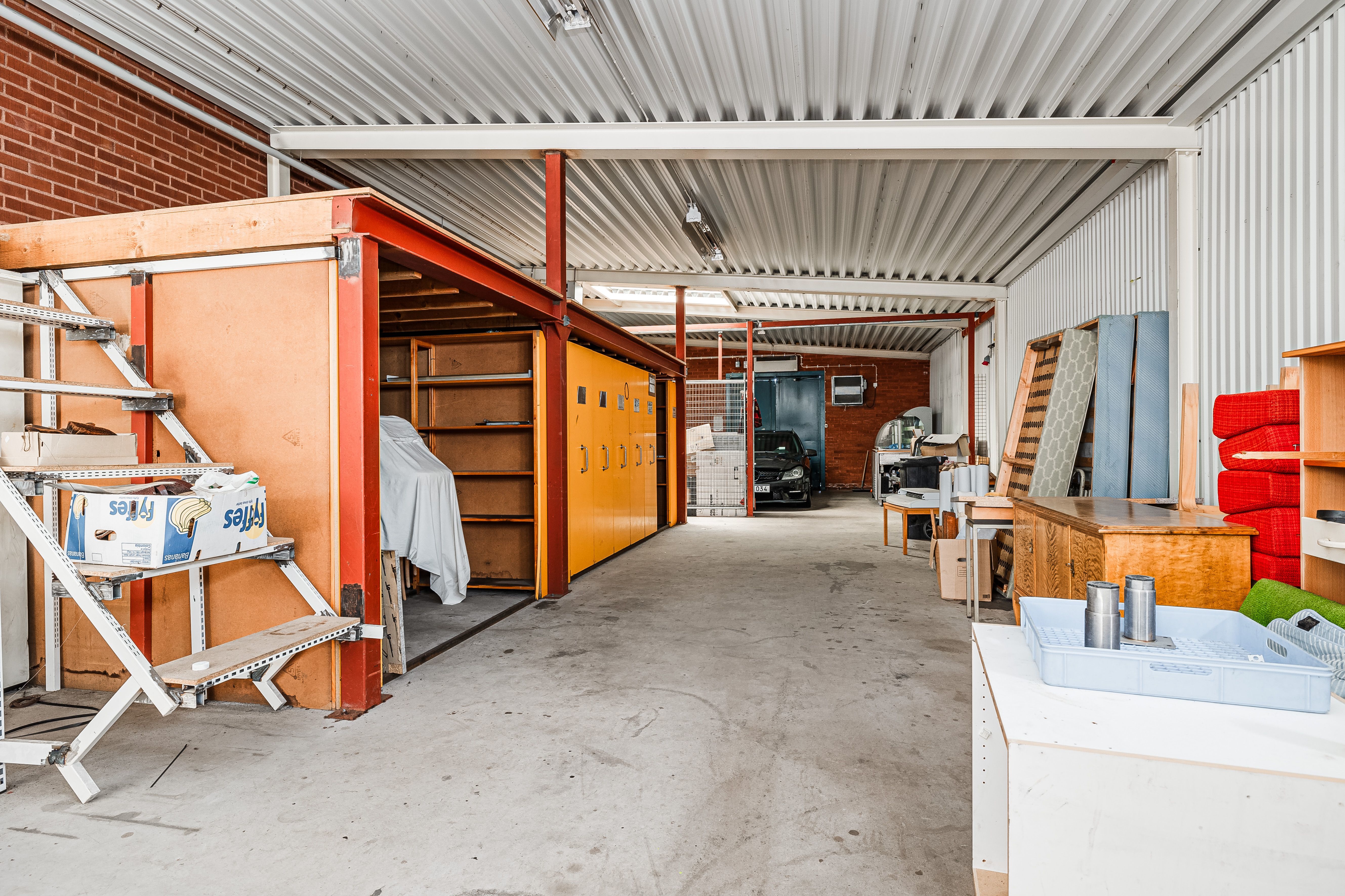 På fastighetens baksida finns en andra byggnad som utgörs av kallager uppdelat i två lokaler med egna dörrar, små små förråd samt tre garage. De två kallagerlokalerna har en vattenskada pga en tidigare läcka i taket och behöver renoveras.