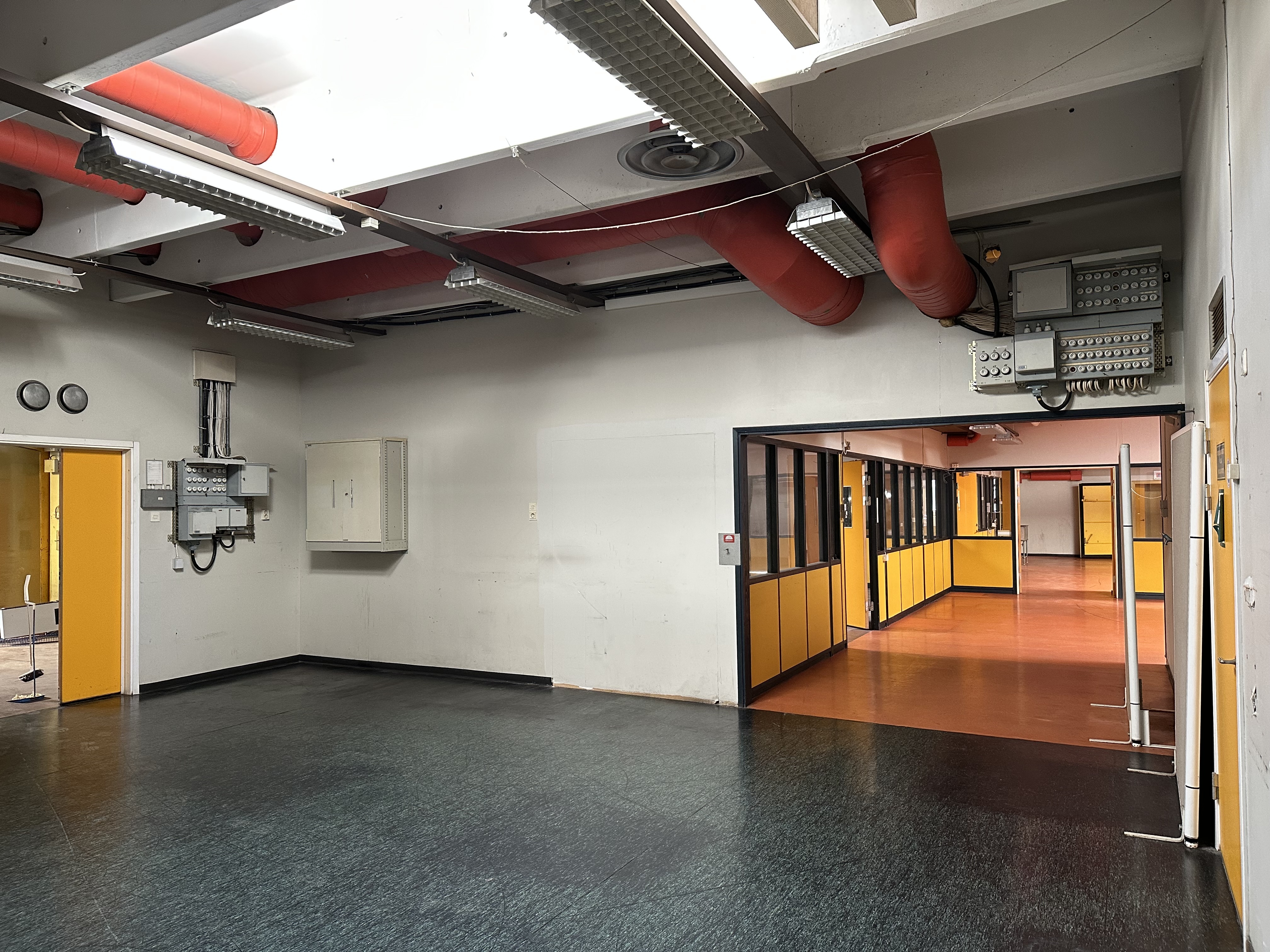 När du stiger in i byggnaden genom Entrén är du i kontors och personaldelen. Till vänster finner du kontorsytor i varierat öppet landskap och kontorsrum. Här kan du anpassa planlösningen efter din eller din hyresgästs verksamhet då få mellanväggar är bärande. Till höger är konferens- och mötesrum, personalpentry med matplats och teknikrum. Här finns även separata omklädningsrum för både kvinnor och män med tillhörande duschar och bastu. I byggnaden finns ett tiotal wc utspridda på strategiska platser. Omklädningsrummen är belägna i skyddsrummet som fortfarande är av MSB att betrakta som aktivt.