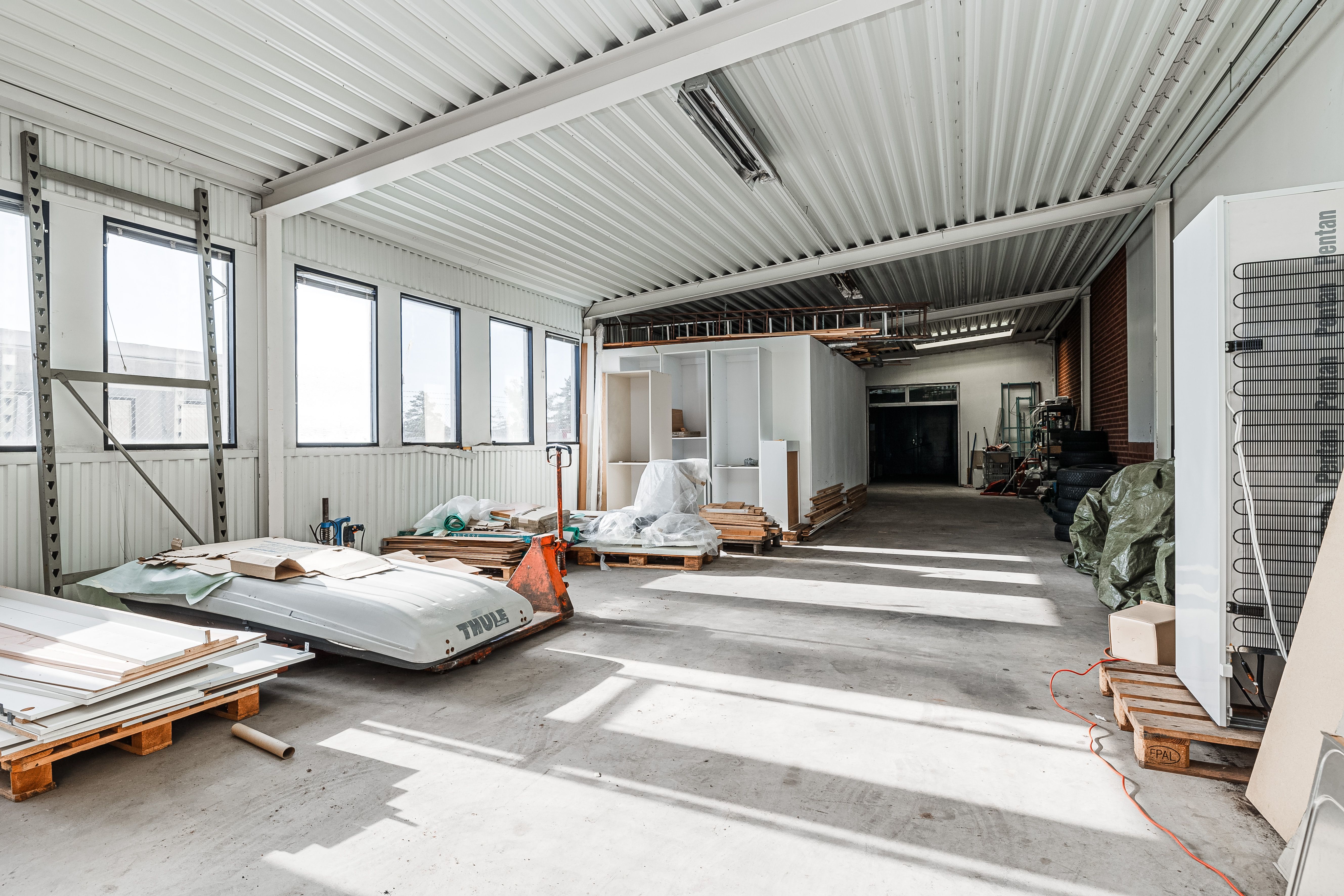 Byggnaden uppfördes ursprungligen för "Västerviks Tidningen" och har nu senast använts för försäljning, lager och showroom av kök. Totalt finns plats för uppemot 50+ arbetsplatser såsom byggnaden är planerad nu. Vidare in i byggnaden når du lager och verkstadshallarna som är uppdelade i 4 sektioner med öppna pelarfria ytor. Takhöjd om ca 3,2 meter under balk, betonggolv samt golvbrunnar. Innanför verkstads/lagerdelen når du senaste tillbyggnaden som är varmlagret med lastport både åt byggnadens fram och baksida.