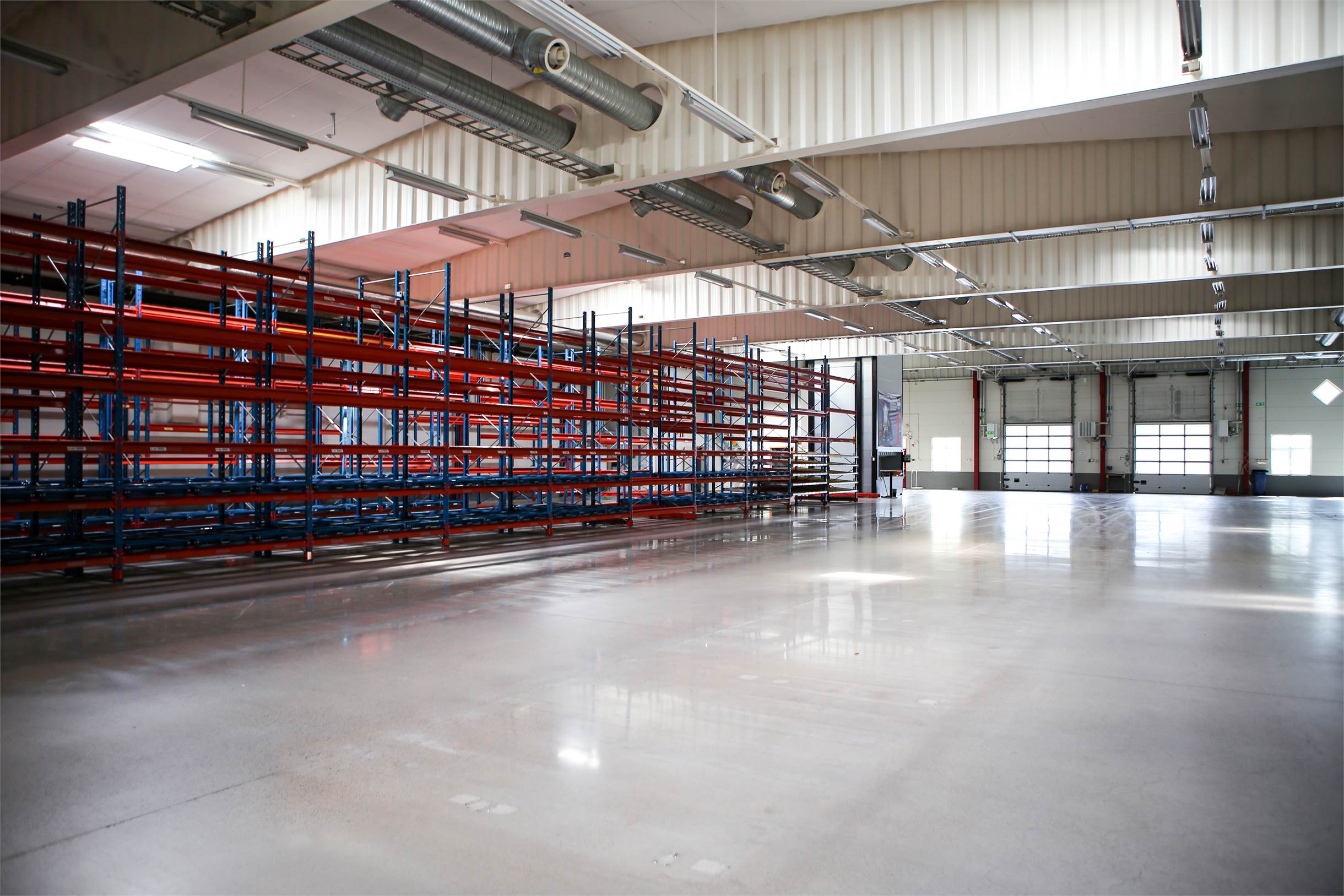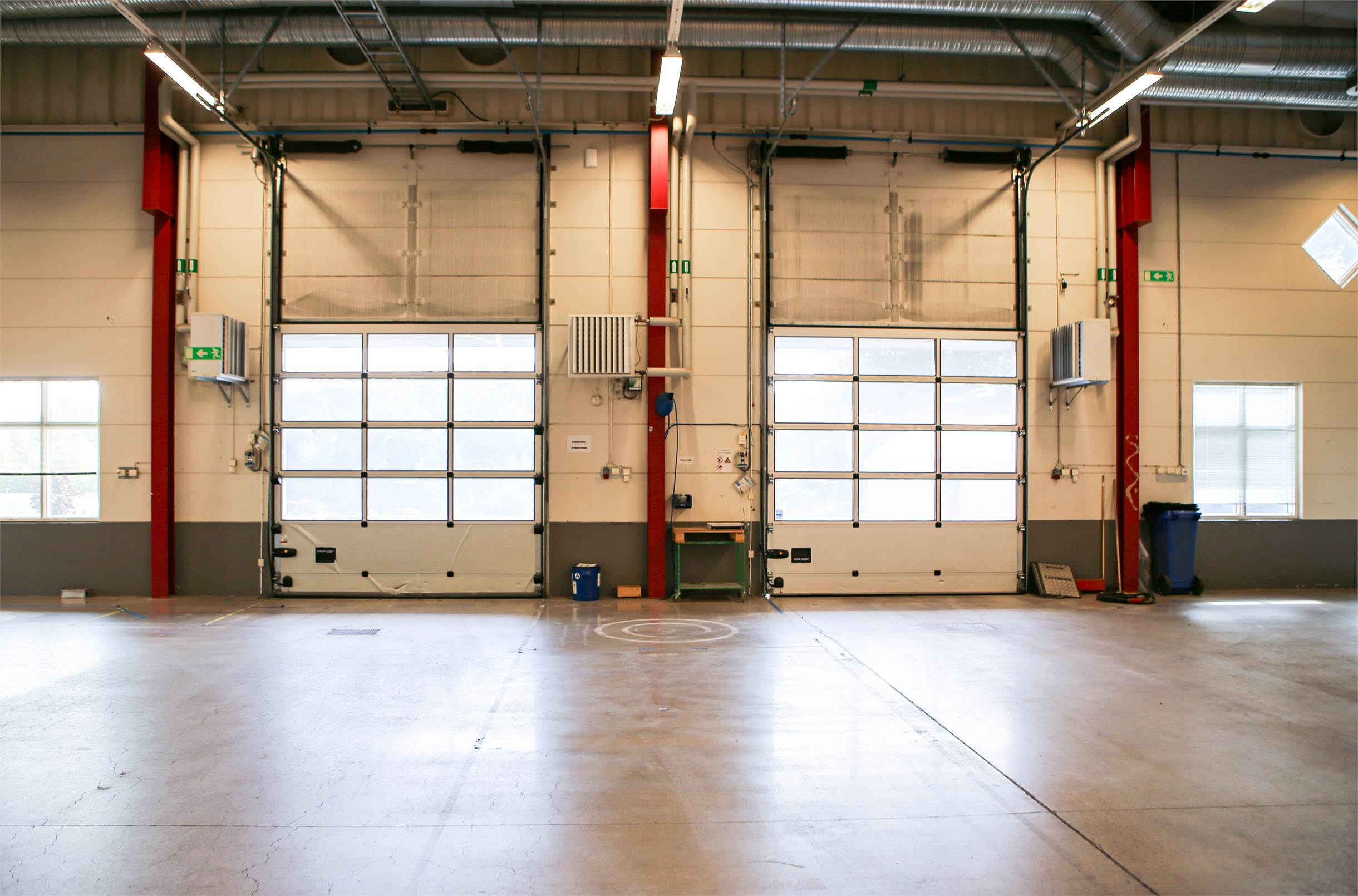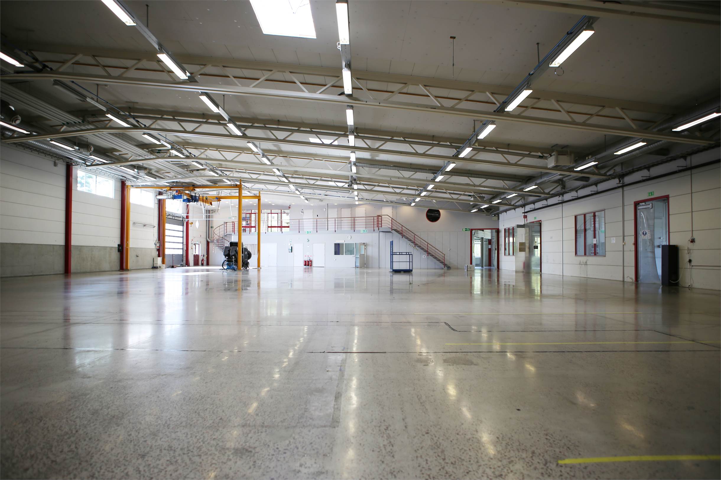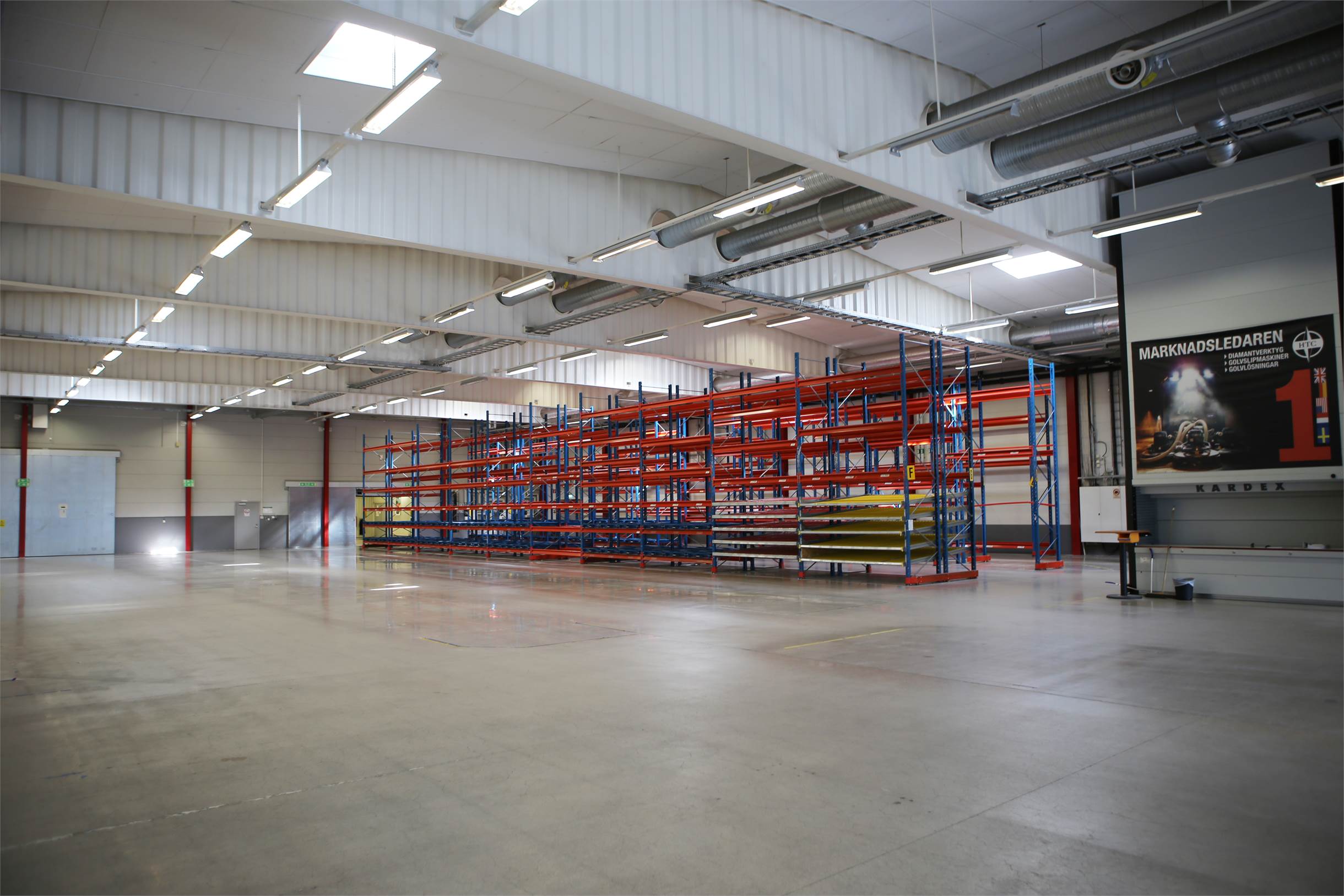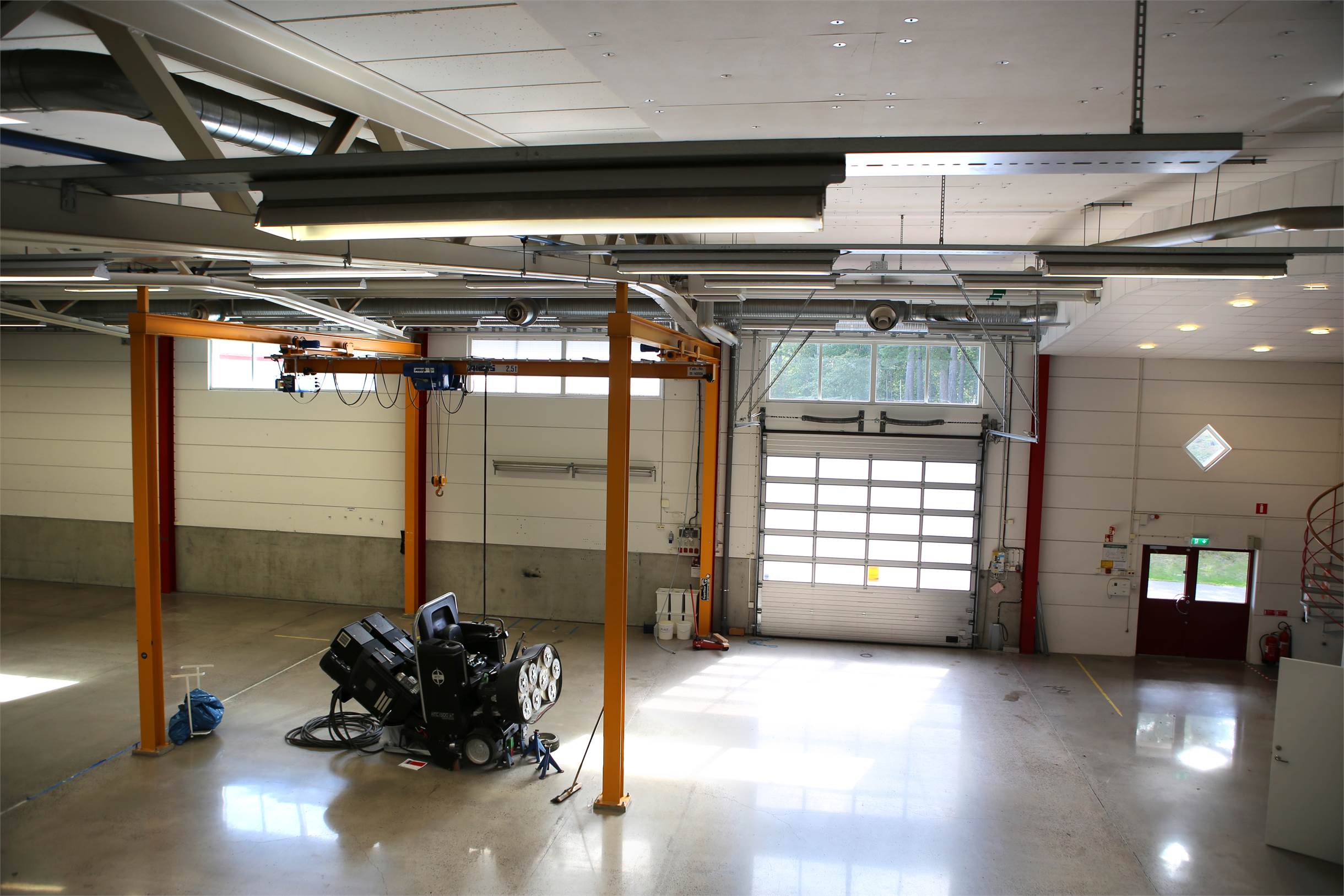 • Byggnaden är i gott tekniskt skick med en högsta takhöjd på ca 6 meter (upp till underkant balk) och golvbärighet på ca 5 kN/m². Det finns goda inlastningsmöjligheter med sex utvändiga portar, varav fyra markportar och två portar mot lastkajen.