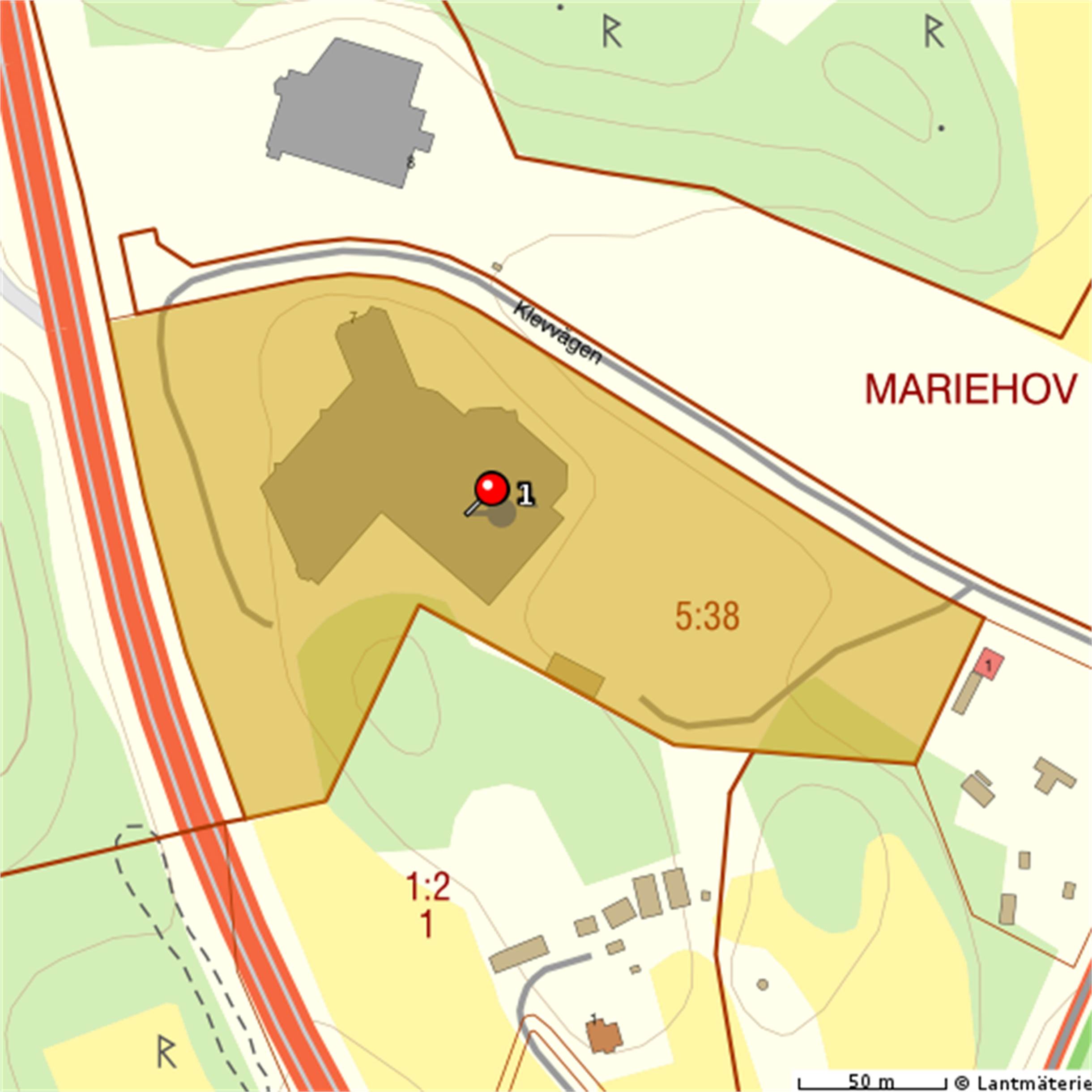 På den obebyggda delen av fastigheten utgörs tomten av rangerytor och ett stort antal parkeringsplatser, totalt 78 stycken.