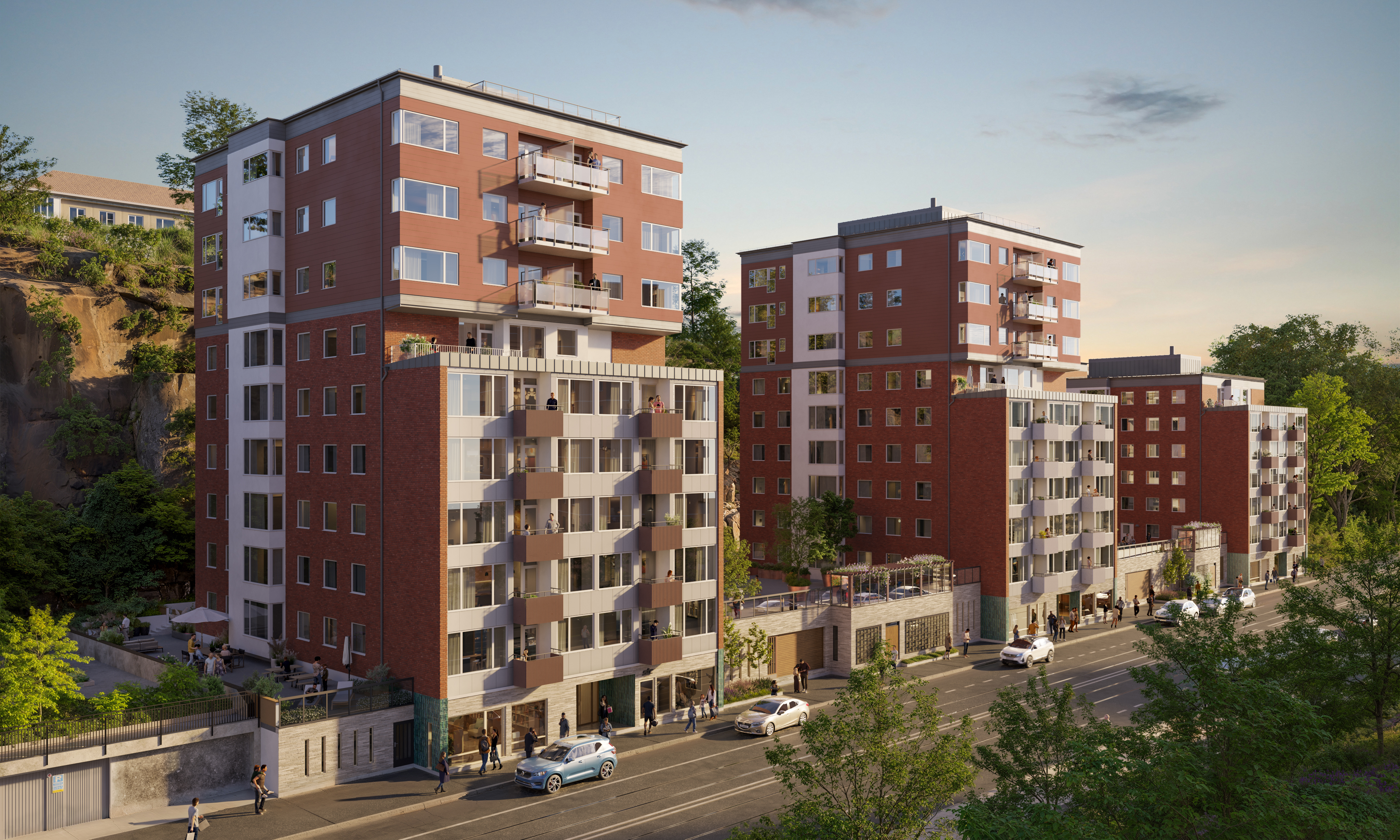 Expansiva Majorna med många bostäder och trafikerad gata.
