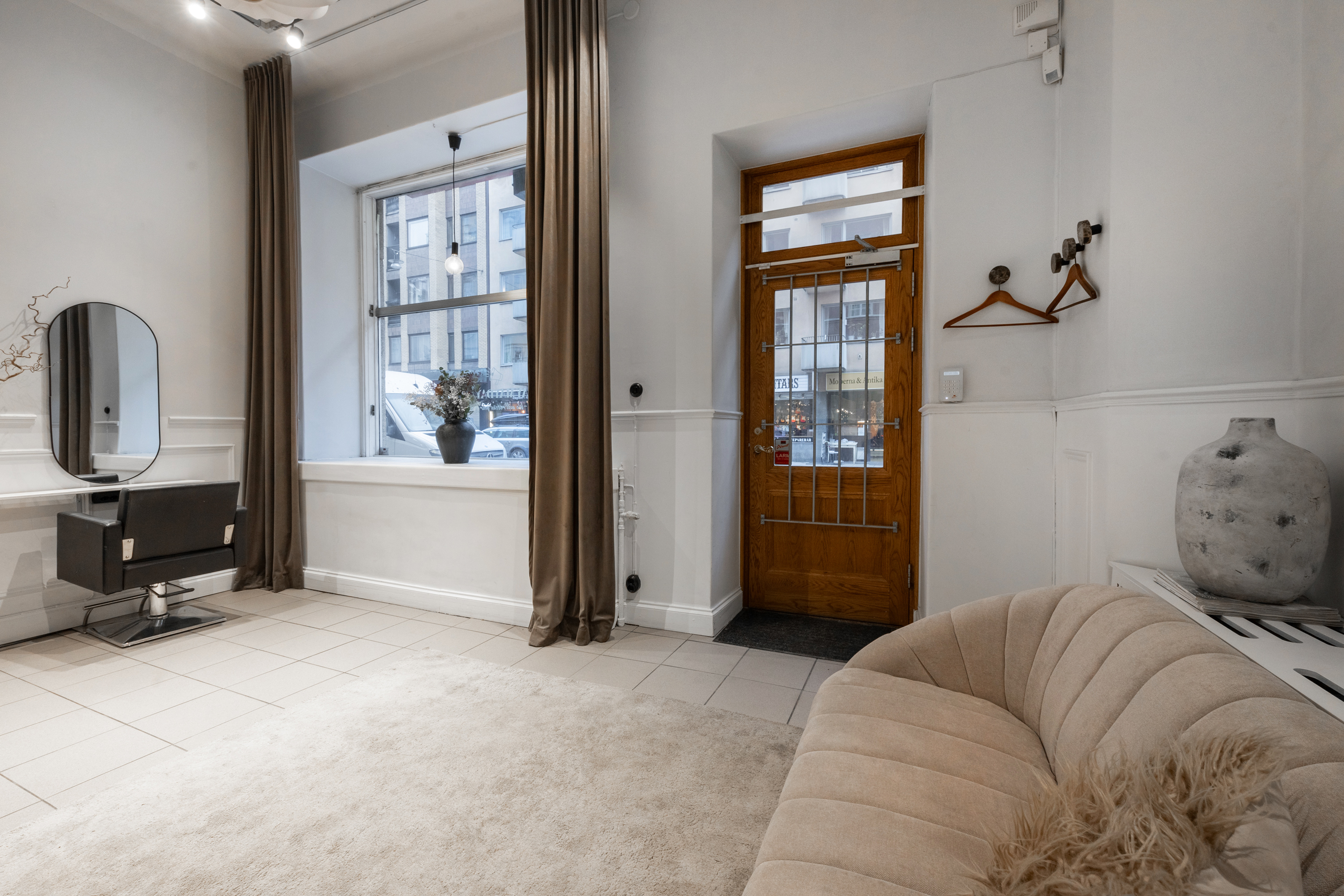Välkommen till en stilfull och flexibel lokal som lämpar sig utmärkt för butik, studio eller showroom. Den charmiga fasaden och de stora skyltfönstren ger ett starkt visuellt uttryck och utmärkt exponering mot gatan. Invändigt möts du av en ljus och smakfull miljö med genomtänkta materialval och en modern, elegant känsla. Planlösningen erbjuder generösa, öppna ytor för exponering i kombination med mer avskilda delar som enkelt kan anpassas för både lager och personalutrymmen. Den inbjudande atmosfären skapar en exklusiv kundupplevelse och passar perfekt för verksamheter inom exempelvis mode, inredning, skönhet, design eller konceptbutik. Lokalen är inflyttningsklar och flexibel, med goda möjligheter att anpassa ytorna efter verksamhetens behov. På nedre våningen finns praktiska och välplanerade faciliteter som underlättar den dagliga driften, såsom pentry med diskho och förvaring, tvättmaskin, utrymme för personalpauser eller mindre möten samt generösa förvaringsmöjligheter. Här finns alla förutsättningar för en effektiv verksamhet där funktion och presentation samverkar på bästa sätt — en perfekt plats för dig som vill kombinera synlighet, stil och funktion.