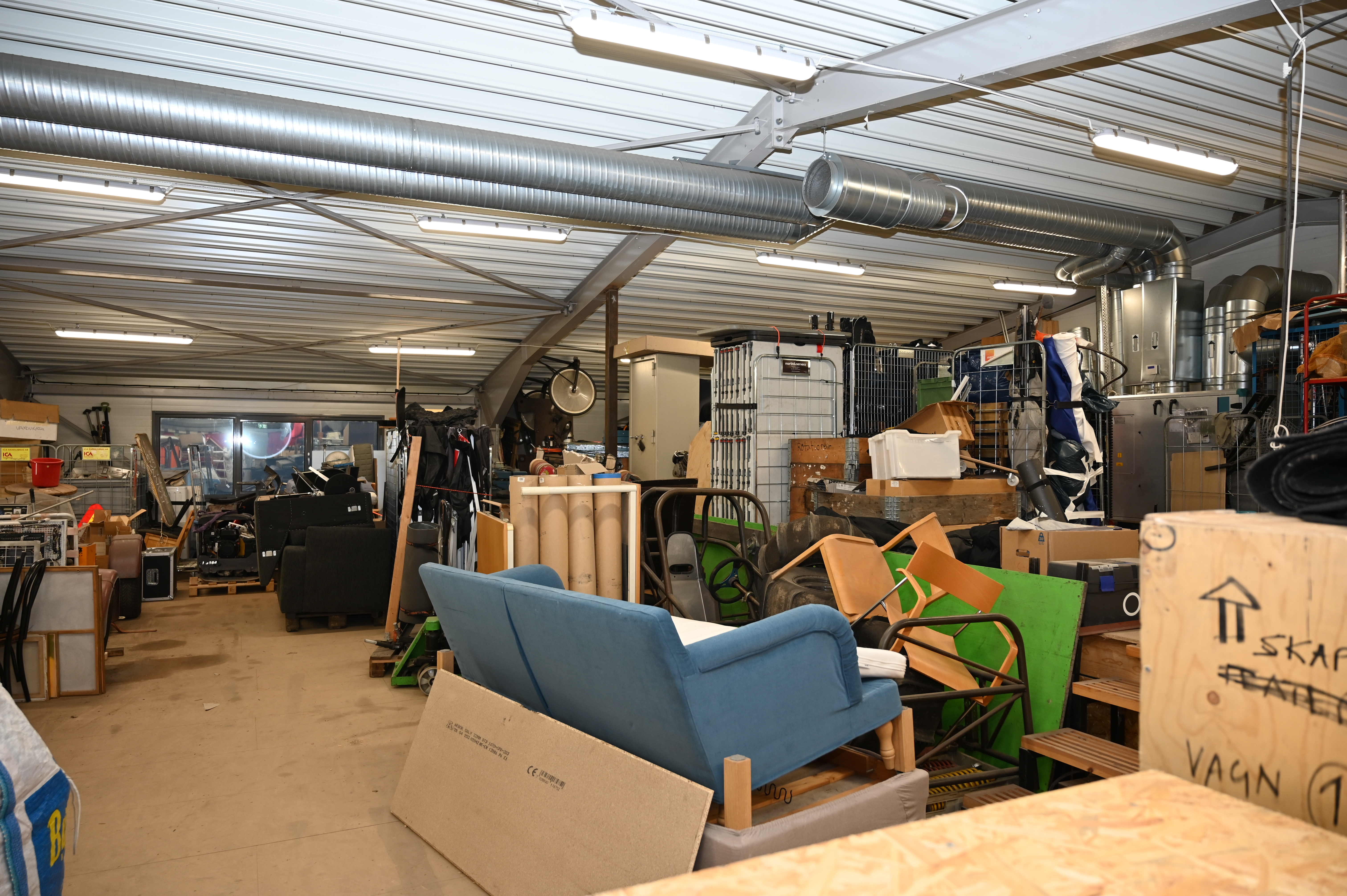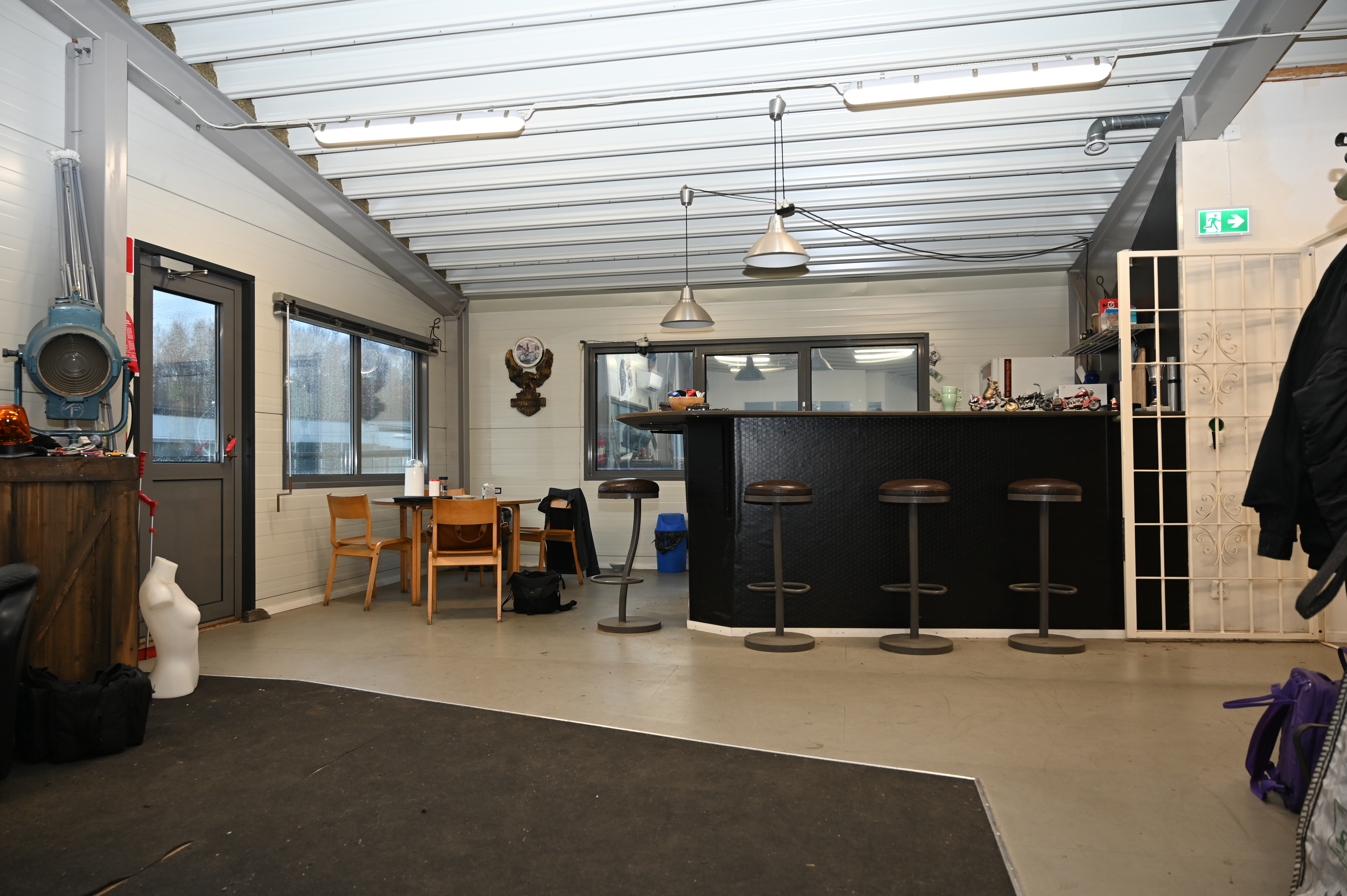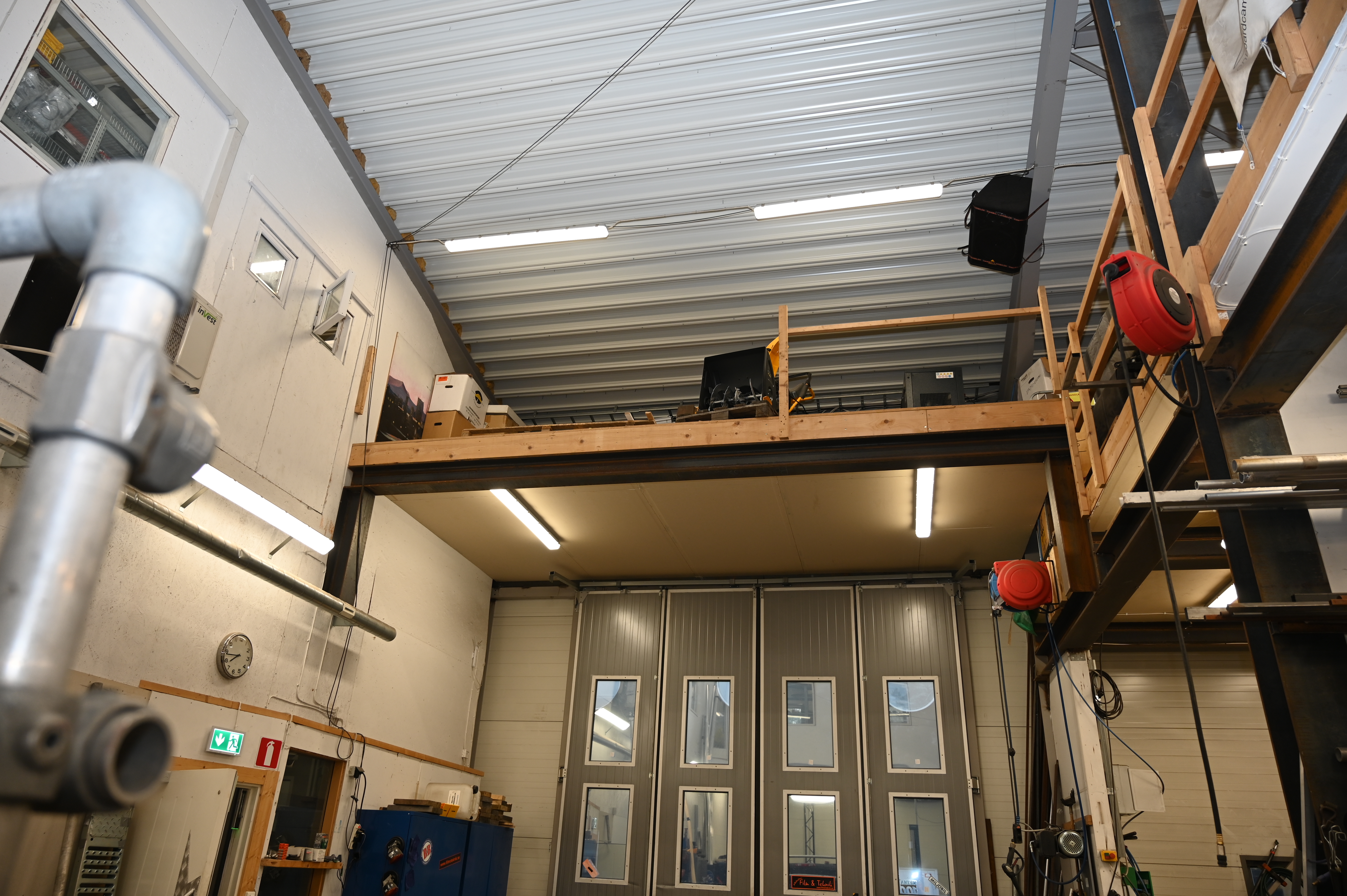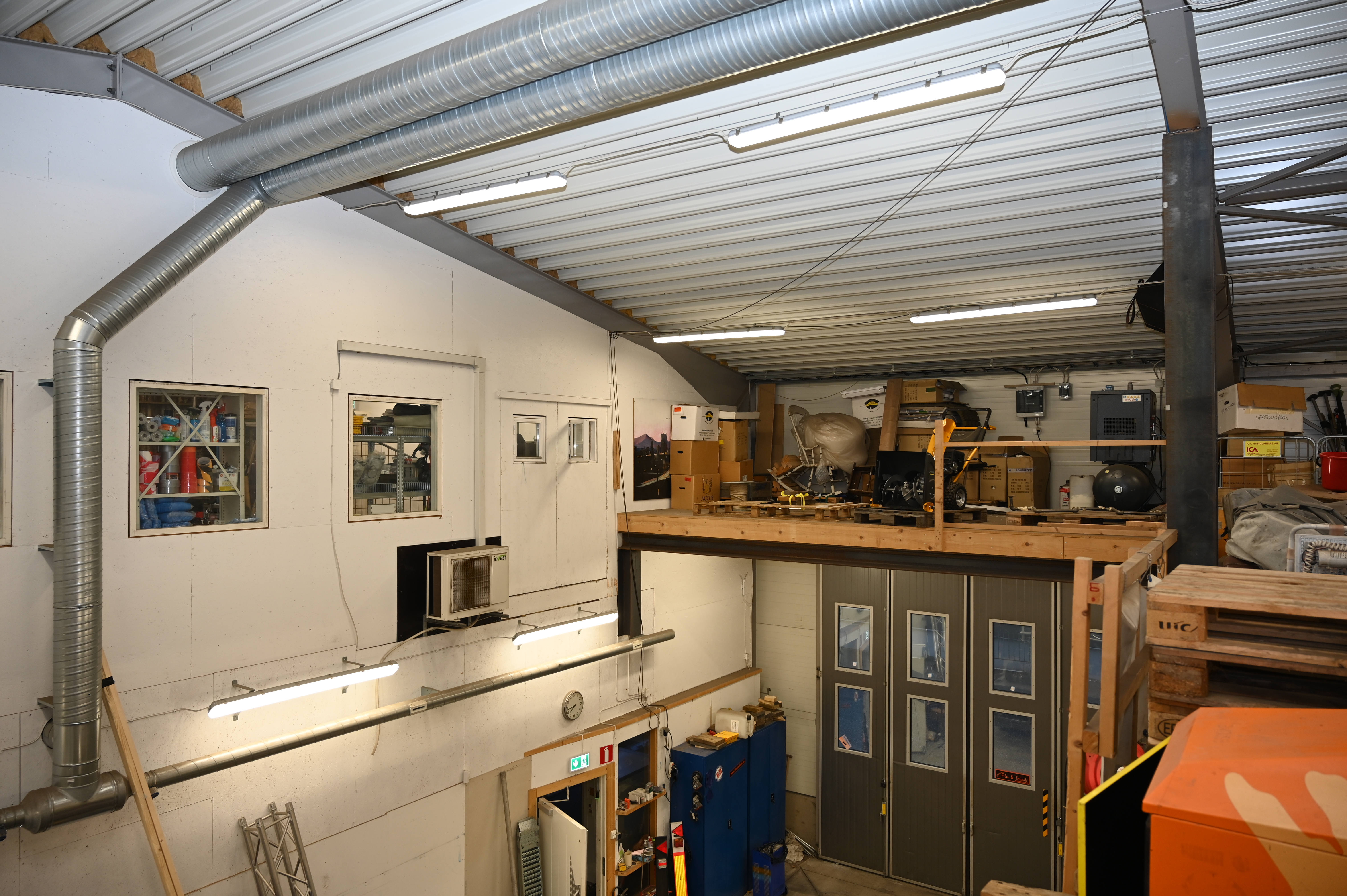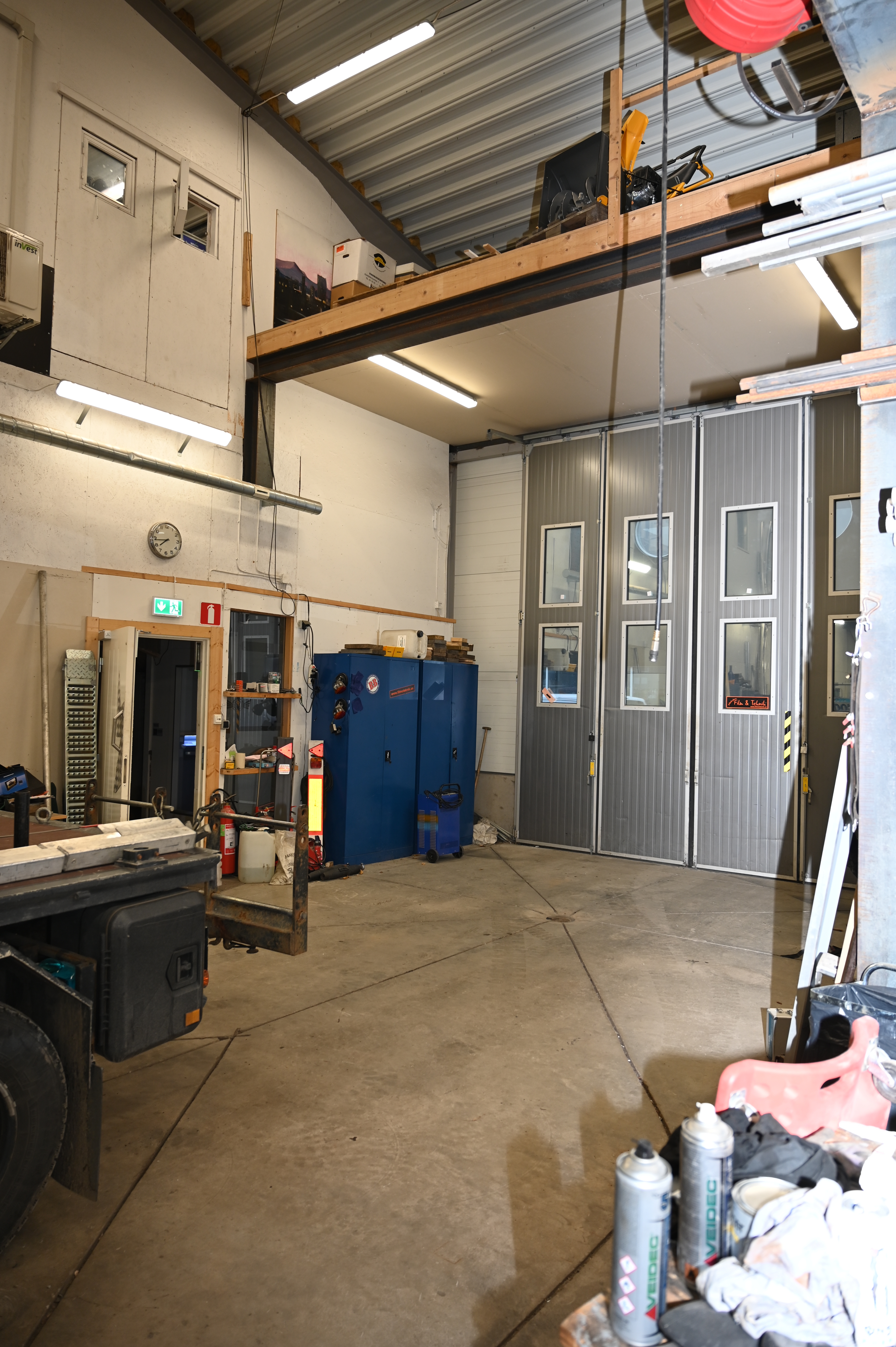 På ena långsidan finns tre stycken 4 x 4,5 höga vikportar och på gaveln mot framsidan finns fyra stycken 3 x 3,5 meter höga vikportar. Takhöjden under entresolen är 4,5 meter och upp till nock ca 7 meter. Lokalerna är allmängiltiga. Underhållsskicket är normalgott för åldern. Lokalerna är inte indelade i brandceller. Pris 18 Mkr.