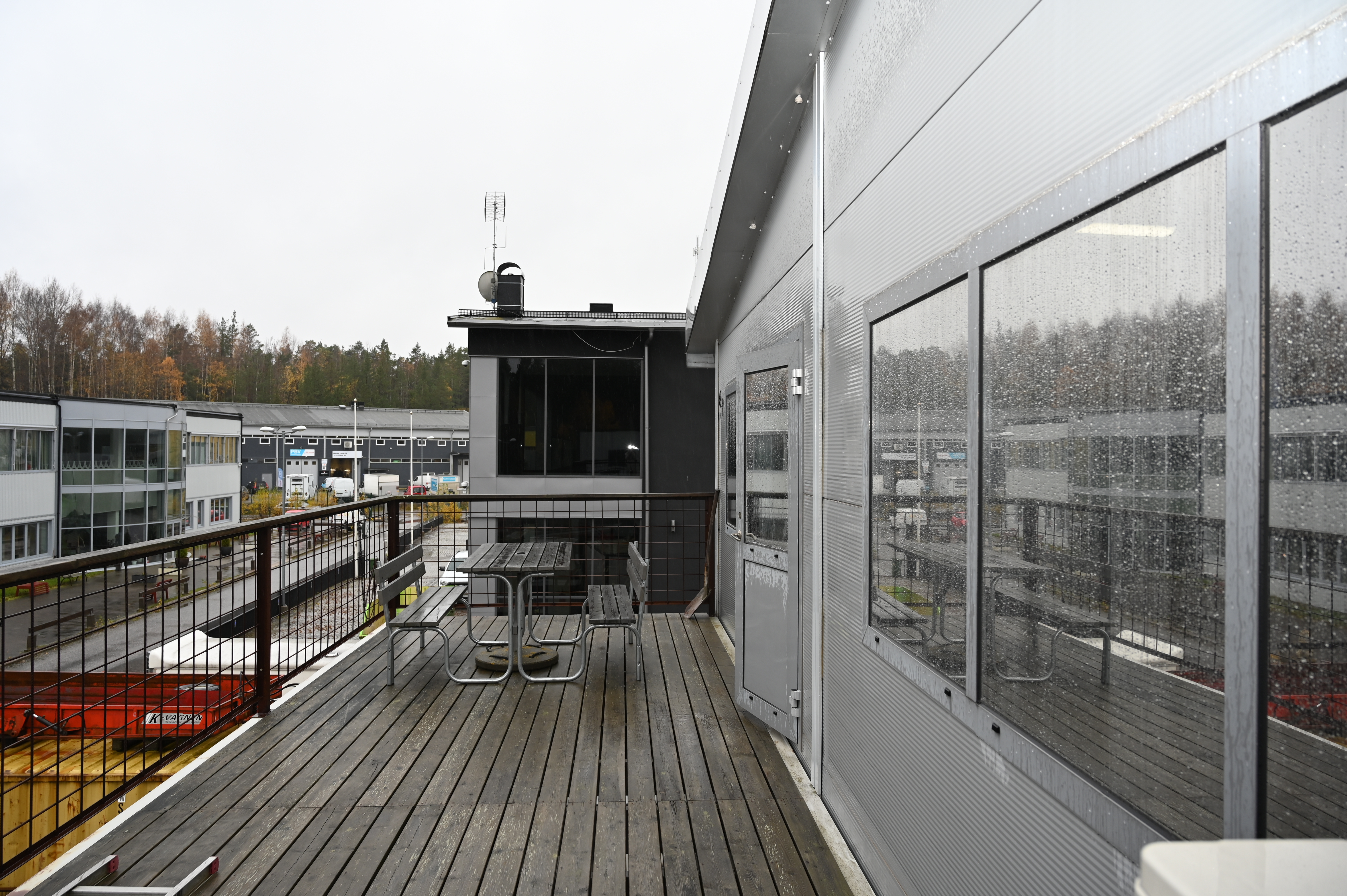 Kontorslokalerna har relativt enkel standard med några kontorsrum och har i övrigt en öppen planlösning med en lunchdel. Golven är belagda med skivor och textilmattor, väggarna är målade och taken utgörs av korrugerad plåt. Underhållsskicket är normalgott.