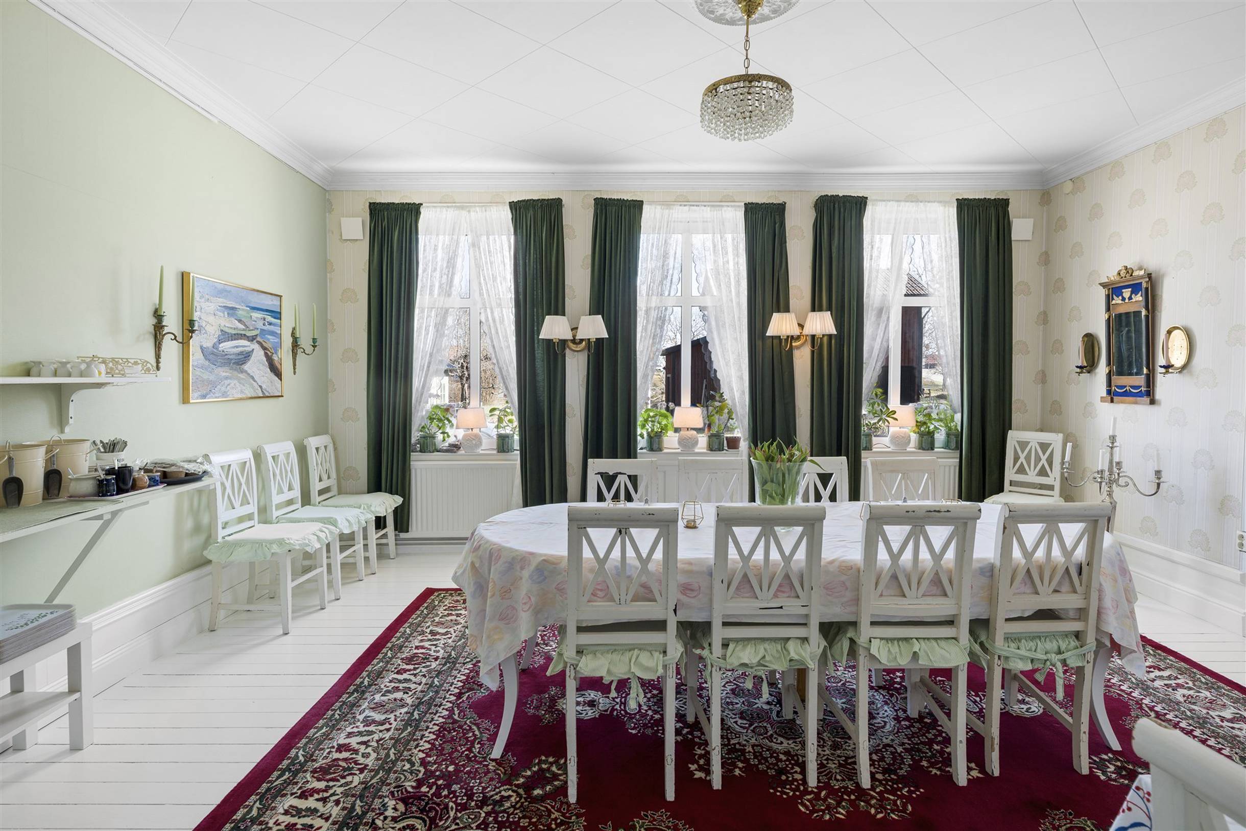 Byggnaden är i gott skick och har med varsam hand fått en invändig renovering där man i största mån bevarat detaljer och dess ursprungliga charm. Byggnaden innehåller 8 st rum som inretts med inspiration från svenska floran, ett fullt utrustat kök med anslutande matsal med täljstenskamin och en vacker salong. Totalt inrymmer huvudbyggnaden minst 16 bäddar och de två lusthusen ytterligare totalt 4 bäddar.