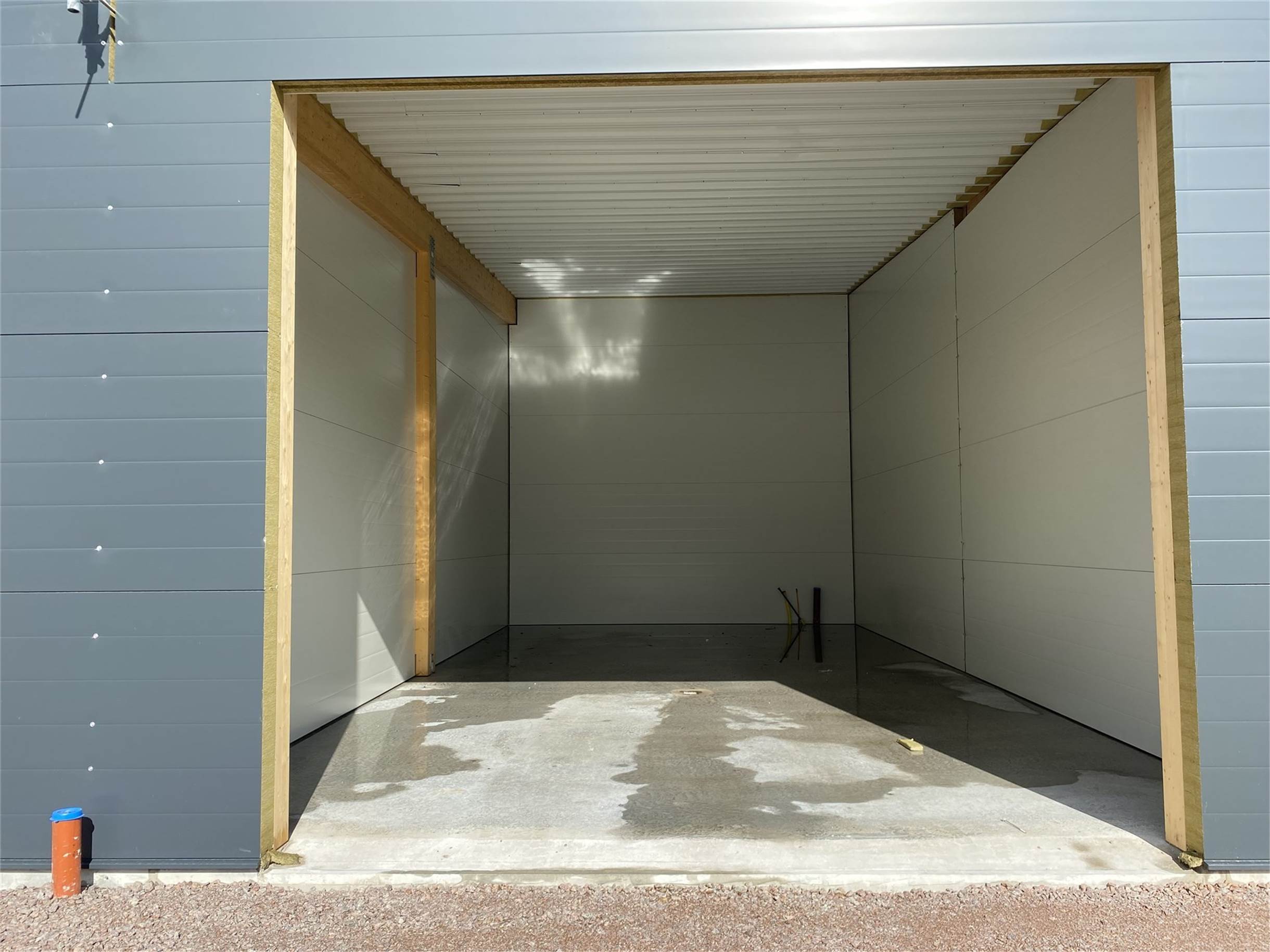 Genomgående är det en öppen yta med en generös takhöjd om ca 5,65 meter vid nock. Lokalen är inredd med en vikport om 4,2 x 4 meter med fönster för bra ljusinsläpp.