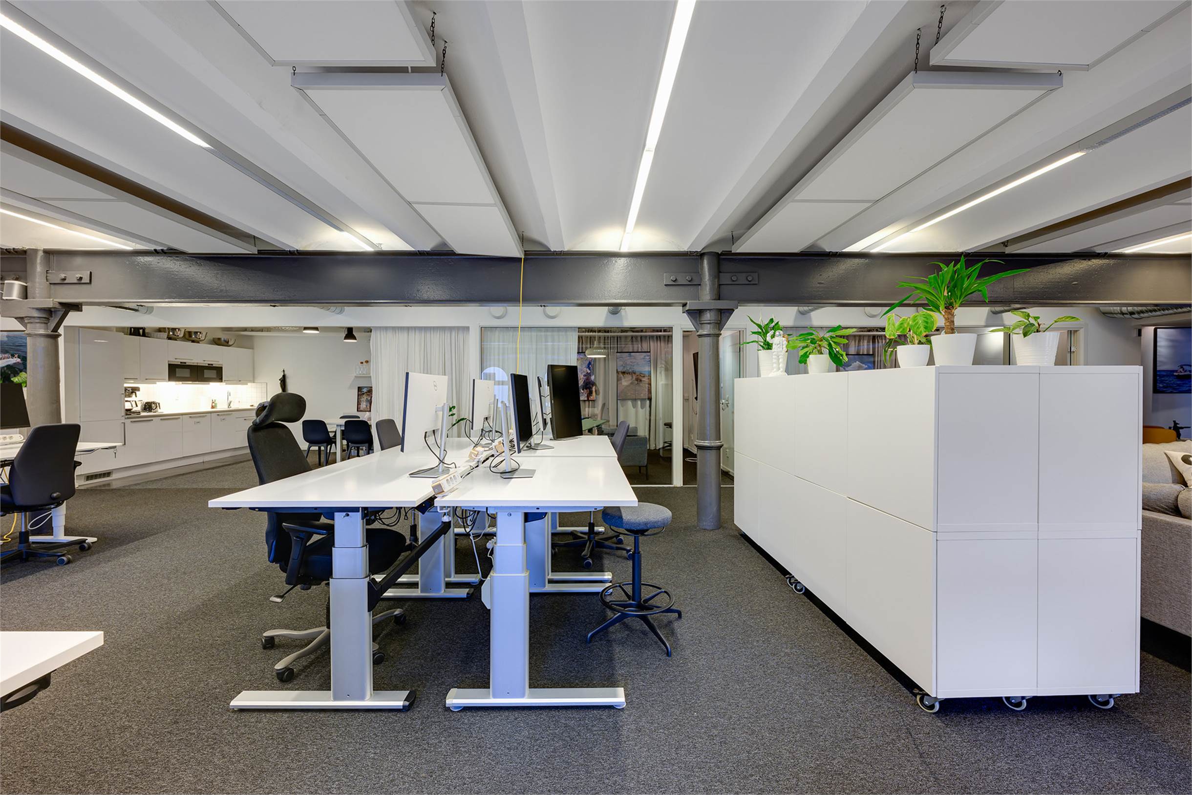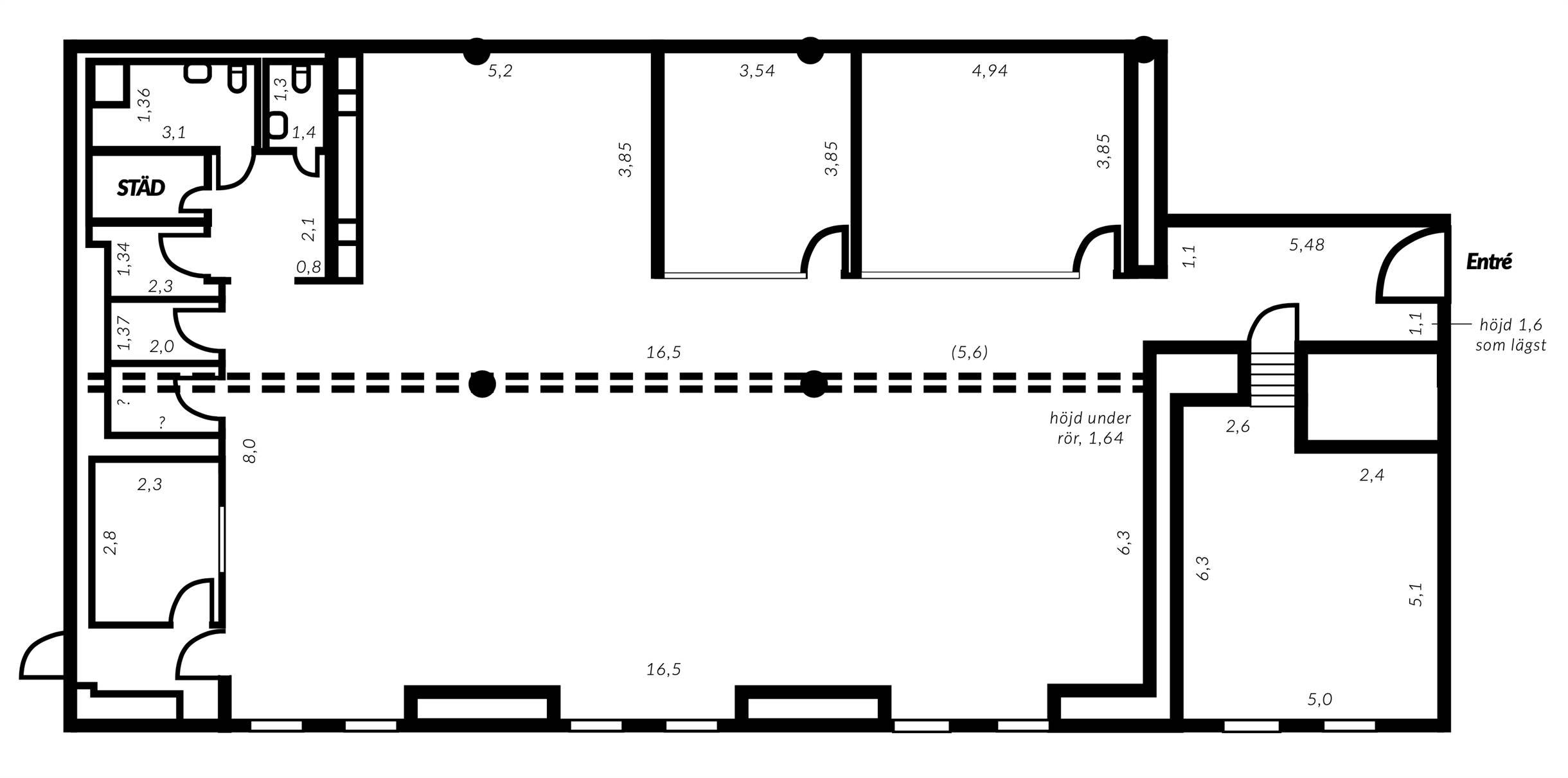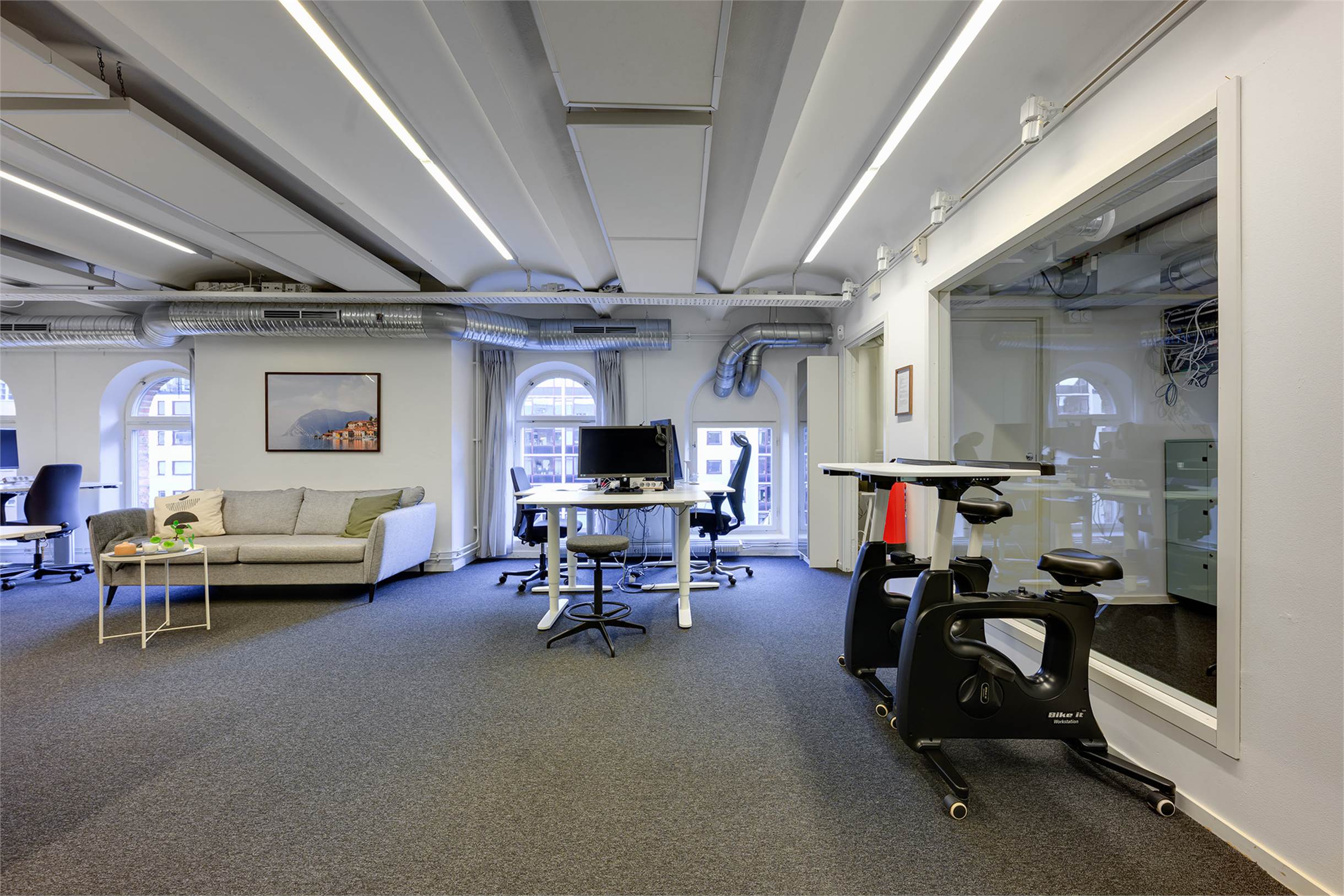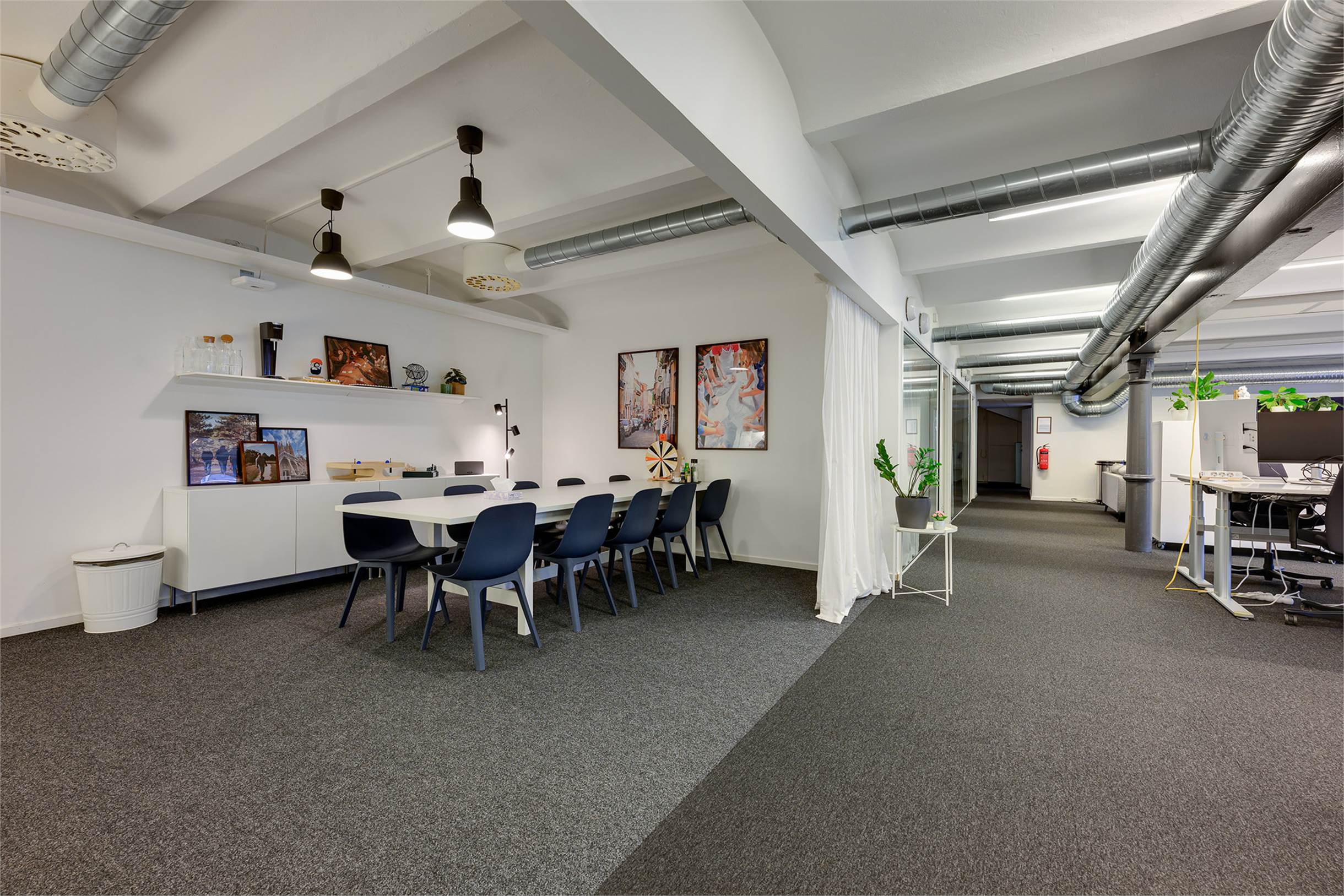 Lokalen erbjuder generösa ytor med högt i tak, synliga stålbalkar och vackra välvda fönster som skapar ett härligt ljusinsläpp. Planlösningen består av öppna kontorsytor, flera mötesrum, social lounge, pentry med matplats samt duschmöjlighet – perfekt för den som cyklar till jobbet eller vill ha det lilla extra.