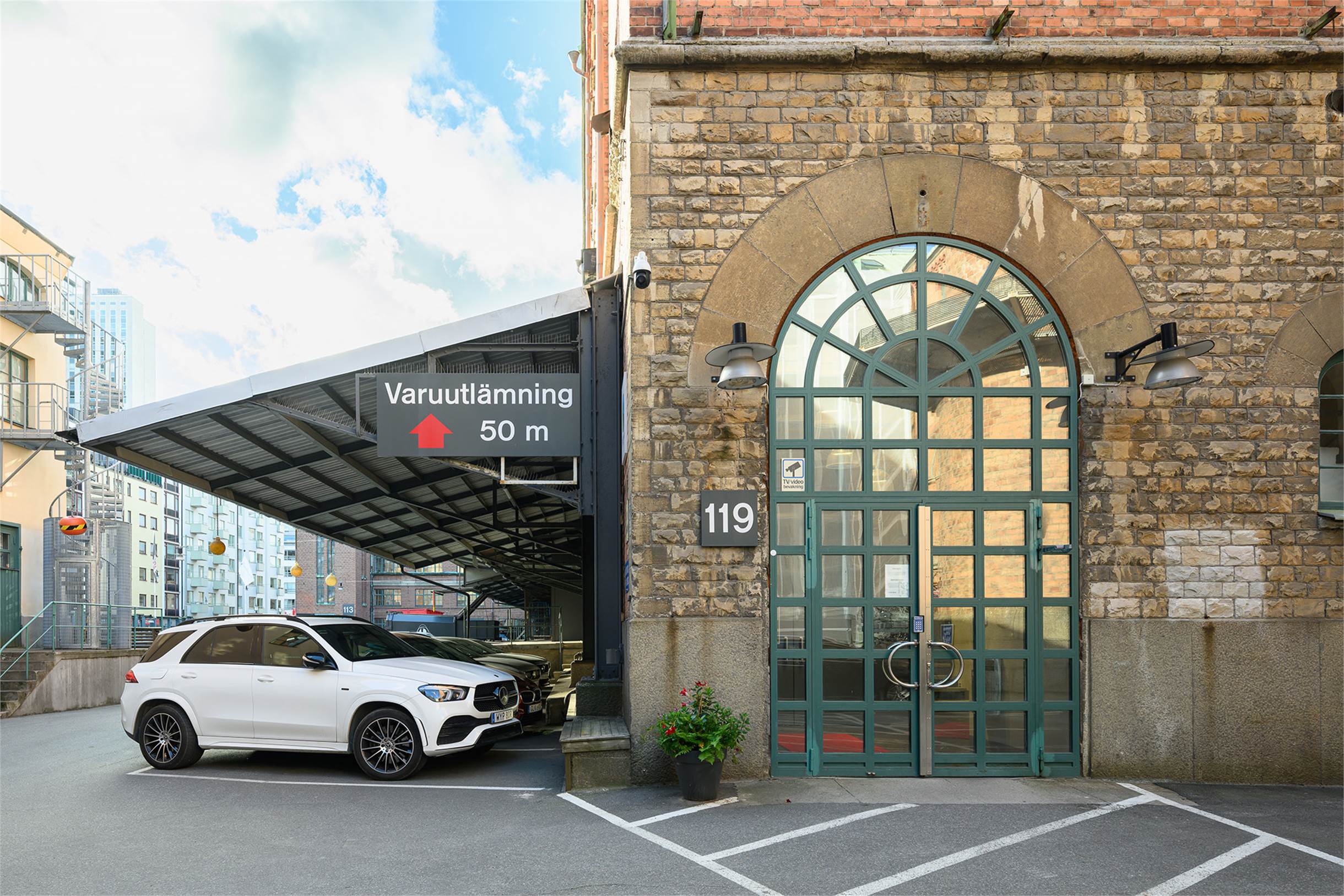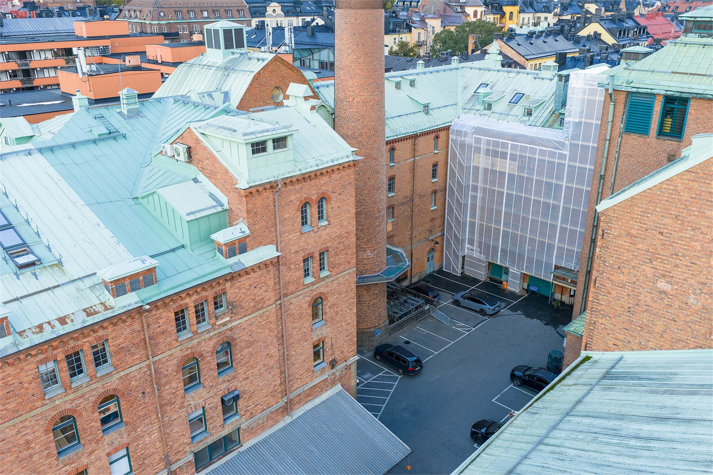 Lokalen ligger i en välkänd fastighet i det anrika Münchenbryggeriet-området på Södermalm. Den stora tegelfasaden och den karaktäristiska skorstenen gör byggnaden lätt att känna igen – ett tydligt och attraktivt skyltläge.
