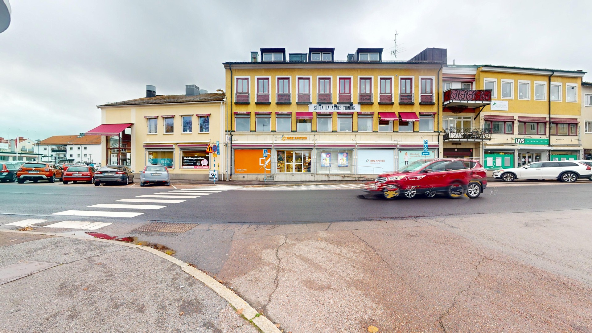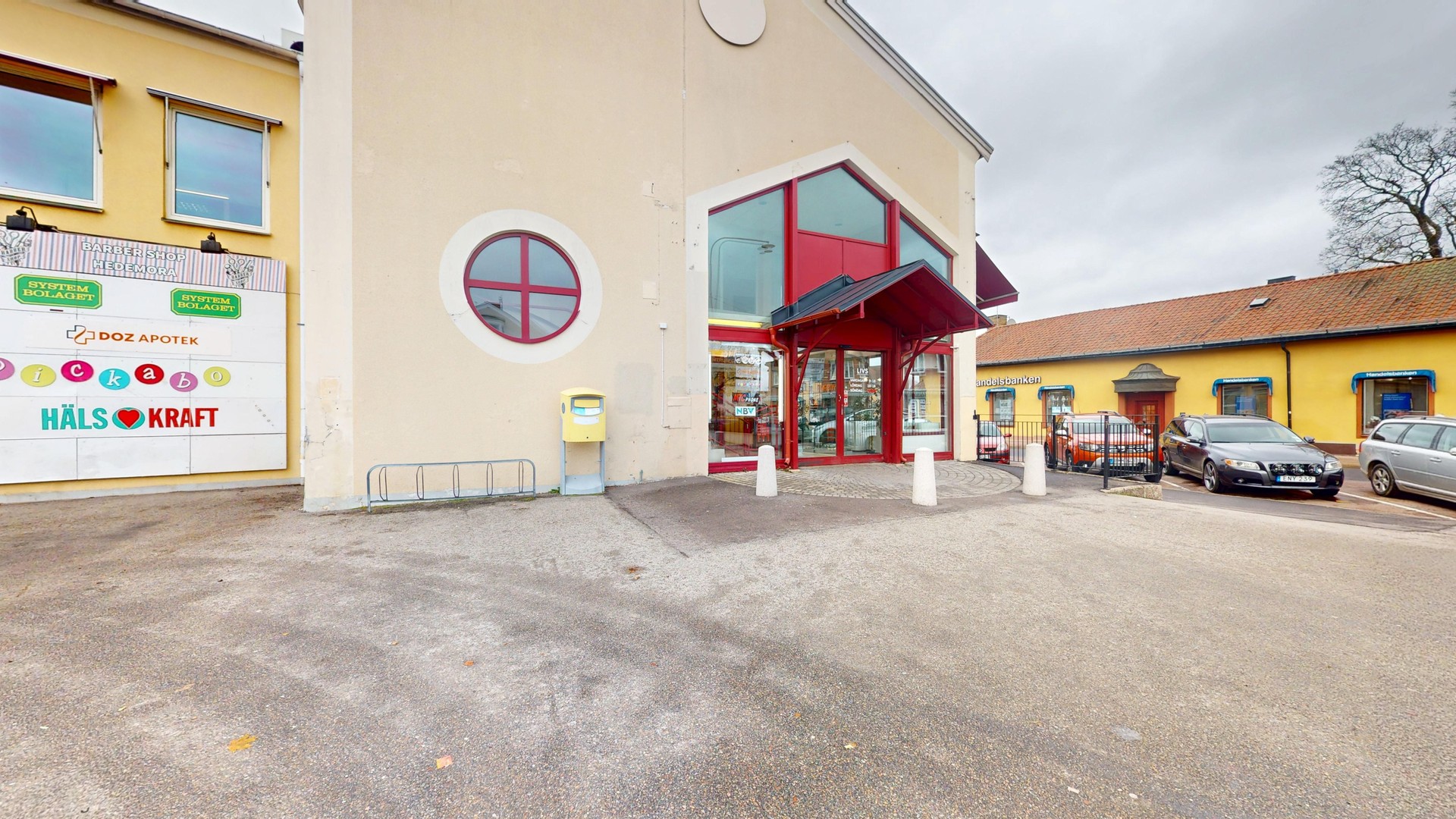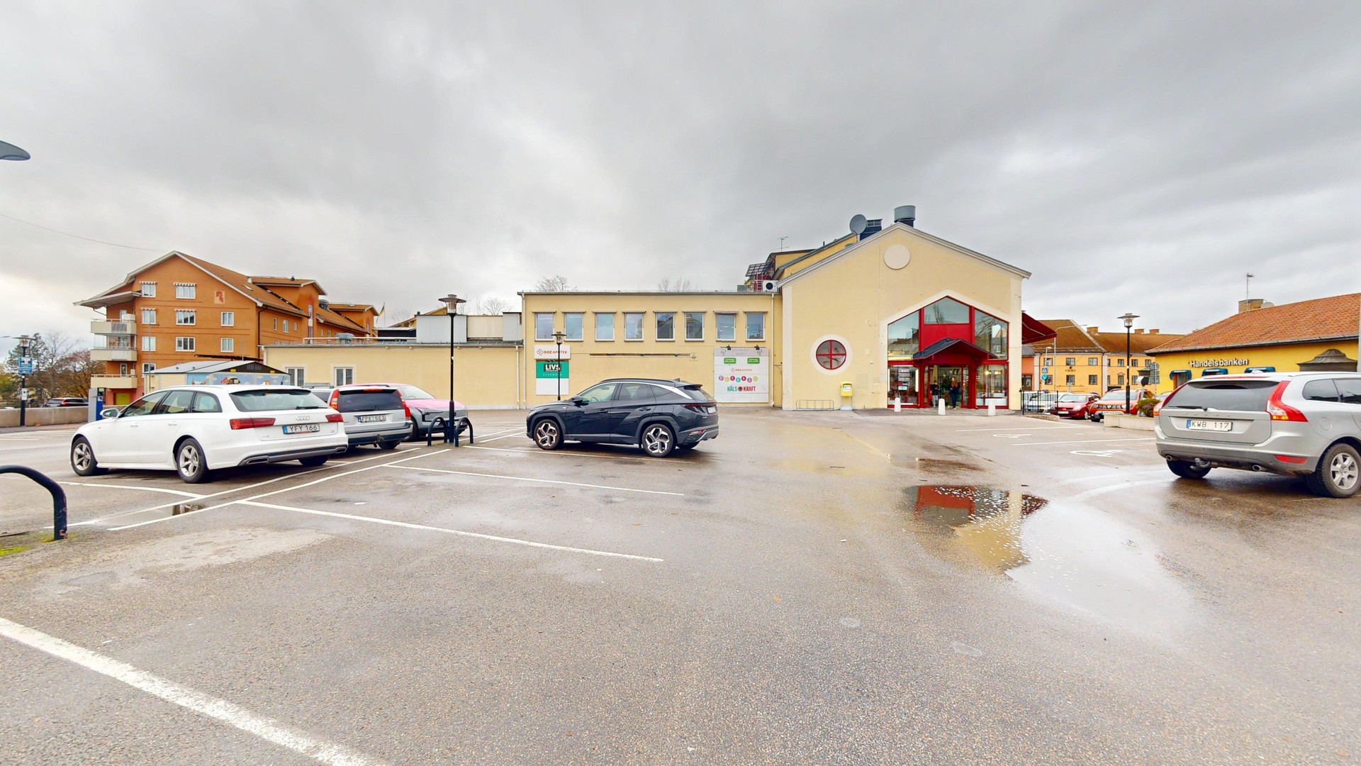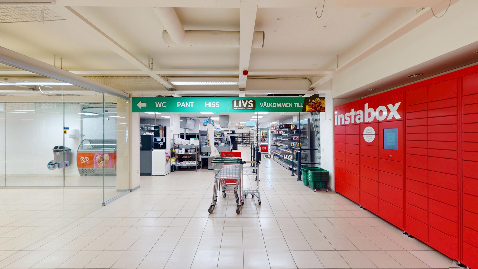 I gallerian och på gatan utanför finns all tänkbar service så som apotek, restauranger, cafeér, butiker samt en stor parkering med tillhörande laddplatser.