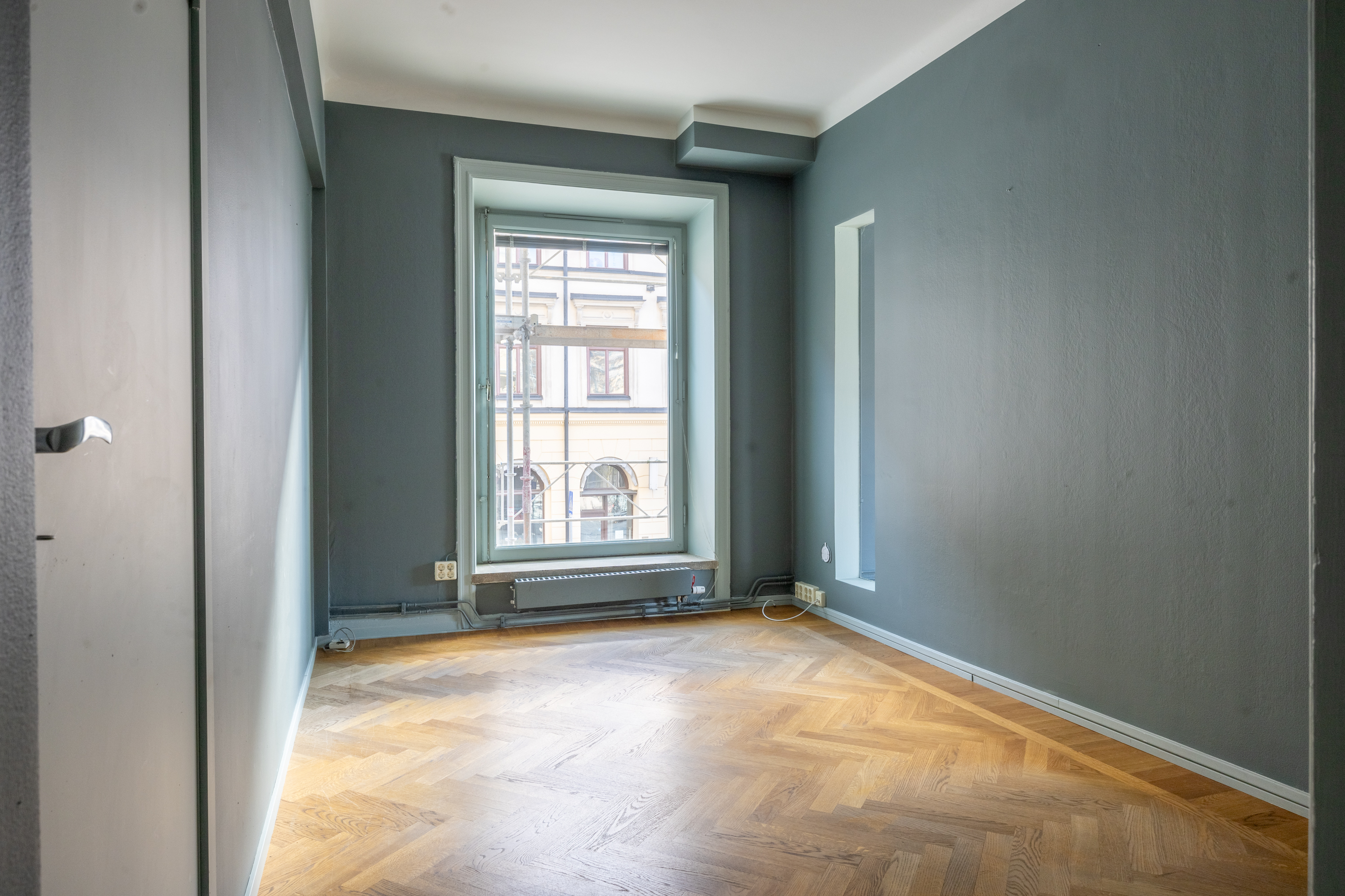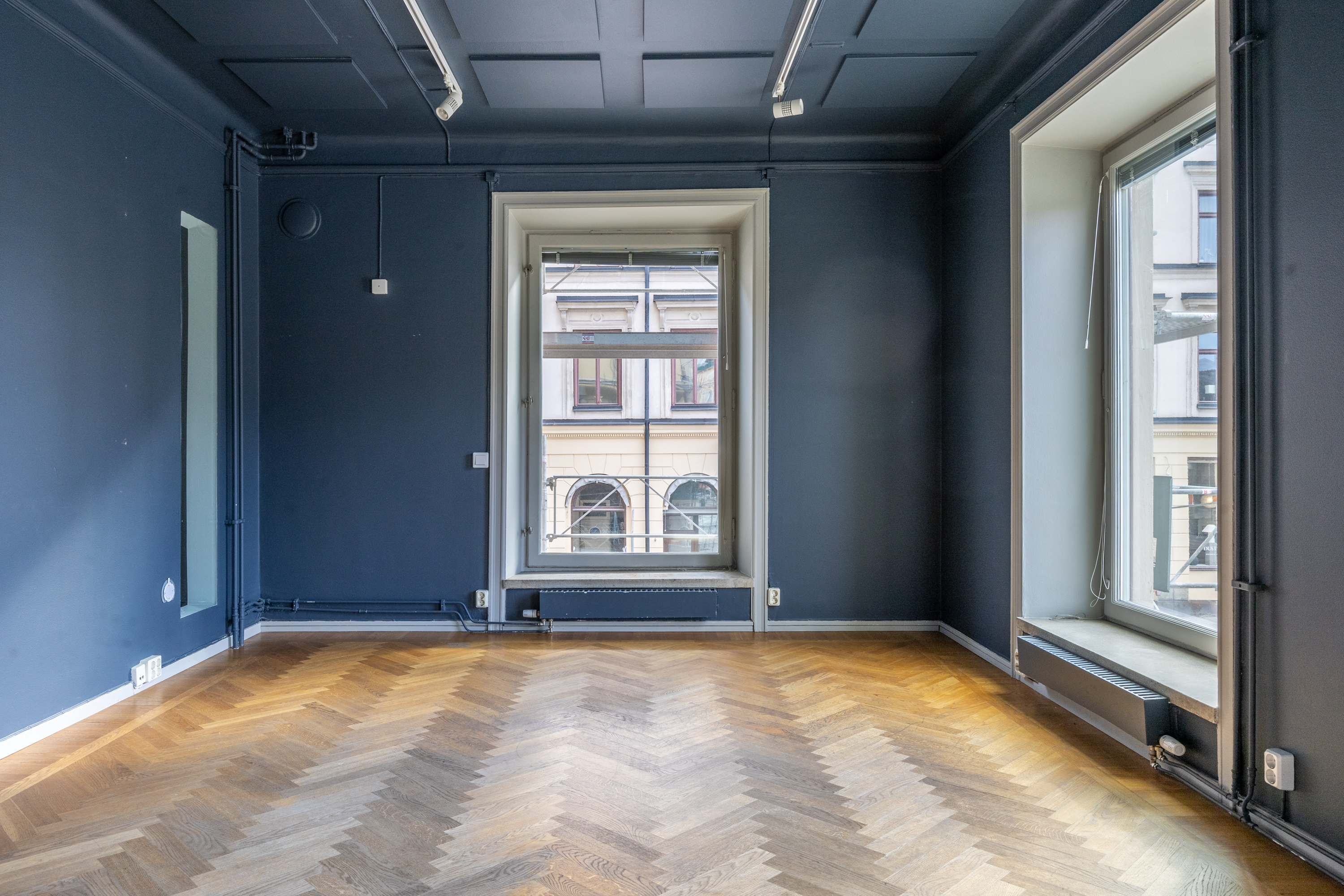 Välkommen till en ljus och inspirerande lokal om 68 kvm vid Östermalmstorg. Här erbjuds en stilfull och flexibel yta som passar utmärkt för kontor, studio, showroom eller kreativ verksamhet. Lokalen präglas av generöst ljusinsläpp från stora fönster som vetter mot torget och den vackra stadsmiljön. De höga fönsterpartierna tillsammans med det eleganta parkettgolvet skapar en varm och representativ atmosfär. Den smakfulla färgsättningen och det dekorativa taket ger rummet karaktär och gör lokalen både inspirerande och trivsam att vistas i. Planlösningen är öppen och lätt att anpassa efter behov, vilket ger goda möjligheter att skapa en arbetsmiljö som passar just din verksamhet. I lokalen finns även ett praktiskt kökspentry utrustat med diskmaskin, vilket skapar goda förutsättningar för en smidig arbetsdag och bekväma pauser.