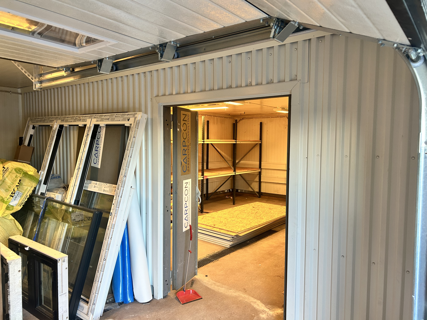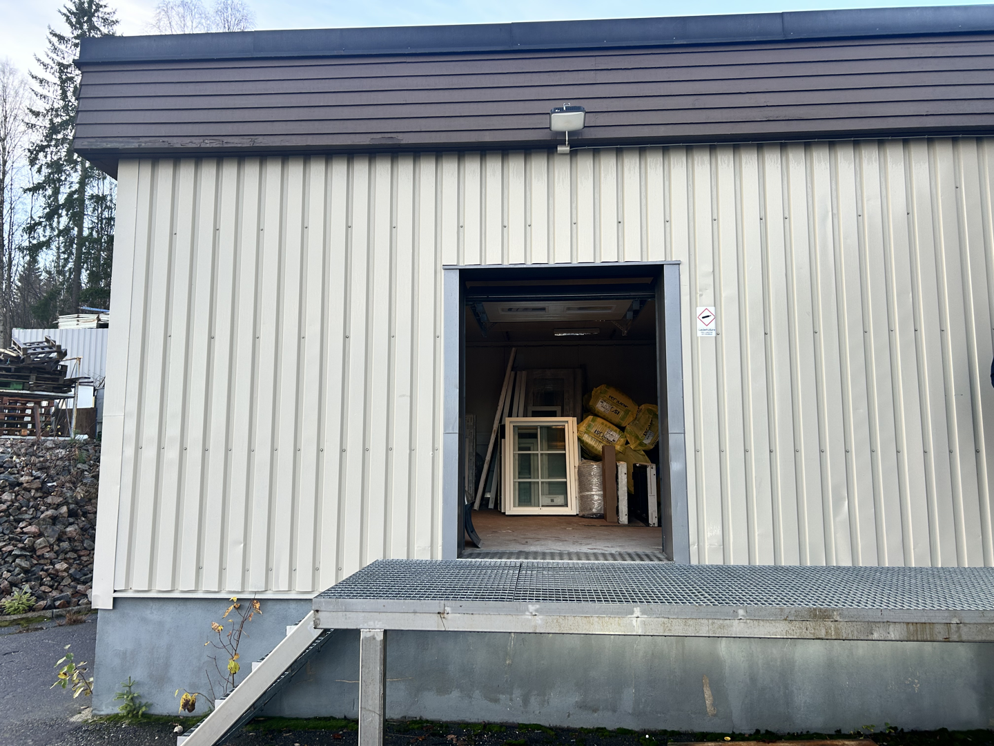 Lager uppdelat i två rum med mindre port och enklare lastkaj