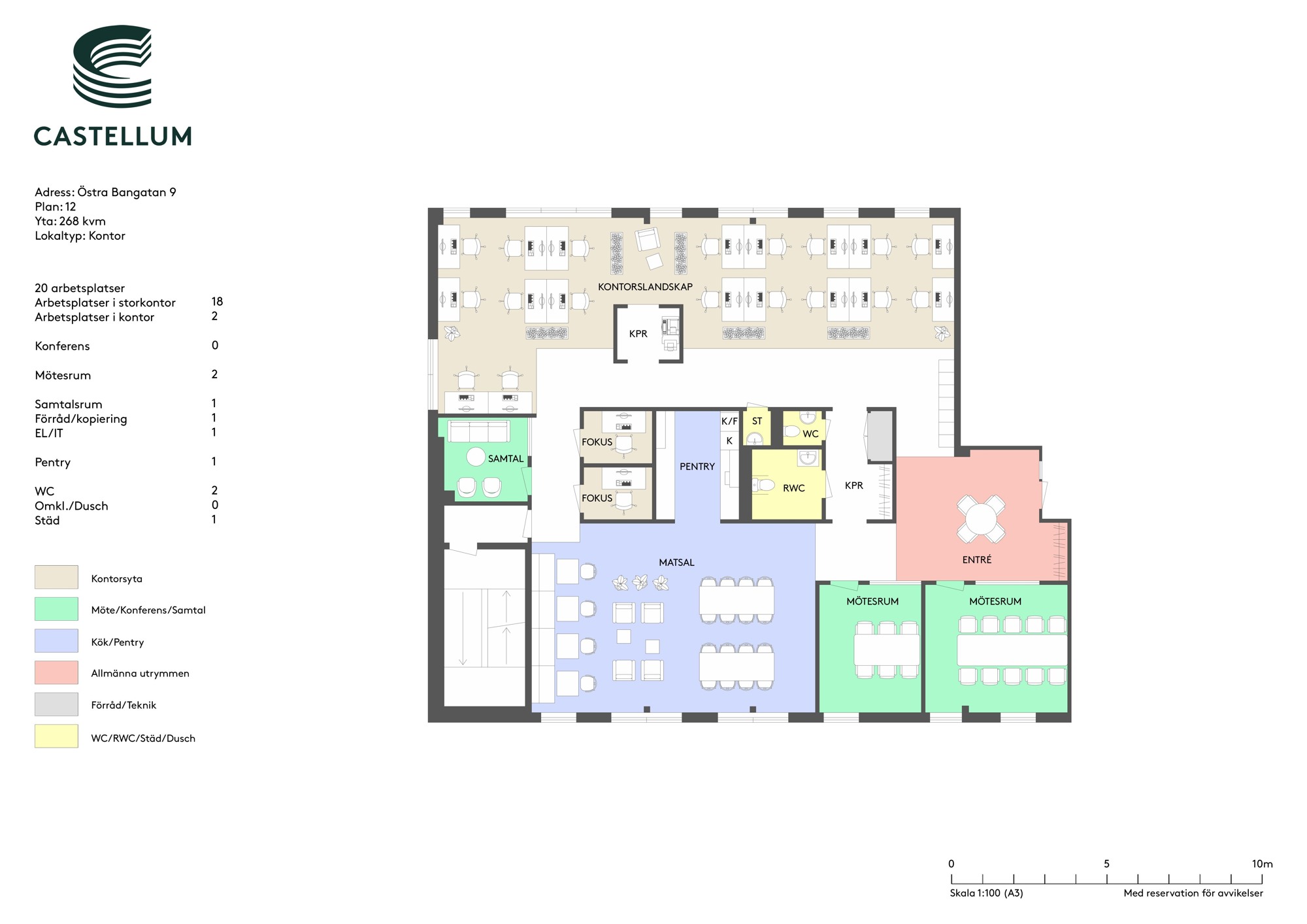 Planlösning enligt hyresgästens önskemål. Lokalen har utformats för att på bästa sätt svara mot hyresgästernas behov och önskemål.