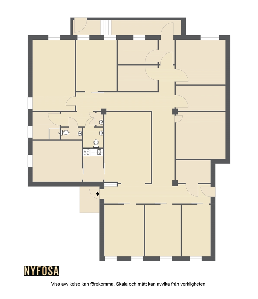 Lokalen erbjuder idag 6 kontorsrum, konferensrum, omklädningsrum, toaletter och litet pentry. Lokalen är placerad i fastighet med andra kontors verksamheter.