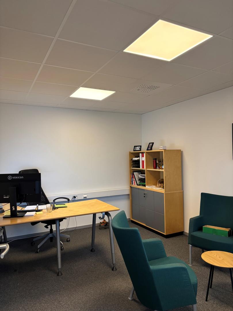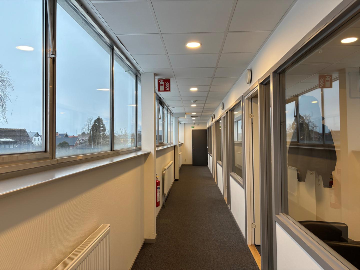 En trappa upp finns en kontorsdel med bra ljusinsläpp och totalt sju kontorsrum i varierande storlekar. Toalett finns även här att tillgå.