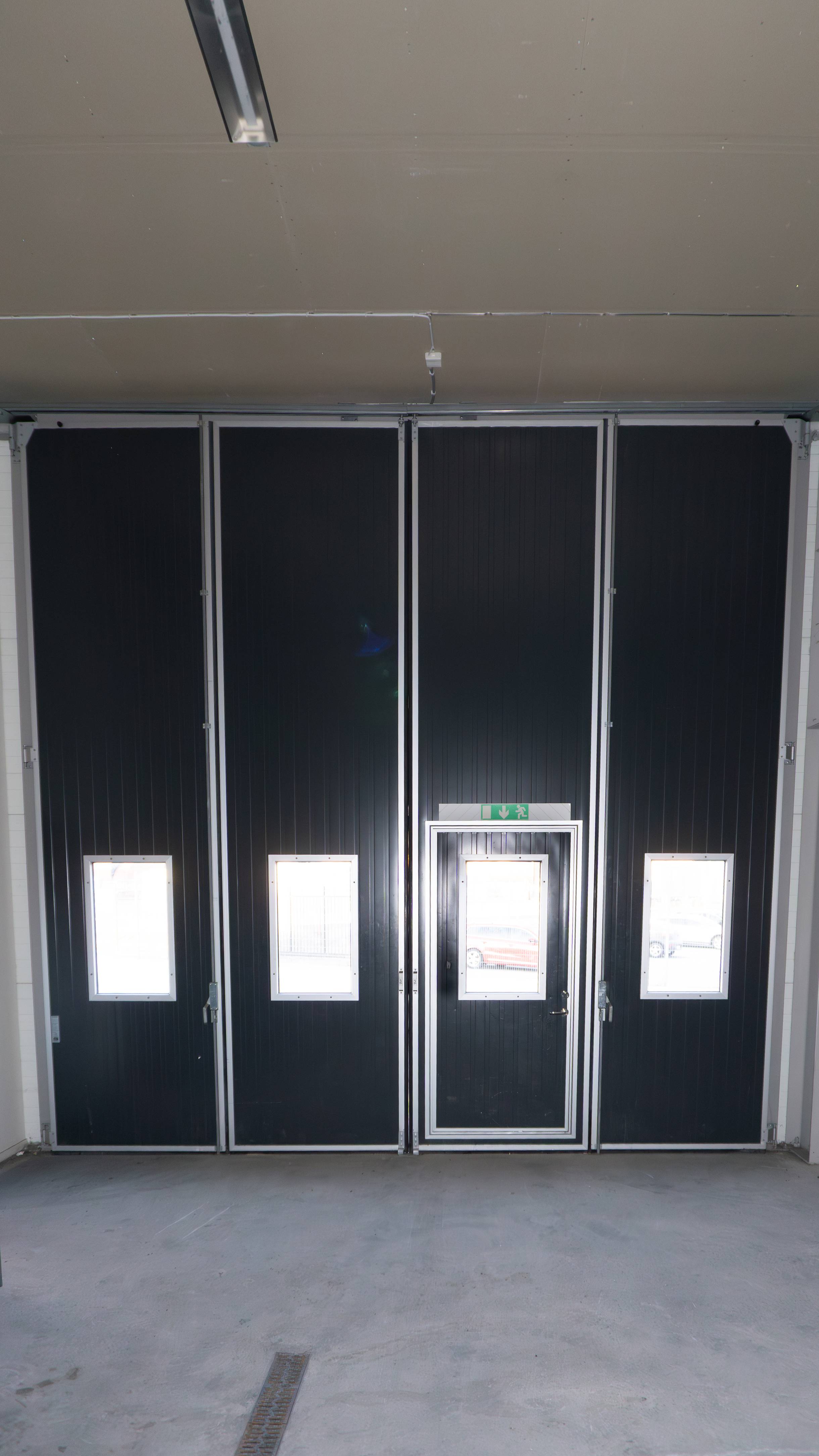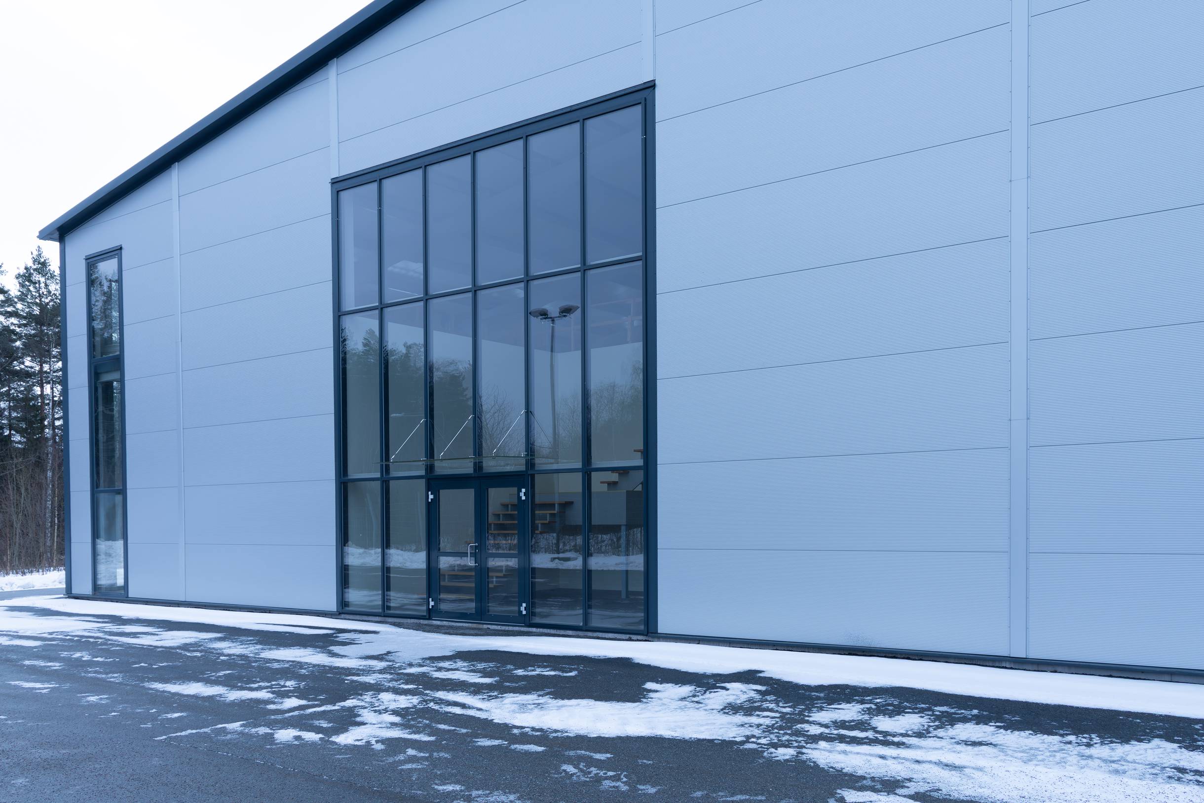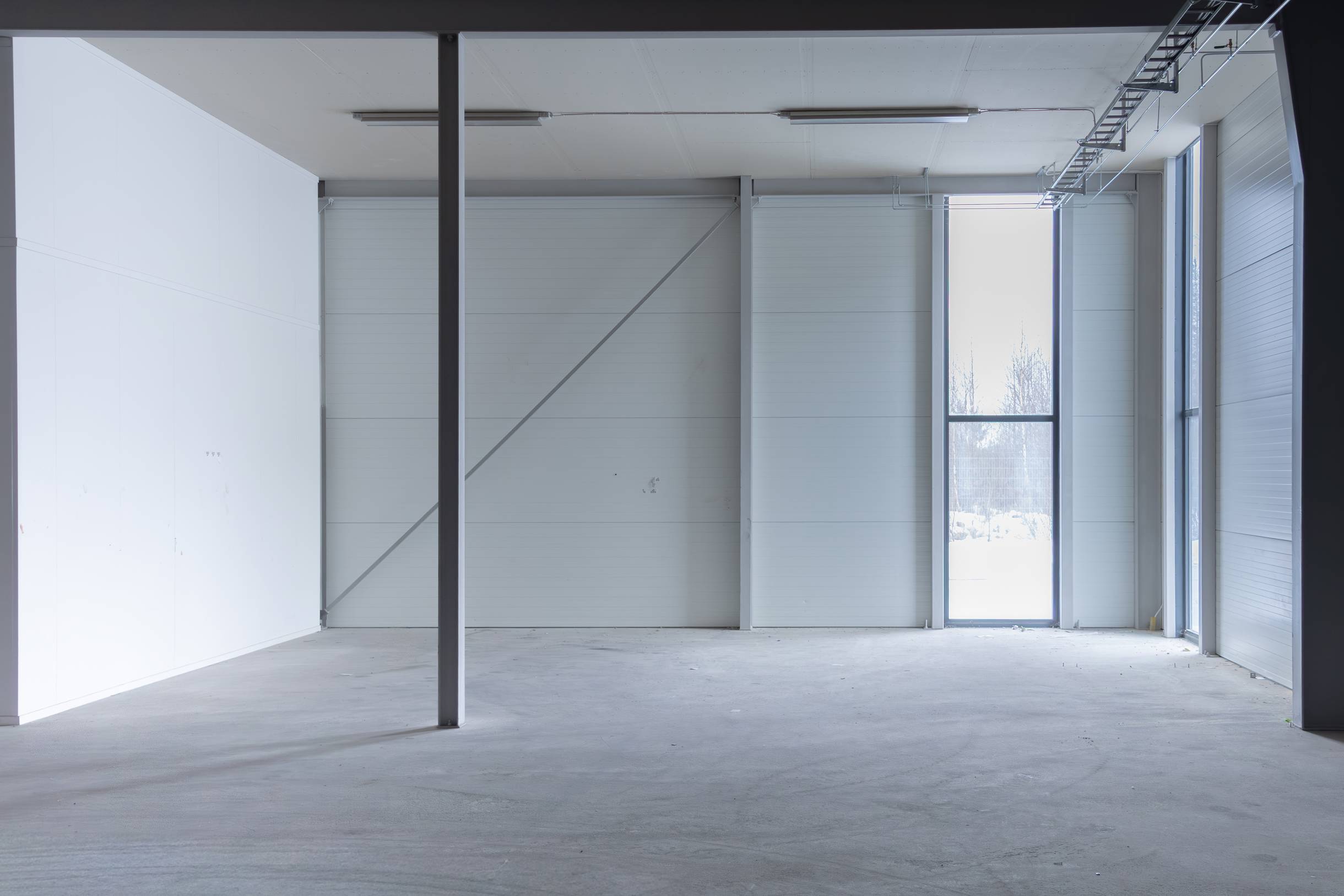 Cirka 5 meter i takhöjd och öppen planyta med stålbjälkar.