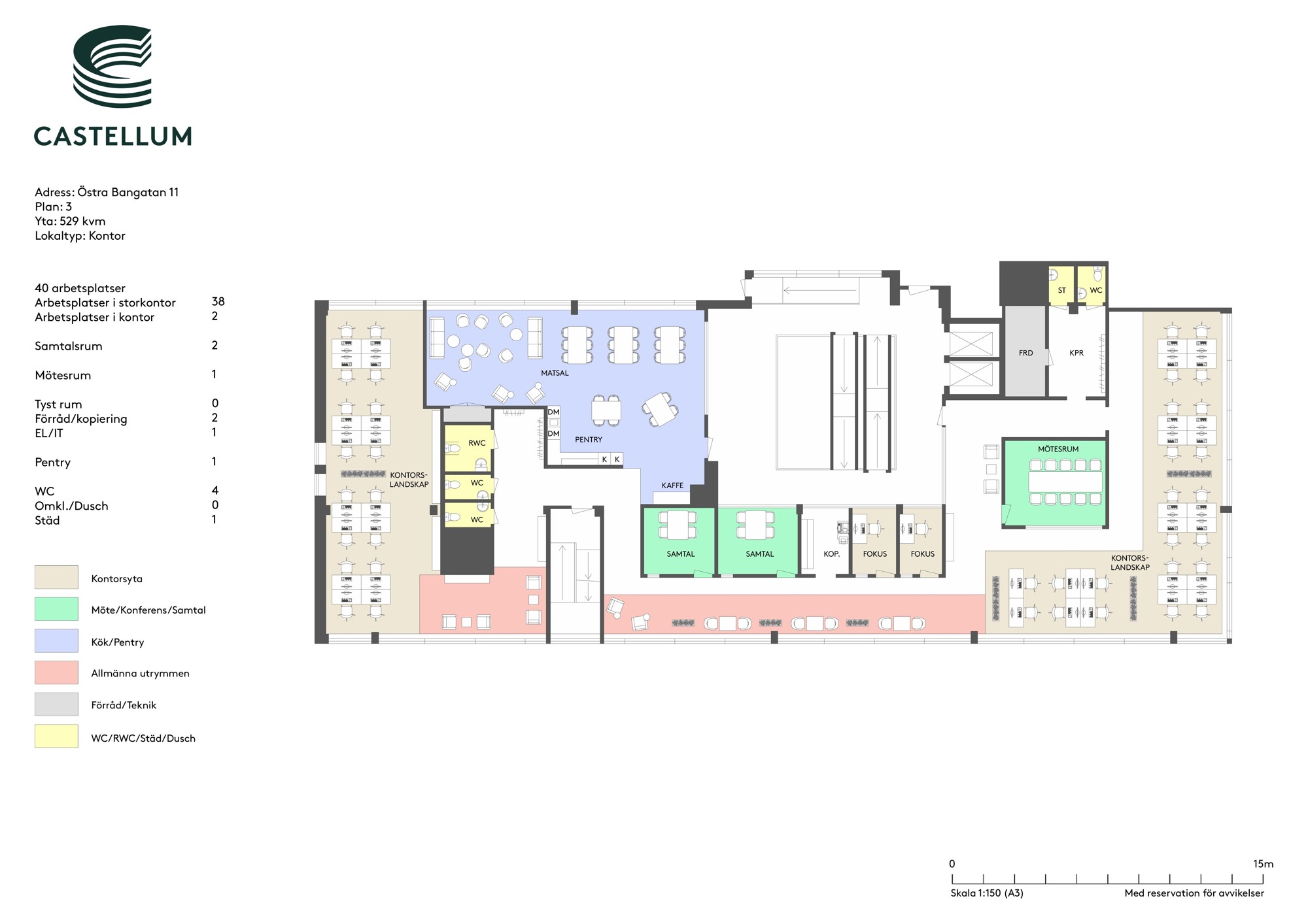 Planlösning enligt hyresgästens önskemål. Lokalen har utformats för att på bästa sätt svara mot hyresgästernas behov och önskemål.