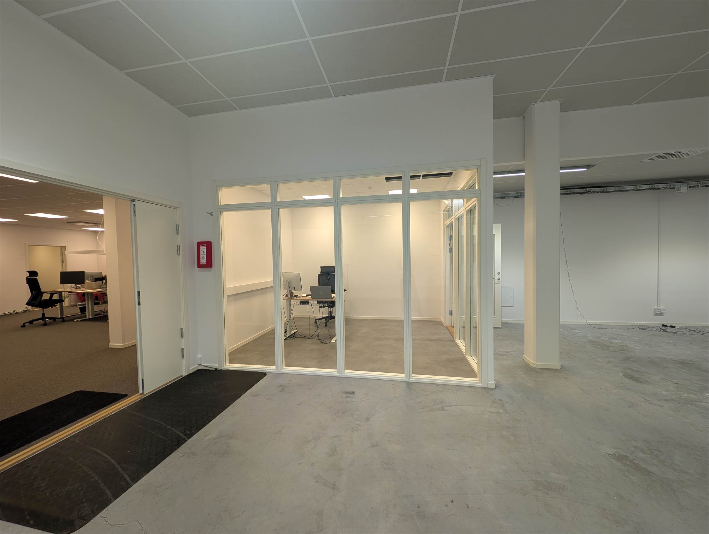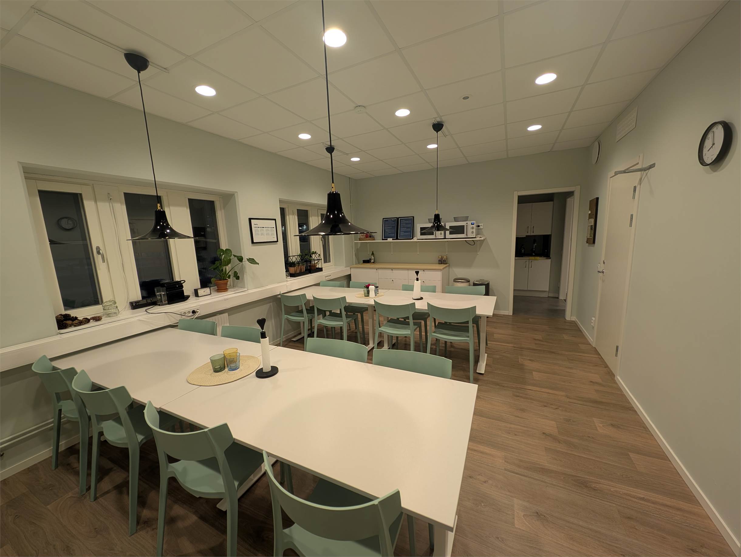 Lokalen omfattar 346 kvm i markplan och är perfekt för företaget som vill ha sitt eget utrymme men ändå nära till gemenskap. Planlösningen är anpassad för varierat arbete i kontorsrum, öppet landskap och fokusbås. Det finns gott om parkeringsplatser i området och möjlighet finns att hyra egna platser direkt utanför lokalen.