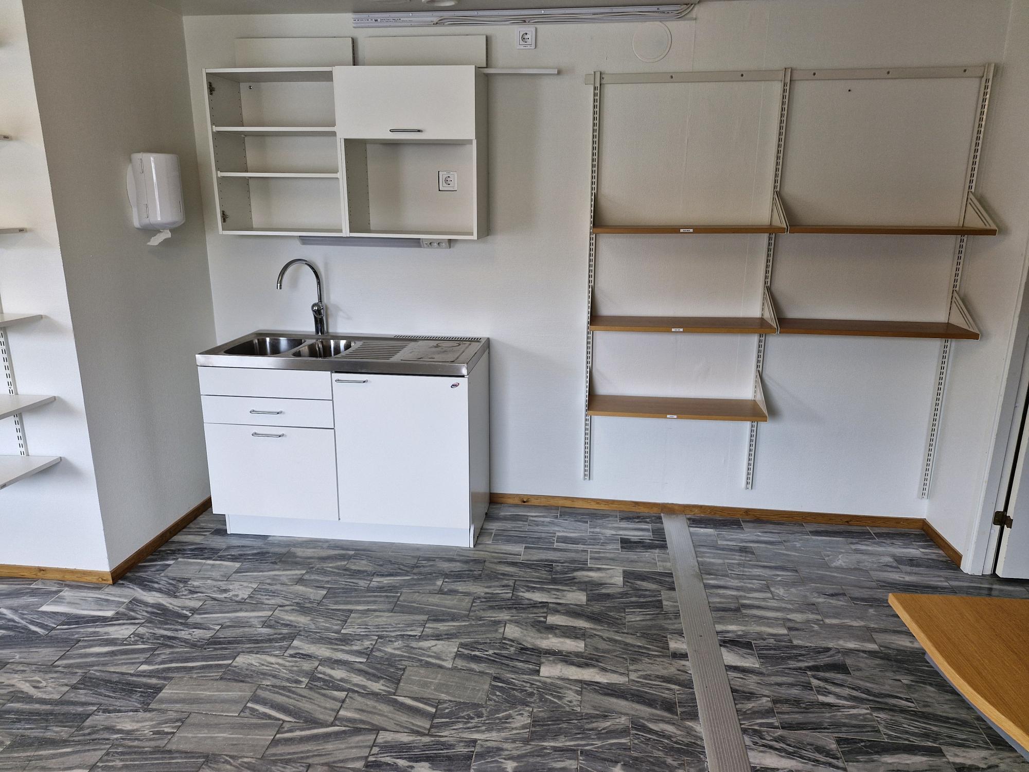 Det finns trinettkök, 2 st wc, kontorsyta och butik/lager/verkstadsdel.