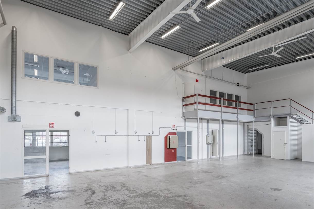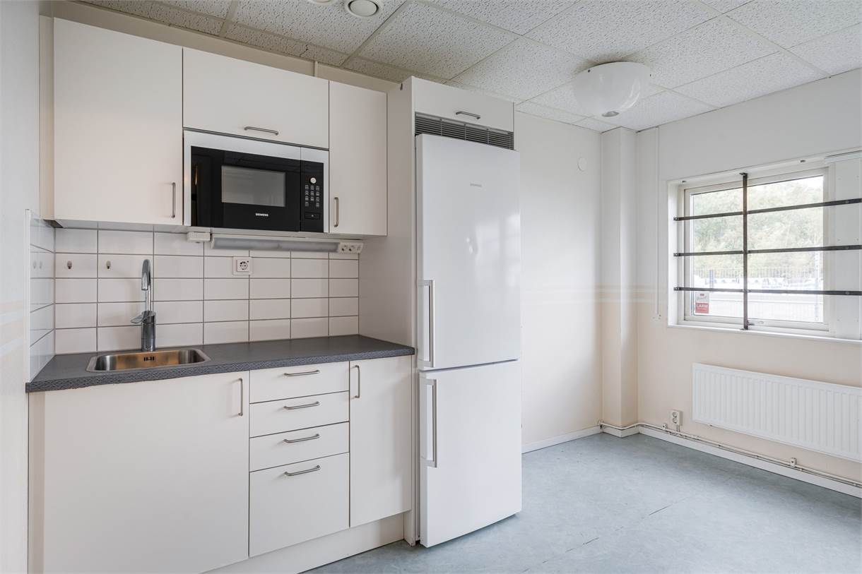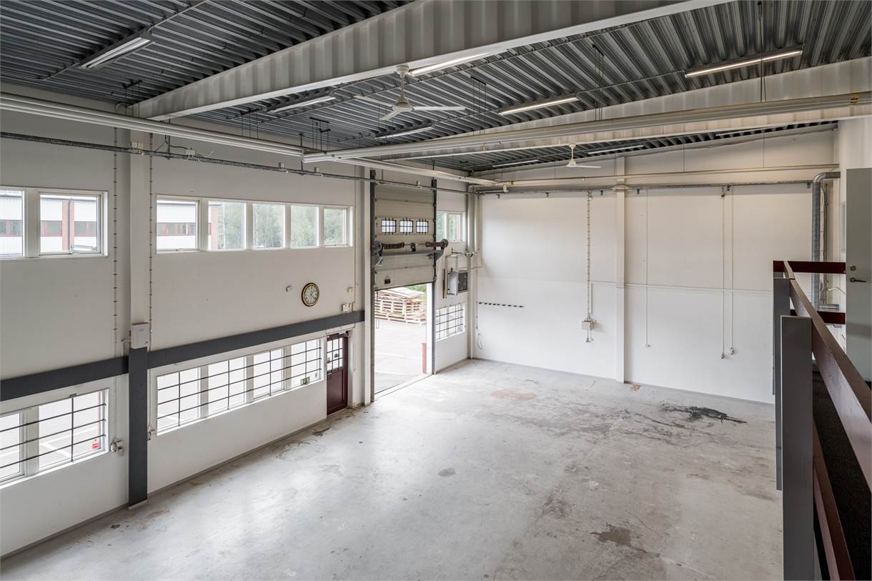 Två portar gör in- och utlastning smidig, och utanför byggnaden finns en generös uppställningsyta som underlättar logistik och transporter. Invändigt finns tre separata pentryn, flera rum för kontor eller pausytor samt en bastu som ger en extra trivselfaktor för personalen. Den öppna lagerytan har bra takhöjd och lämpar sig för olika typer av verksamheter inom lager, produktion eller lätt industri.