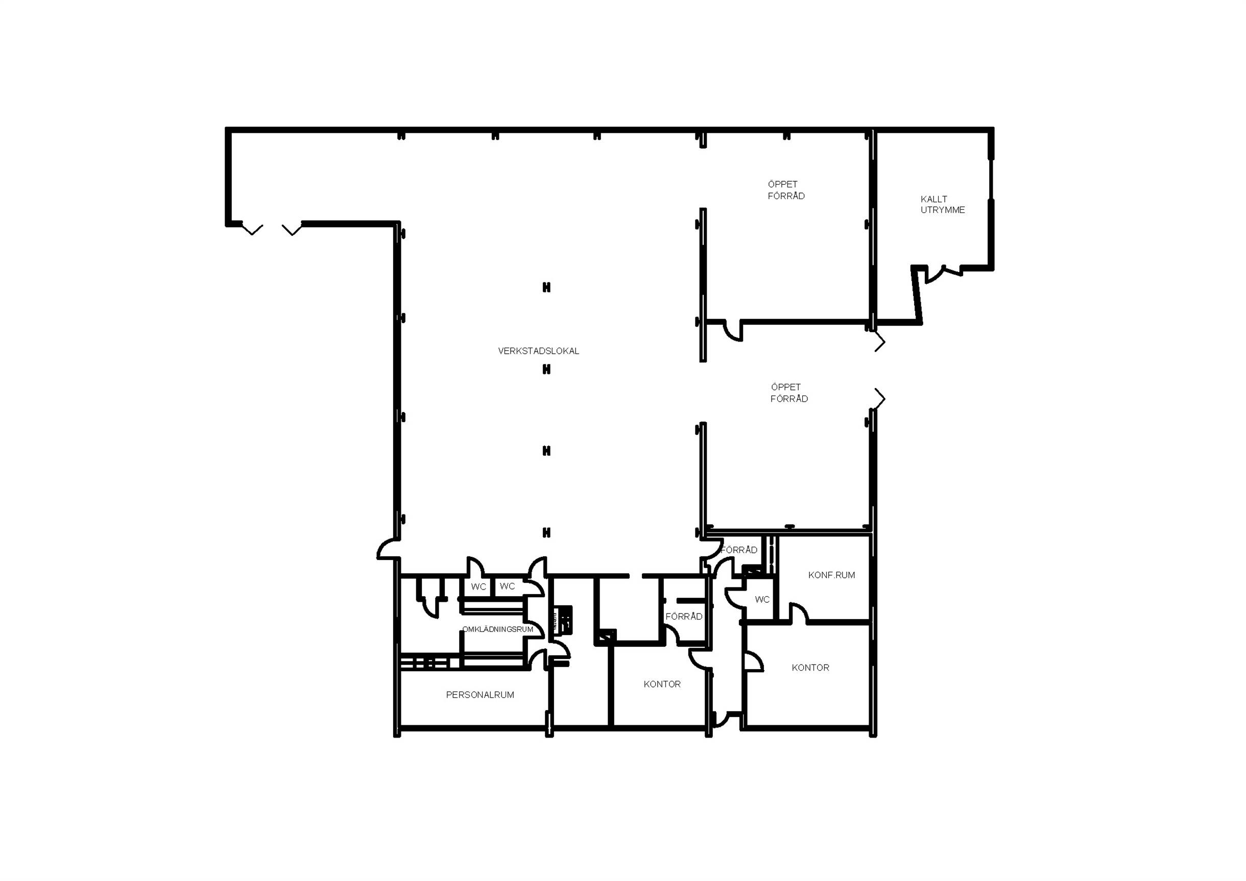 Lager/produktionsloka med tillhörande personalutrymme och omklädningsrum