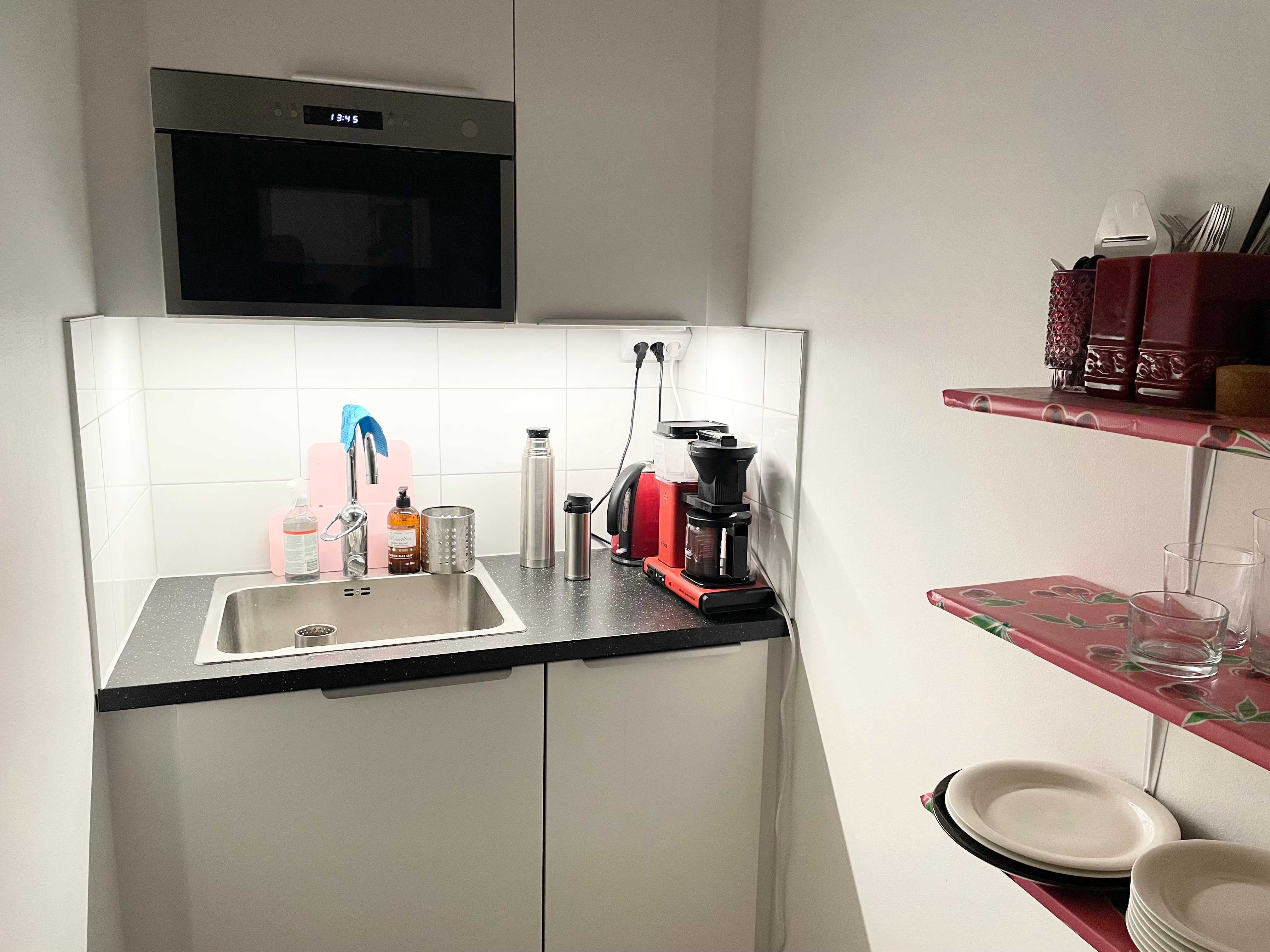 Ett modernt pentry med kyl/frys, inbyggd mikro och diskmaskin samt WC finns i lokalen. Ventilationen betjänas av ett eget FTX-aggregat, vilket ger god luftkvalitet och komfort året runt. Ytskikten är ljusa och moderna – lokalen är renoverad och inflyttningsklar.