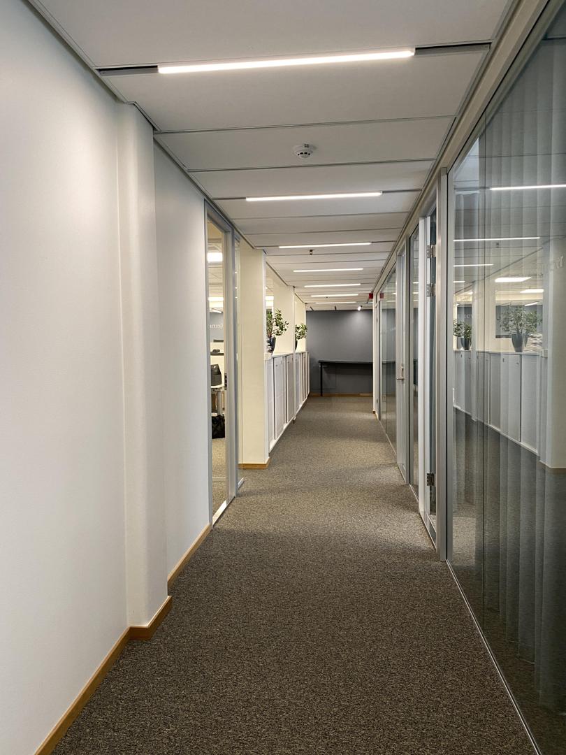 Effektiv planlösning med möjlighet till många arbetsplatser, möten och mötesplatser. En interntrappa kommer att byggas mellan våningsplanen.