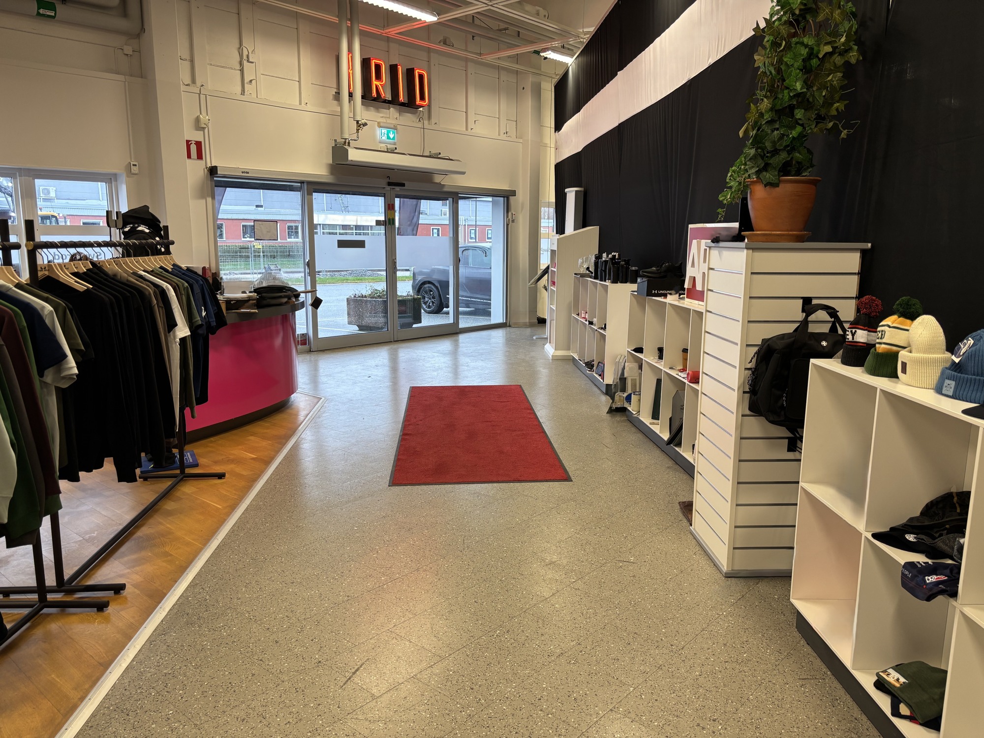 Entrén har automatiska skjutdörrar och ett generöst ljusinsläpp som skapar en välkomnande känsla för besökare.