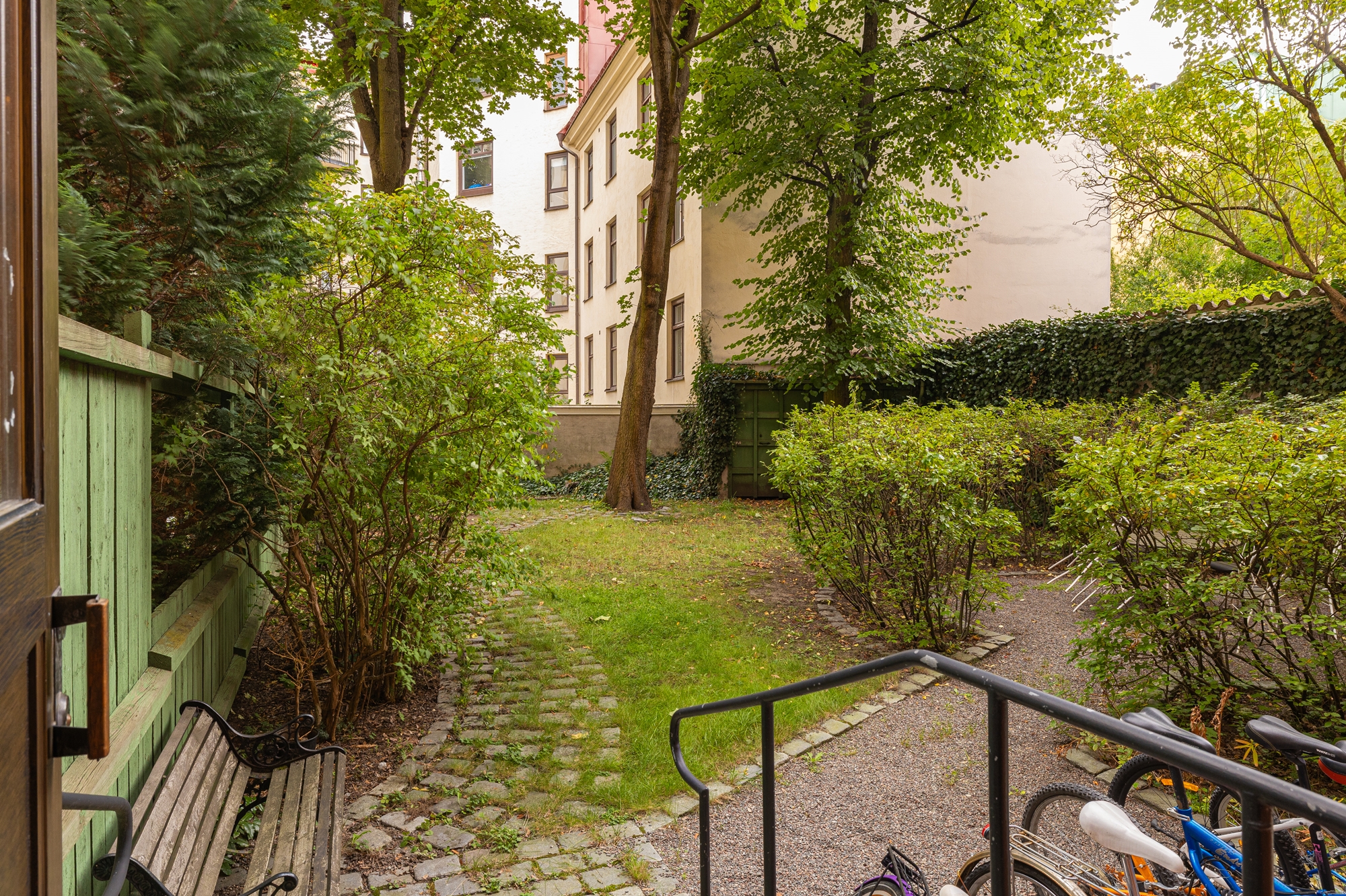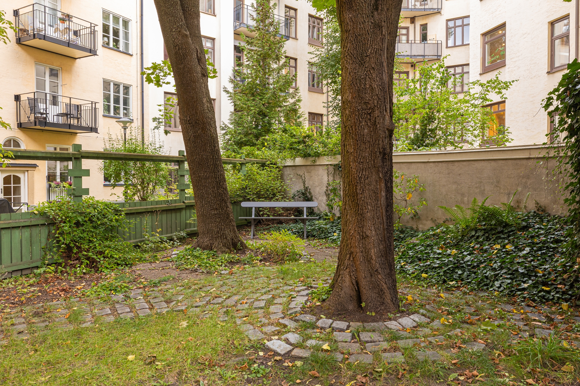 Utöver lokalen finns även en mycket trevlig och lummig innergård som kan nyttjas av husets hyresgäster, perfekt för lunchpausen.