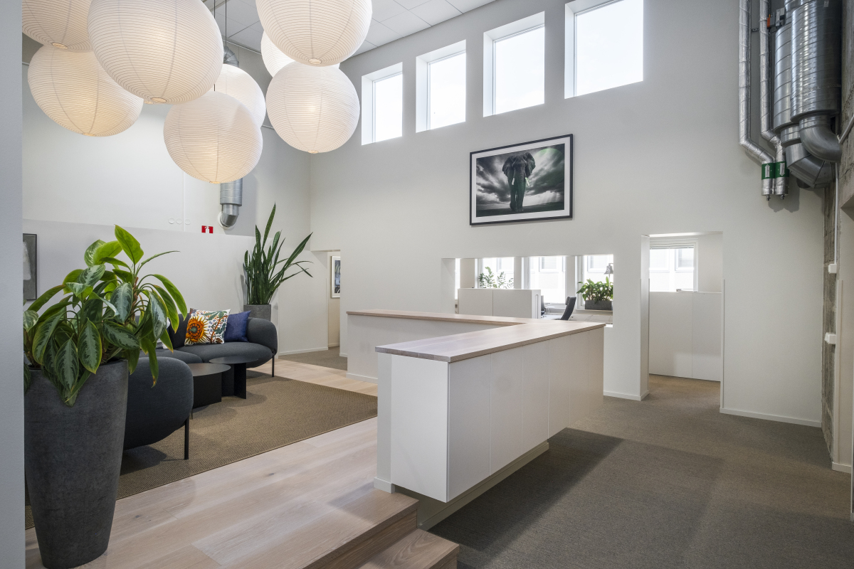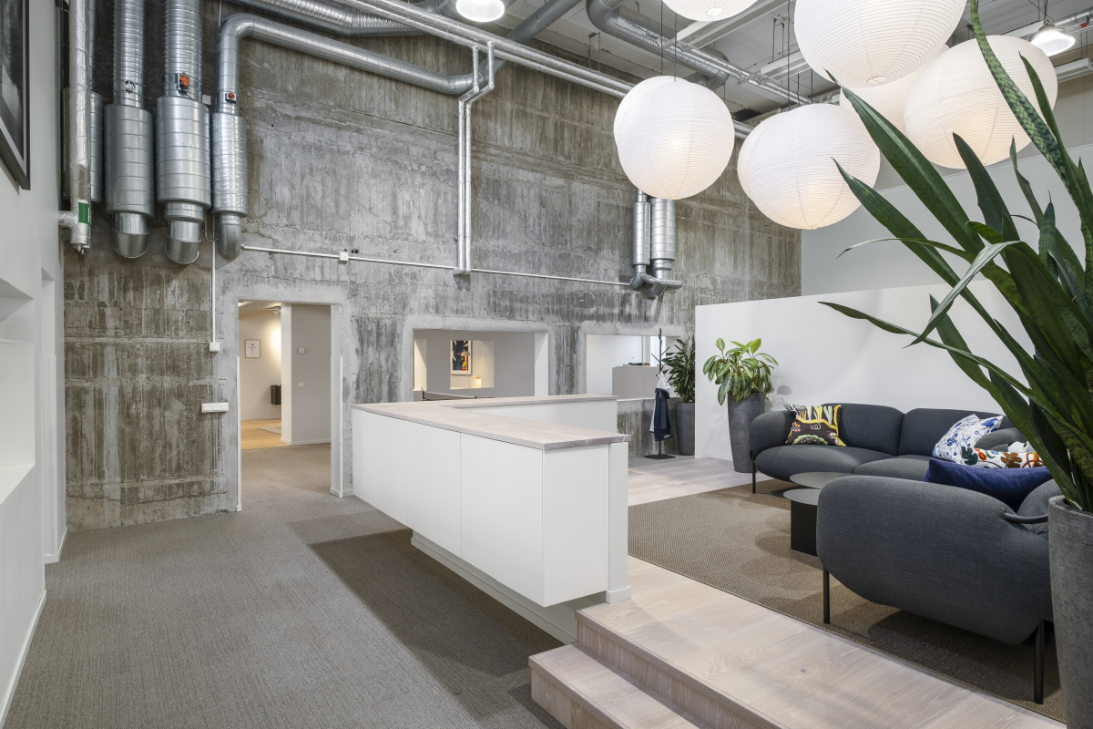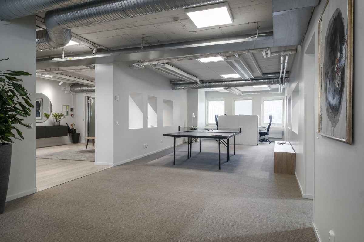 Lokalen erbjuder ljusa och moderna ytor. Tack vare den öppna planlösningen uppmuntras spontana möten.