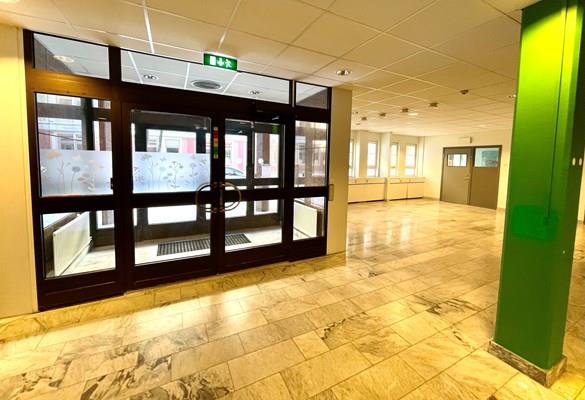 I gatuplan finns en stor och välkomnande entré för era kunder med hiss. Lokalen har generösa ljusinsläpp och ytan ligger på våning två i fastigheten. Det erbjuds även tillgång till ett angränsande centralgarage med möjlighet till parkeringsplatser. Lokalen är anpassad för människor med funktionshinder.