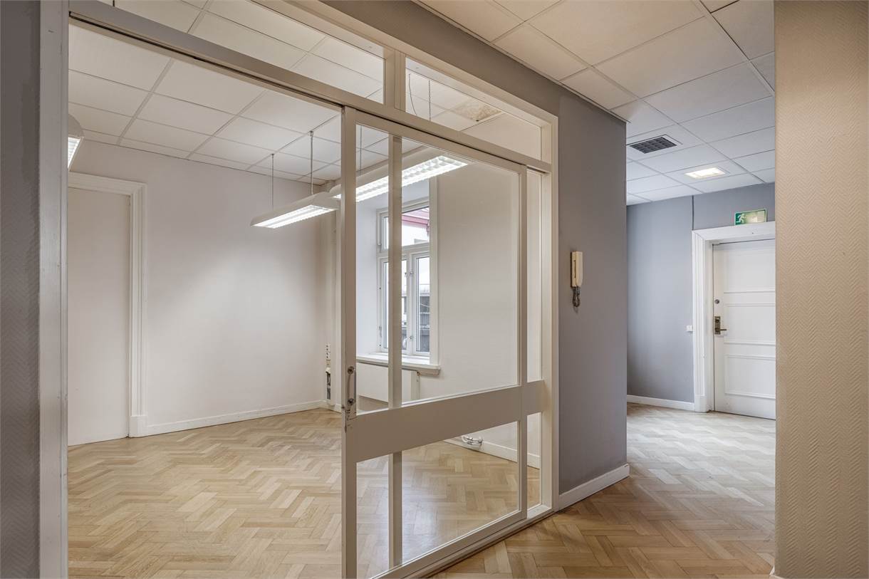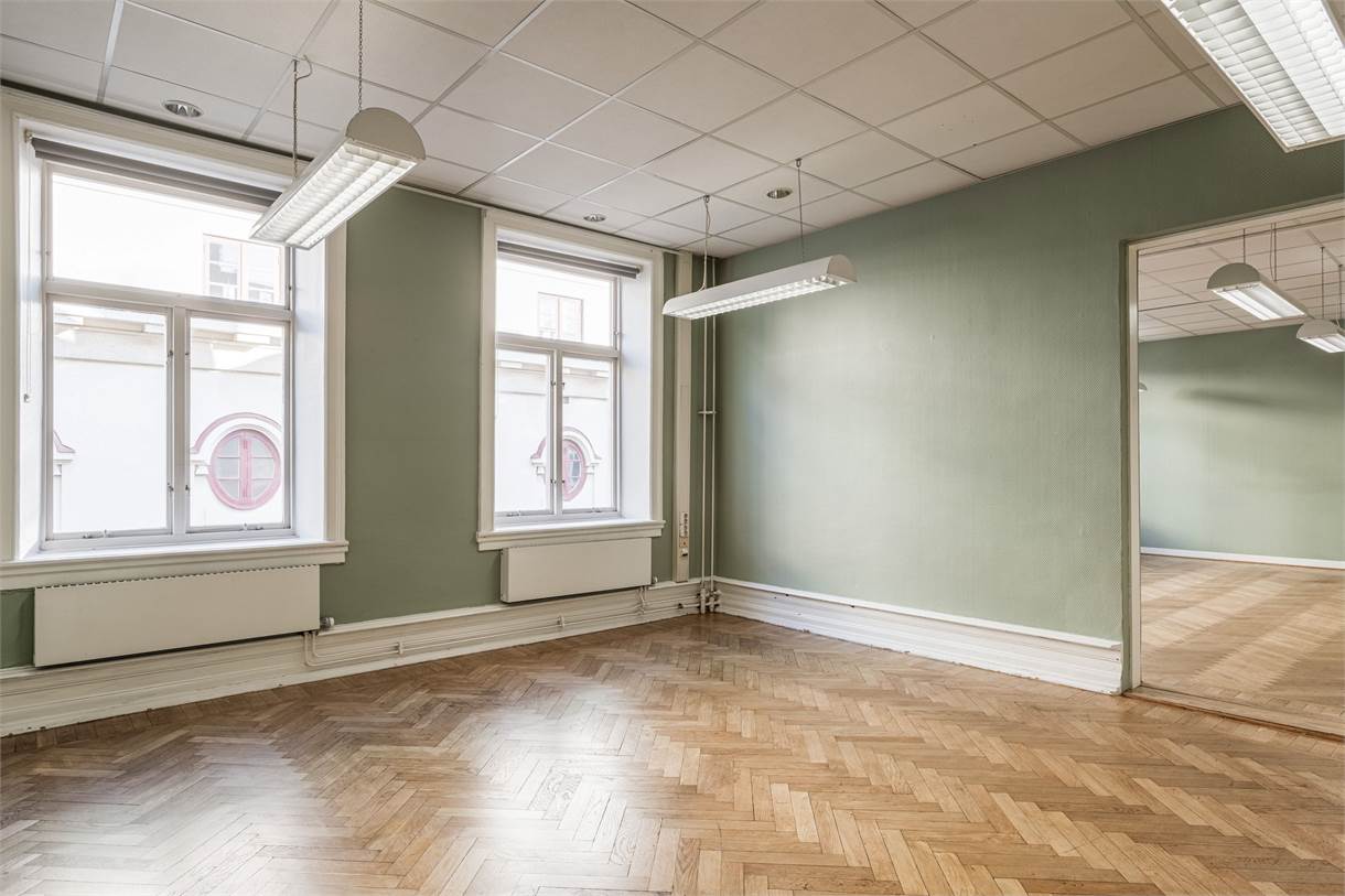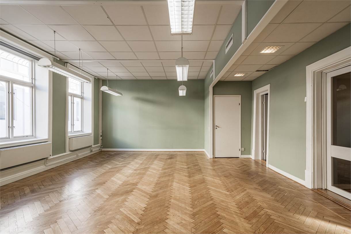 älkommen till Drottninggatan 35 och detta charmiga kontor om 335 kvm – en arbetsplats med både karaktär och funktionalitet. Här möts du av ljusa, välplanerade ytor med smakfulla materialval och vacker fiskbensparkett som löper genom hela lokalen. Resultatet är en stilren, representativ och inspirerande miljö som passar såväl mindre team som växande verksamheter.