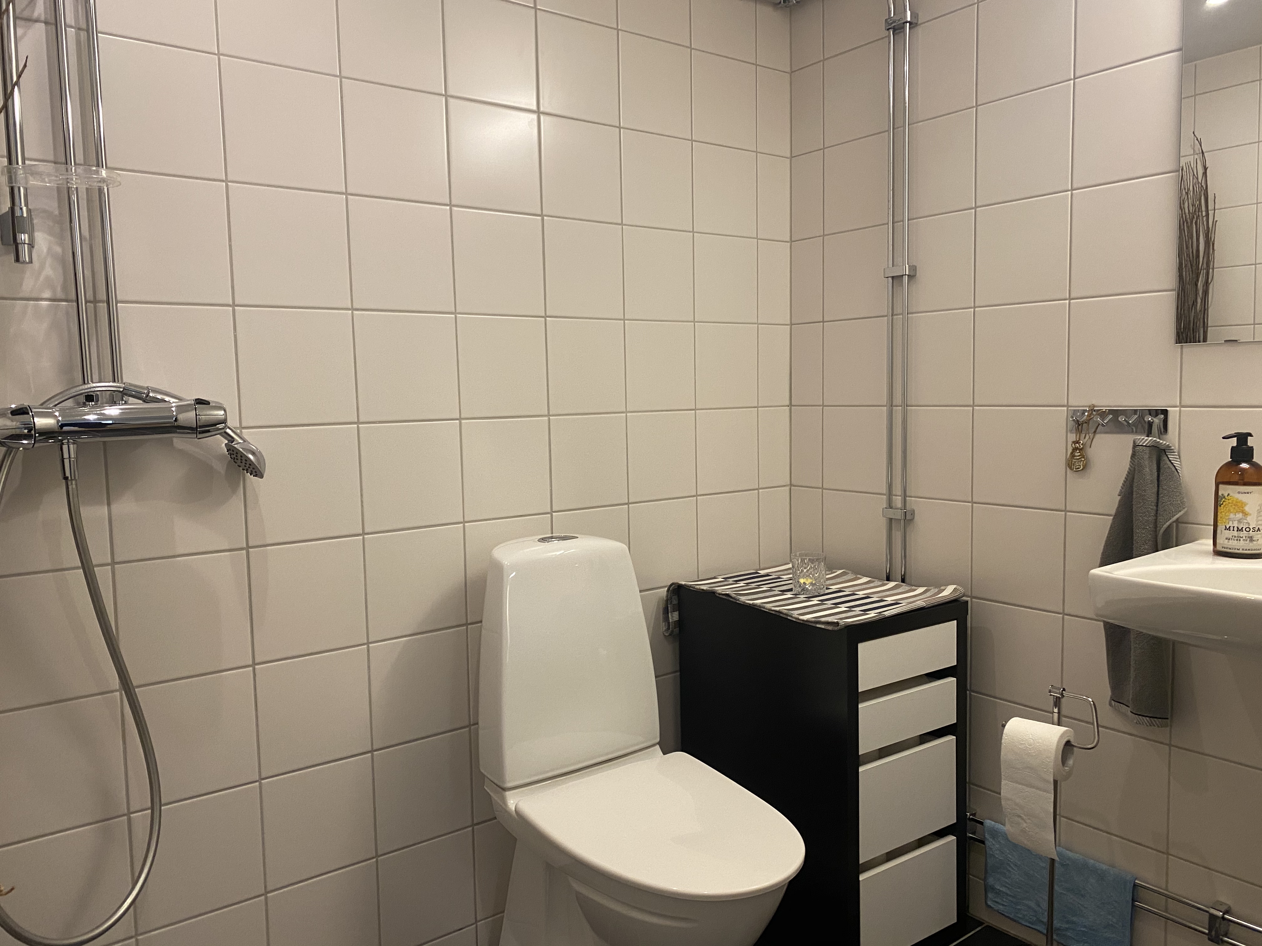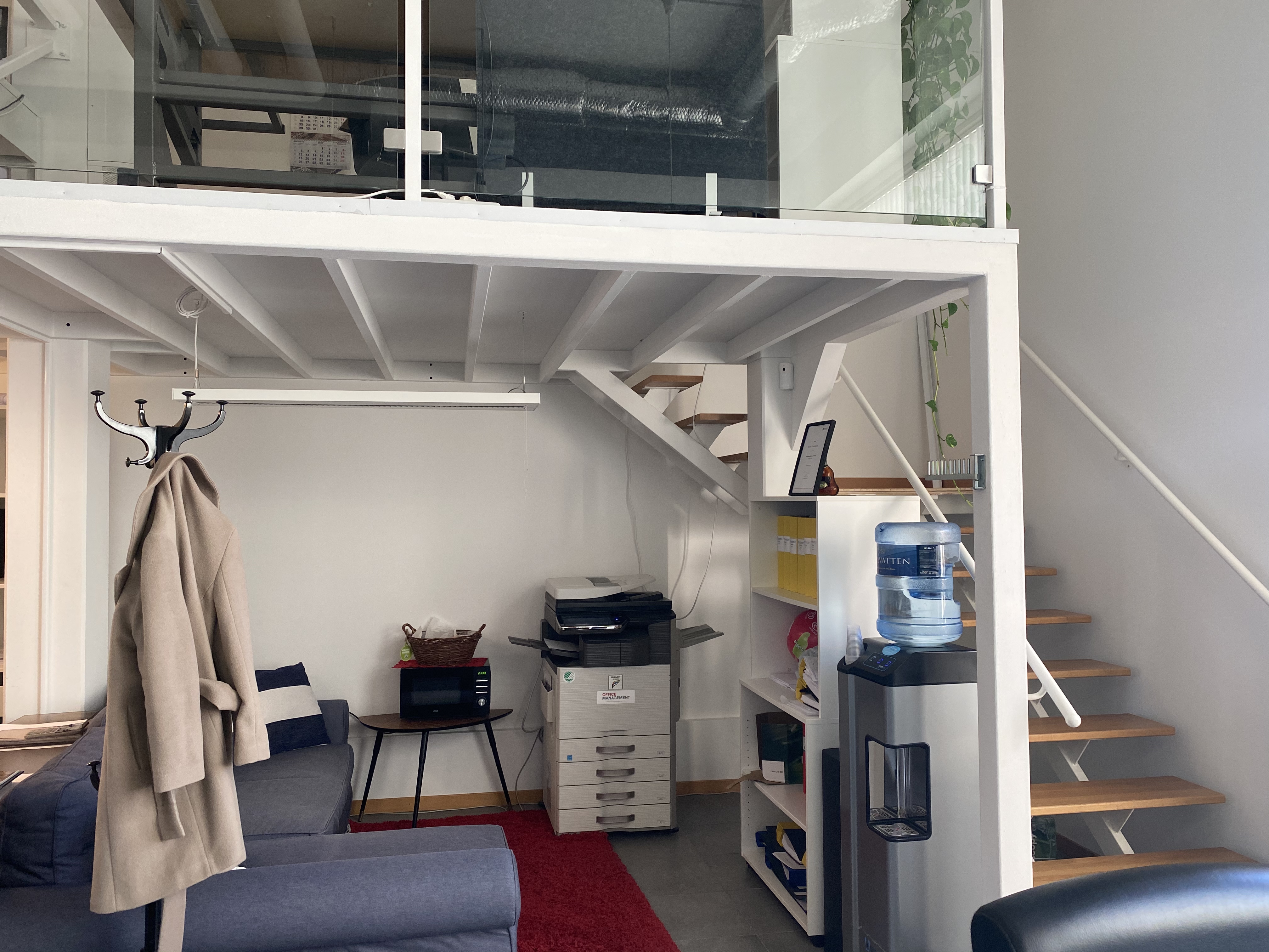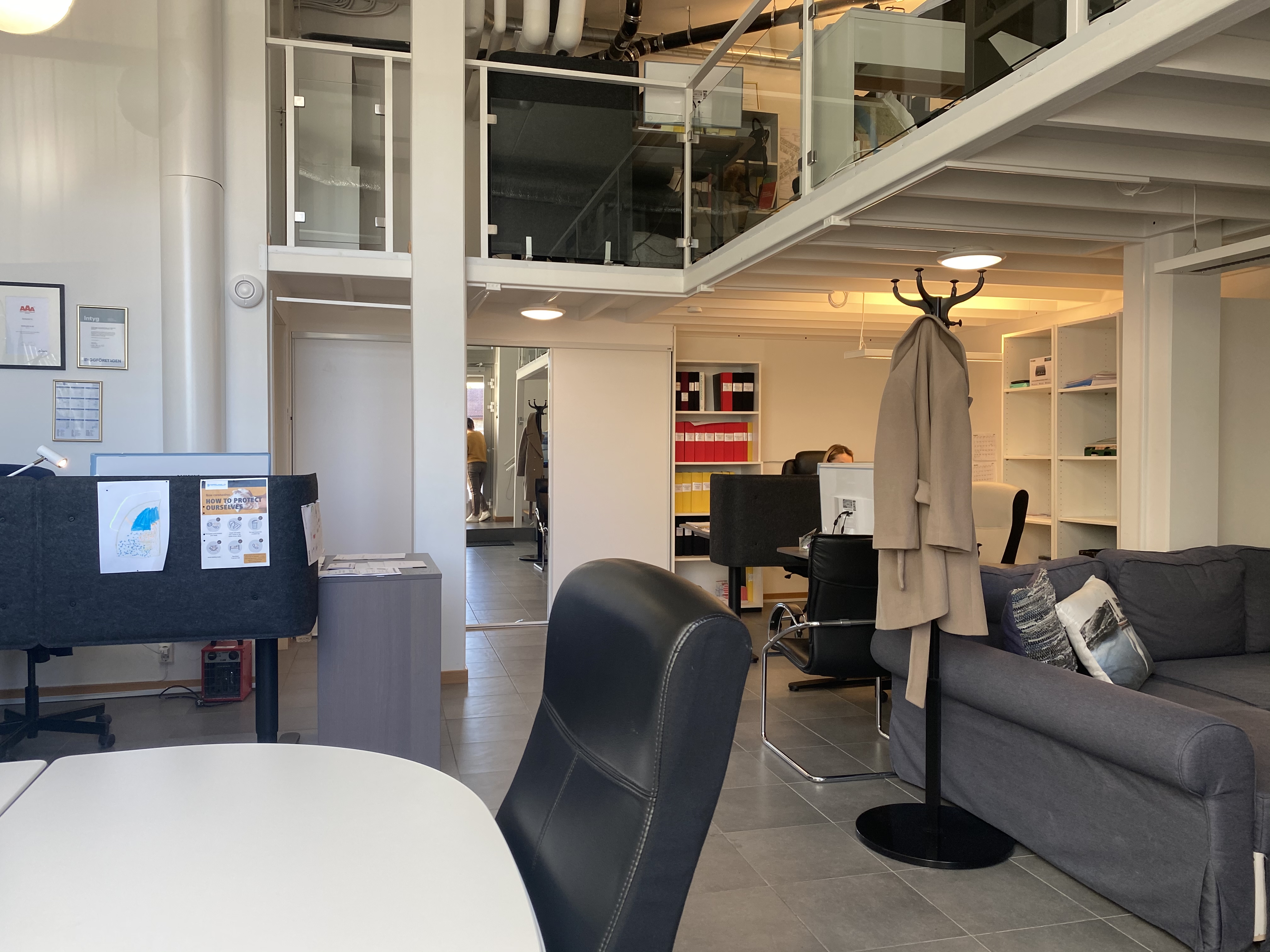 Här får du en lokal som kombinerar funktion och stil. Den öppna planlösningen med loft ger en luftig känsla och högt i tak. Golvet är klätt med klinker och har golvvärme för extra komfort. Lokalen är utrustad med installerad kyla som gör arbetsmiljön behaglig även under varma sommardagar. Baktill finns ett mindre pentry samt toalett med dusch, vilket gör lokalen komplett för daglig verksamhet.