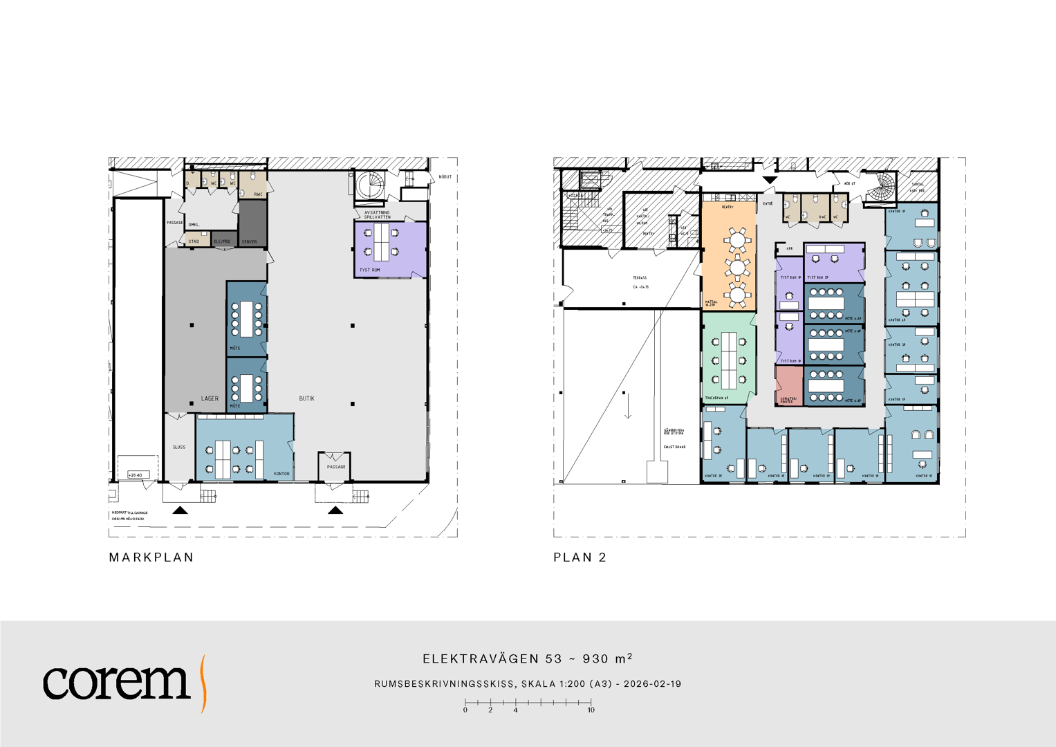 Butiks- eller lagerdelen på markplan är 494 m² stor med en takhöjd på cirka 3,4 meter. Kontoret ligger på plan 2 och är 436 m² stort med en takhöjd på cirka 3 meter. Här finns ljusa kontor med glasväggar såväl som ett stort, modernt och ljust kök. Du får också tillgång till flera konferensrum och en privat terrass med utemöbler som lämpar sig för lunch eller kaffepaus på sommaren.
