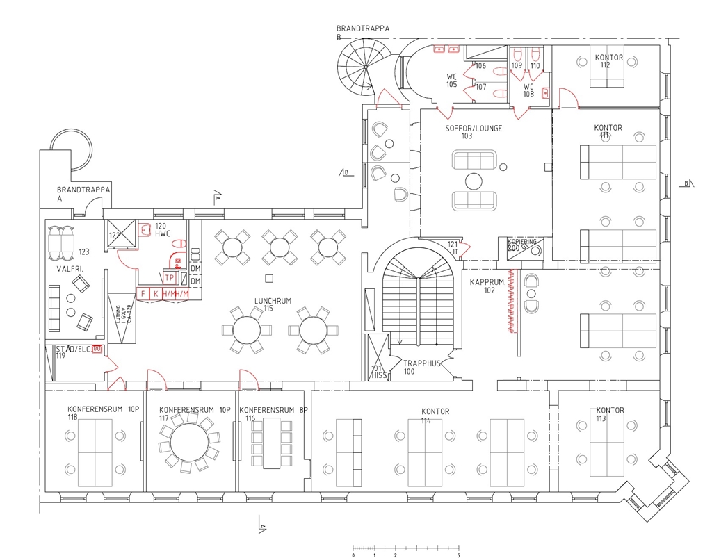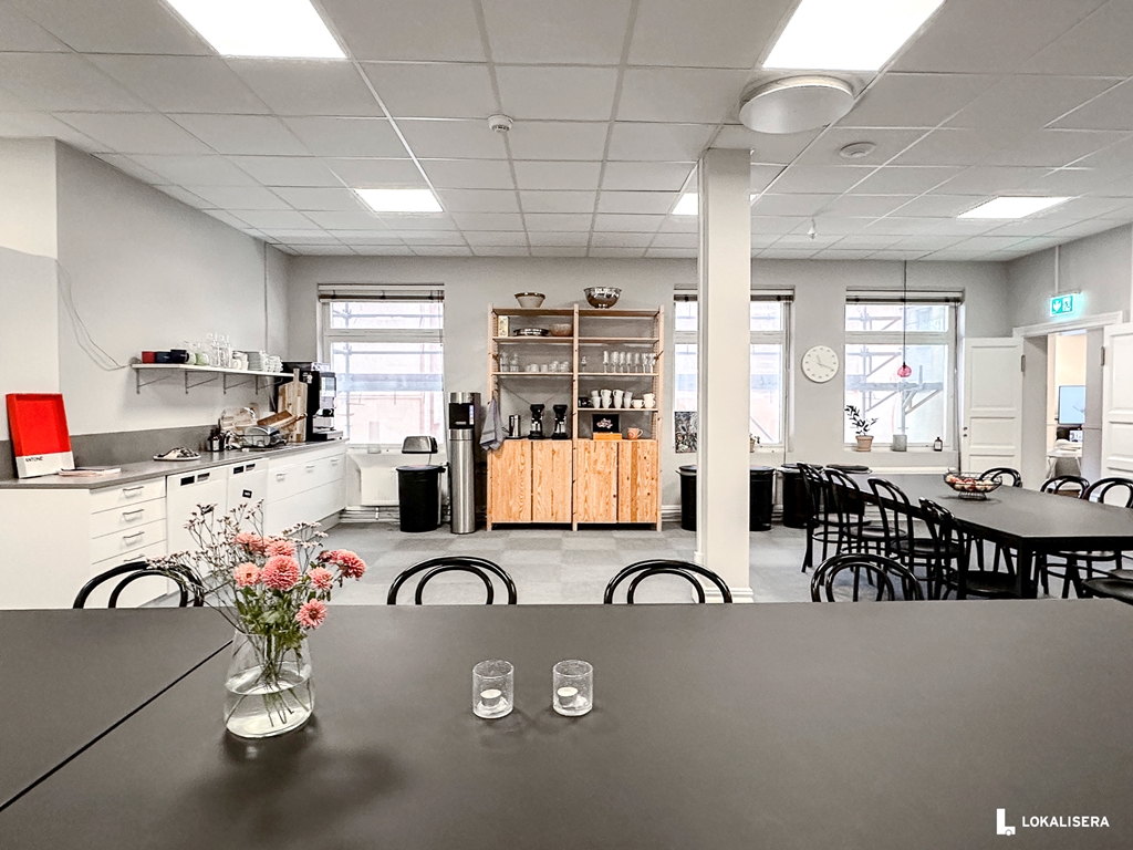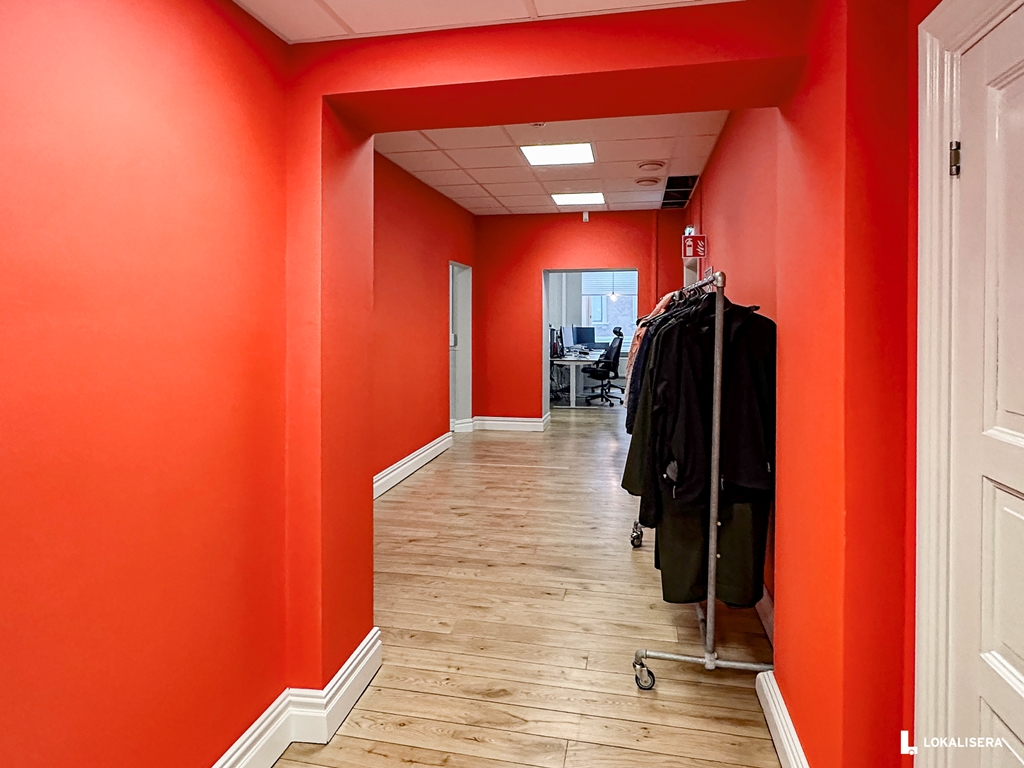 Med sina 430 kvm är lokalen passande för upp till ett drygt 30-tal personer beroende på verksamhet och möblering. Här finns totalt fem toaletter och duschmöjlighet. En balkong mot gården är under uppförande, och hela trapphuset i detta vackra stenhus, känt som "Företagarnas hus", renoveras omsorgsfullt och beräknas stå klart efter årsskiftet 2025/2026.