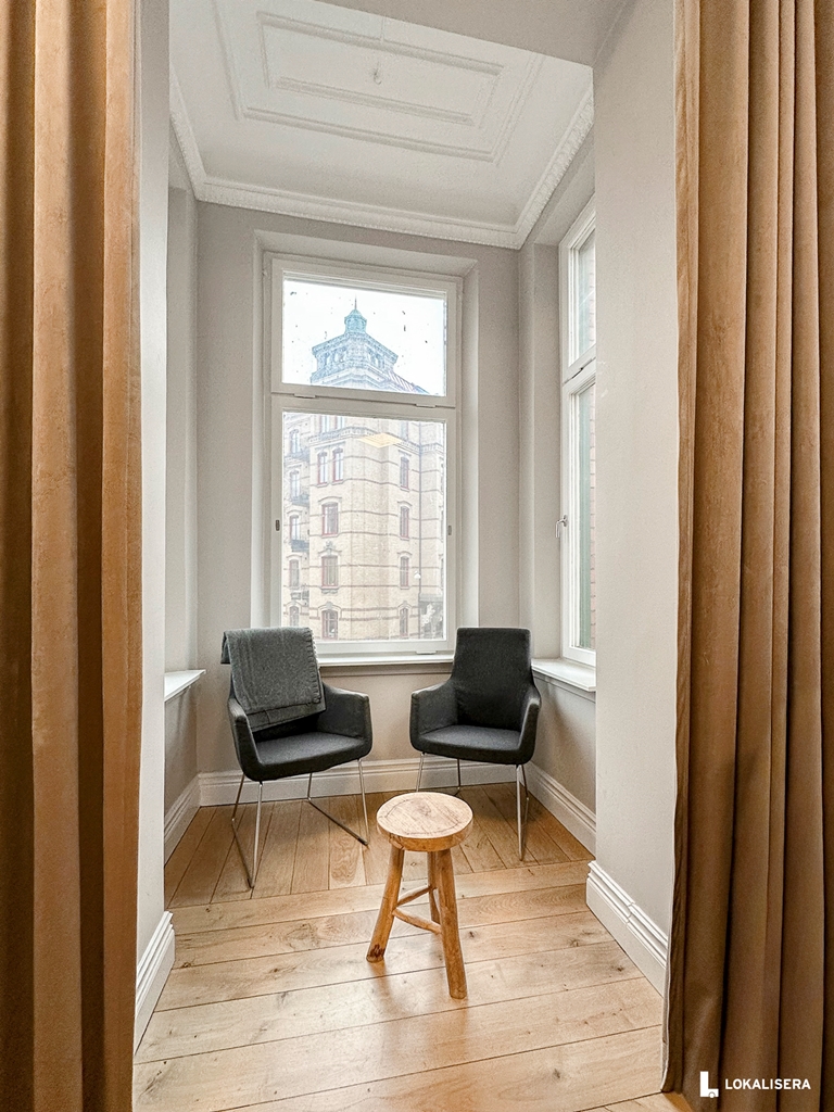 Lokalen är belägen ett stenkast från Vasaplatsen och bara några minuters promenad till Avenyn och Stora Teater, ett oslagbart läge för företag som vill kombinera närhet till stadens puls med en inspirerande arbetsmiljö. Det är ett lugnt cityläge, lite motsägelsefullt kanske, men precis så är det.