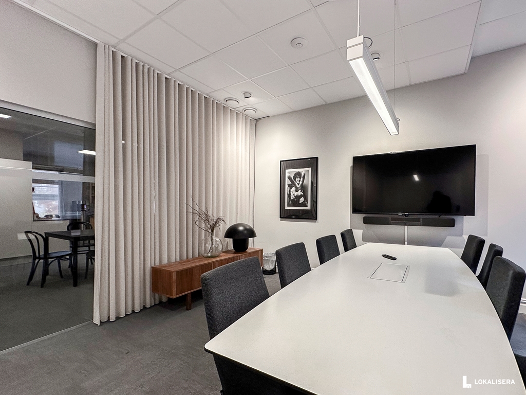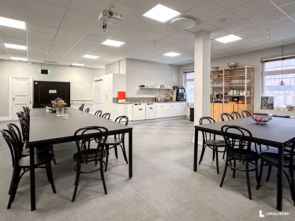 Lokalen har en öppen och flexibel planlösning med stora sammanhängande ytor, kompletterat av flera separata kontors- och mötesrum. Här finns även pentry, pausytor och ytor som enkelt kan anpassas efter verksamhetens behov.