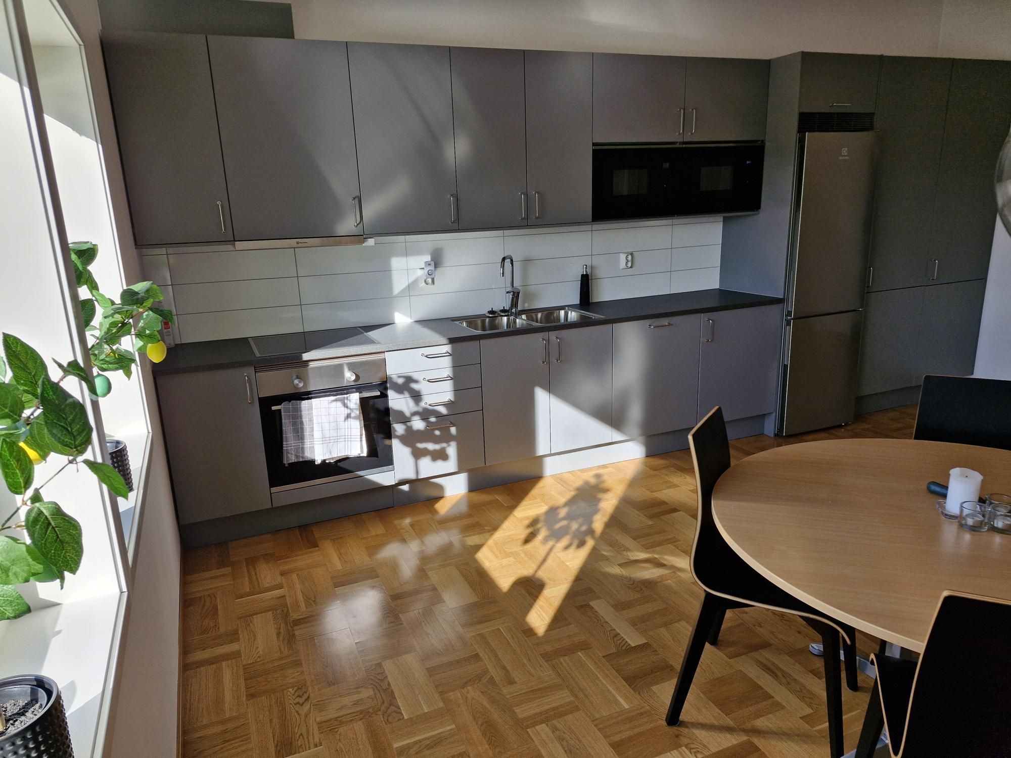En mix av bostadsområde och företagsområde. Enkelt att ta sig hit även om du cyklar eller går.