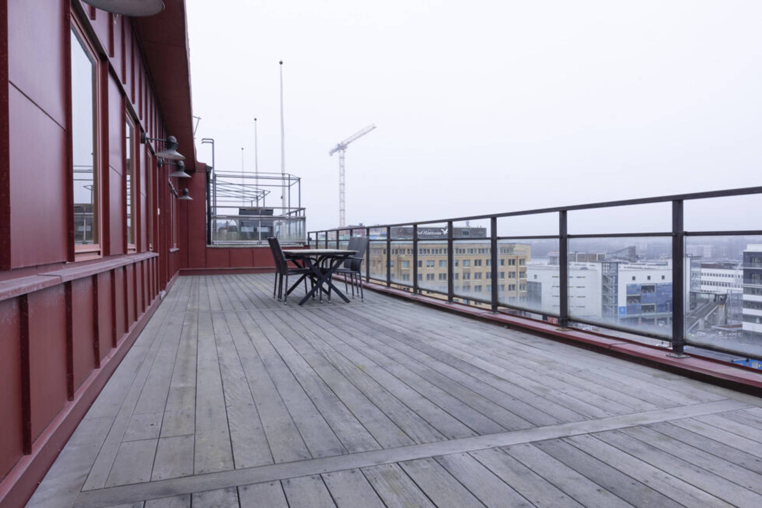 Utöver detta har lokalen en egen terrass om cirka 36 kvm. Här erbjuds en otrolig utsikt över det framväxande Masthugget och Göteborgs stad. Läget på Första Långgatan innebär närhet till ett brett utbud av restauranger, caféer och service.