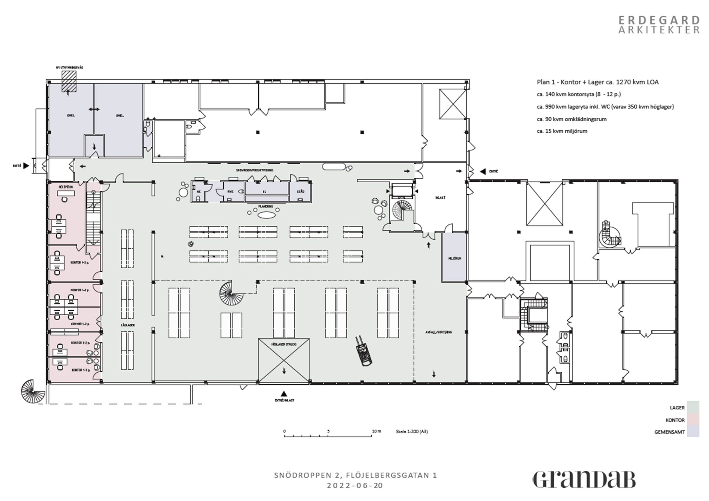 Perfekt kombilokal där andelen kontor/lager enkelt kan anpassas. Markport och höglager finns.
