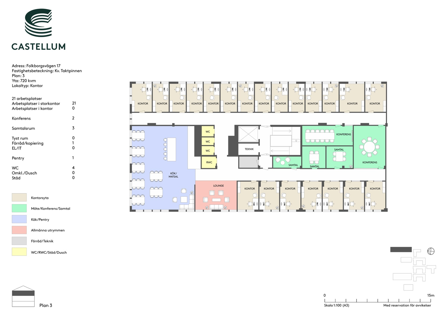 Lokalen på plan 2 och 3 har stora fönsterpartier och ett härligt ljusinsläpp med närhet till naturen. Lokalen är utformad med klassiska cellkontor där varje medarbetare för sin egen lugna arbetsyta, perfekt för fokus. Lokalen kan anpassas efter önskemål och även delas till en våning om 720 m².