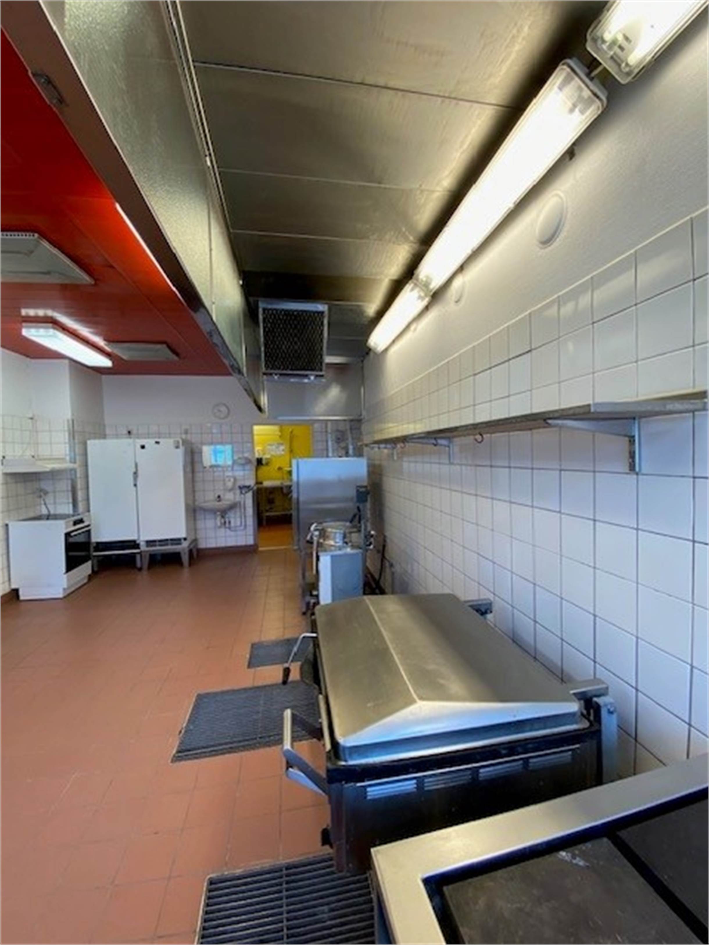 Lokalen är utrustad med ändamålsenlig köksutrustning och erbjuder goda förutsättningar för effektiv produktion, servering och catering. Här finns möjlighet att snabbt komma igång då lokalen är ledig omgående.
