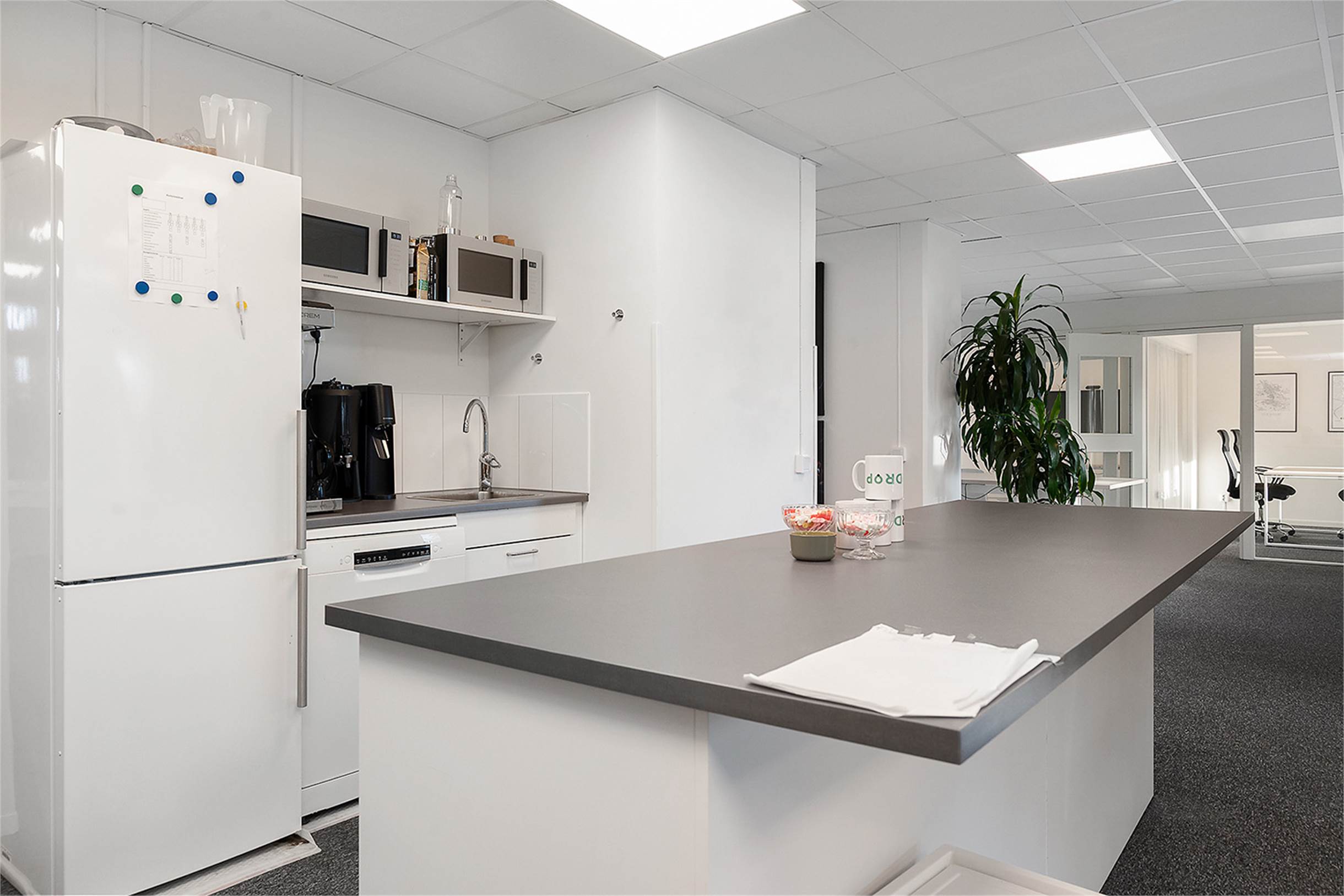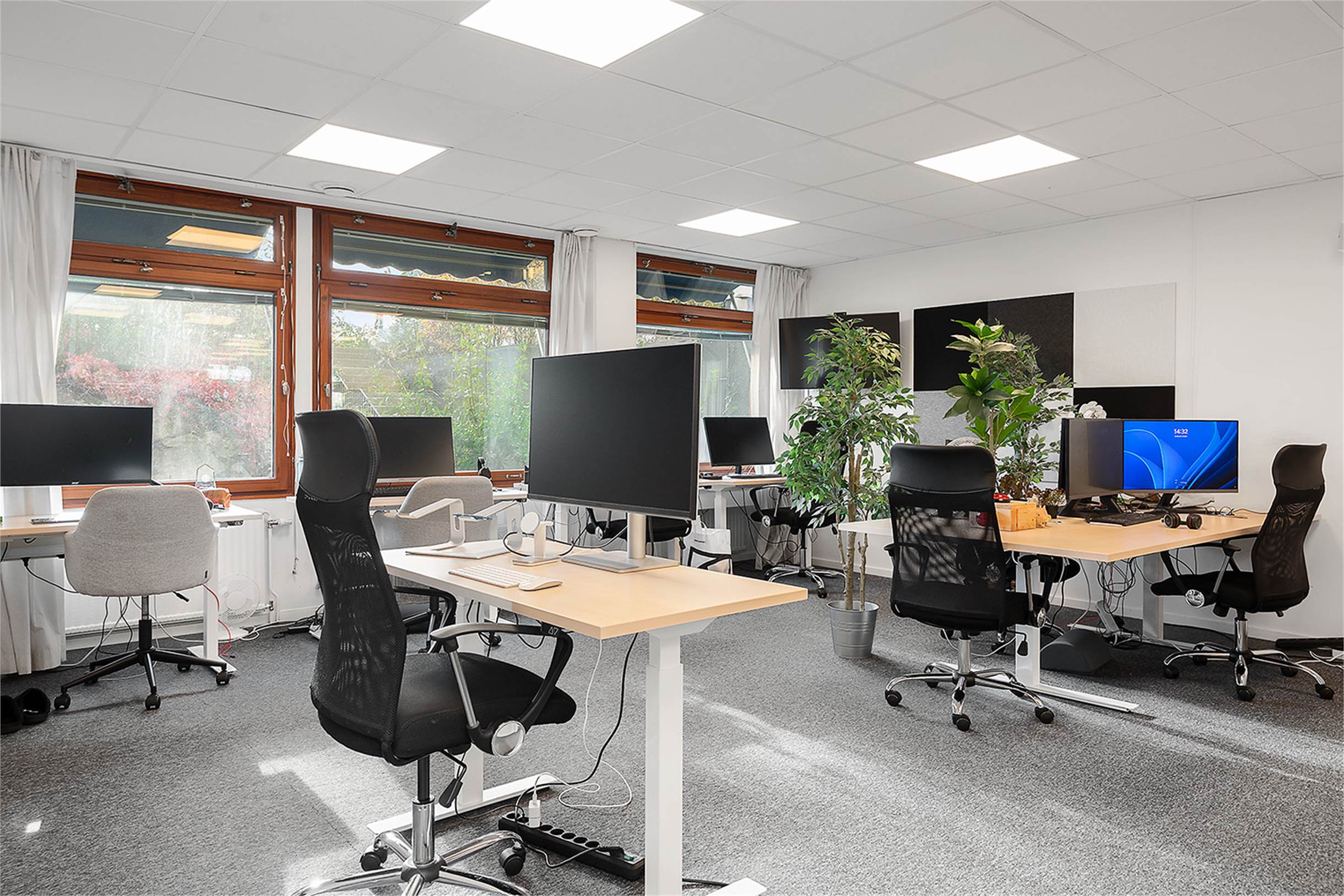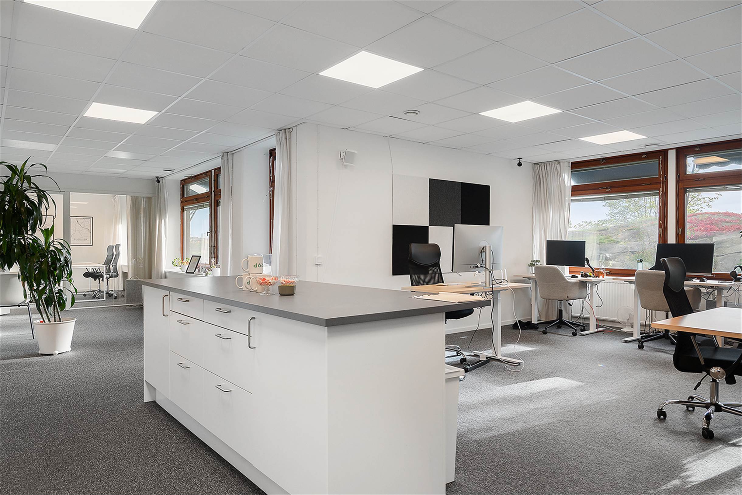 Ytorna utgörs av både öppet kontorslandskap och flera mötesrum. God plats för större konferensbord samt två större mötestum med plats för 6-8 personer bakom glasvägg. Vid entrén finns plats för både lounge och reception. Ett litet rum där man kan sitta ostört och ringa samt en toalett och ett badrum med wc. Vid bakdörren finns även ett litet förrådsutrymme. Mitt i lokalen finns ett pentry med en stor köksö och plats för matbord.