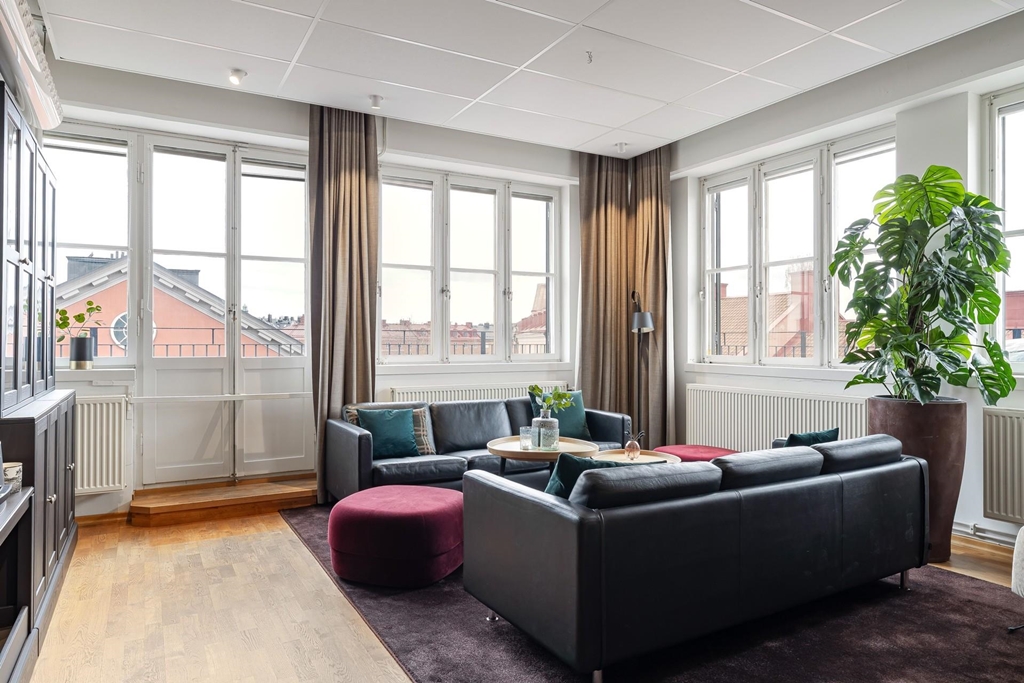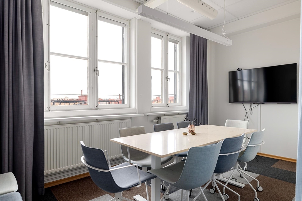 Som pricken över i:et finns två fantastiska takterrasser med vidsträckt utsikt över stadens takåsar en idealisk plats för pauser, informella möten eller kundevent.