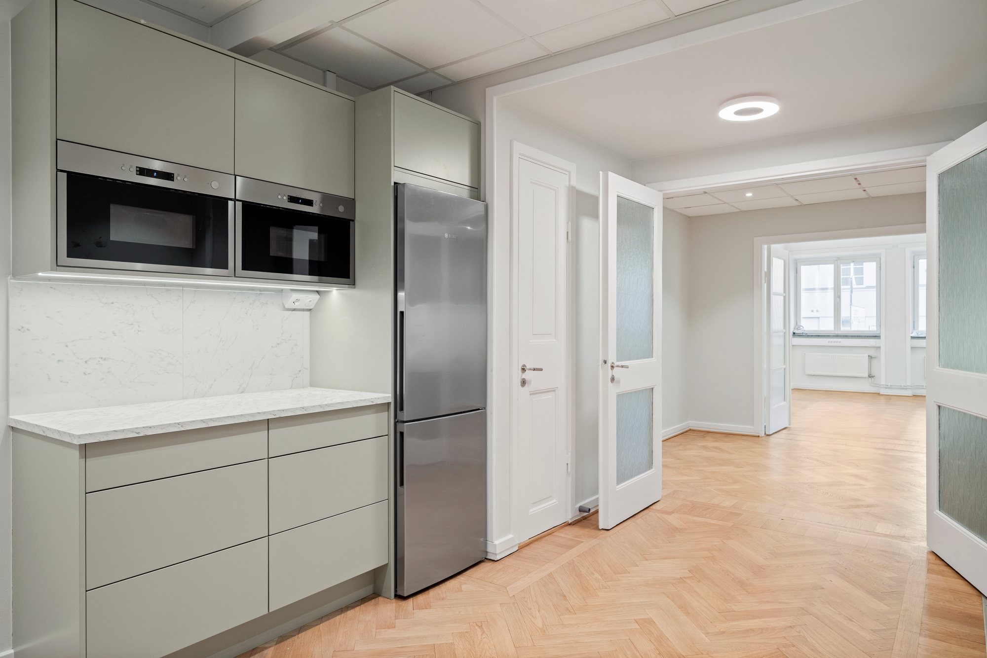Lokalen är nyrenoverad och redo för inflyttning. Fastighetsägaren har installerat ett uppdaterat kylsystem för optimal komfort samt ett nytt, modernt pentry som utgör lokalens sociala hjärta. De genomgående ljusa ytskikten med fiskbensparkett och fönstren mot Götgatan skapar en ljus och energigivande arbetsmiljö. Fastigheten är välskött och erbjuder service som cykelrum för anställda samt en trevlig innergård.