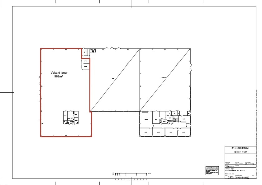 Lokalen består av ca 700 m2 lager med takhöjd på 6 m samt kontorsytor i två plan. Lokalen medger möjlighet till omdisponering där nuvarande kontorsytor kan konverteras till större sammanhängande lageryta (samt eventuell möjlighet till framtida utökning av lageryta om ca 700 m²).