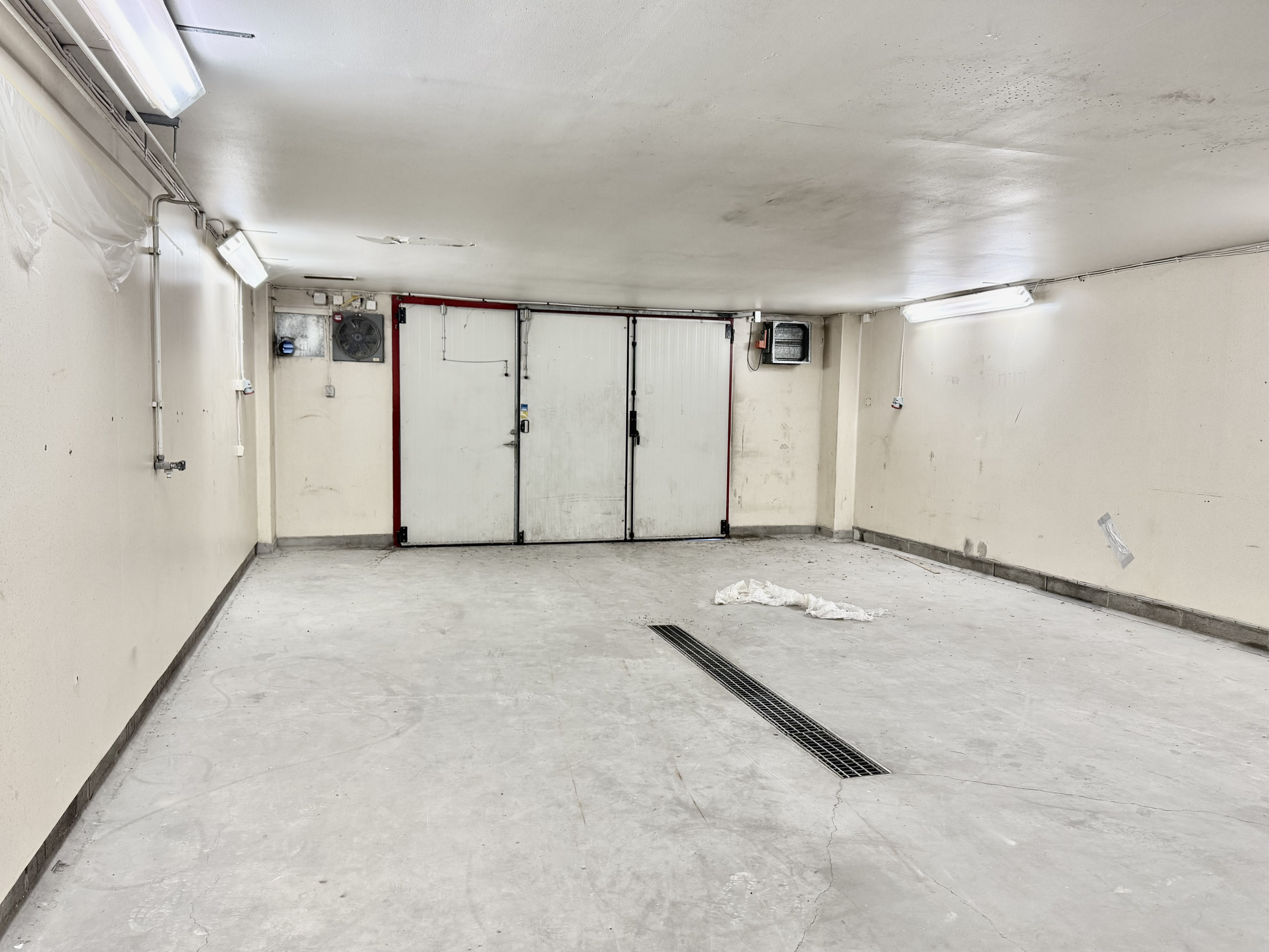 Lagret nås via kontorets bottenplan, markport samt garageport. Garageporten leder in till en del av lagret som har nyttjats som garageyta med avspolningsmöjligheter. Kontoret nås via separat personal/kund-entré.
