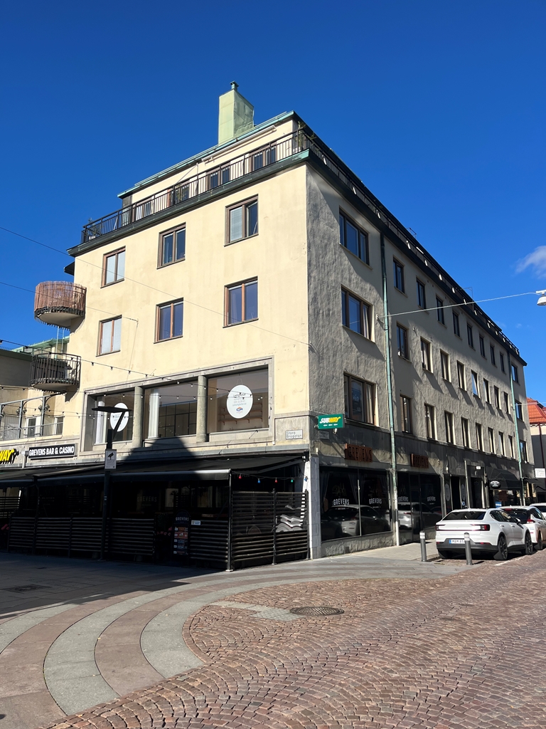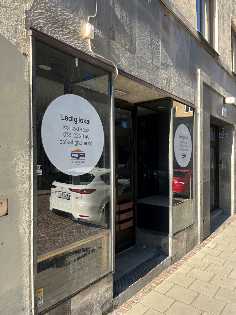 En ljus och rymlig lokal i absolut A-läge mitt i Borås centrum. Lokalen ligger en trappa upp med skyltfönster ut mot gågatan och har egen entré i markplan. Med sina stora skyltfönster ingiver lokalen gott ljusinsläpp samt mycket goda exponeringsmöjligheter. Till lokalen har man en egen uteplats/terrass.