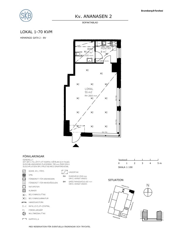 Öppen planlösning med separat utrymme för pentry. WC & dusch finns även i lokalen.