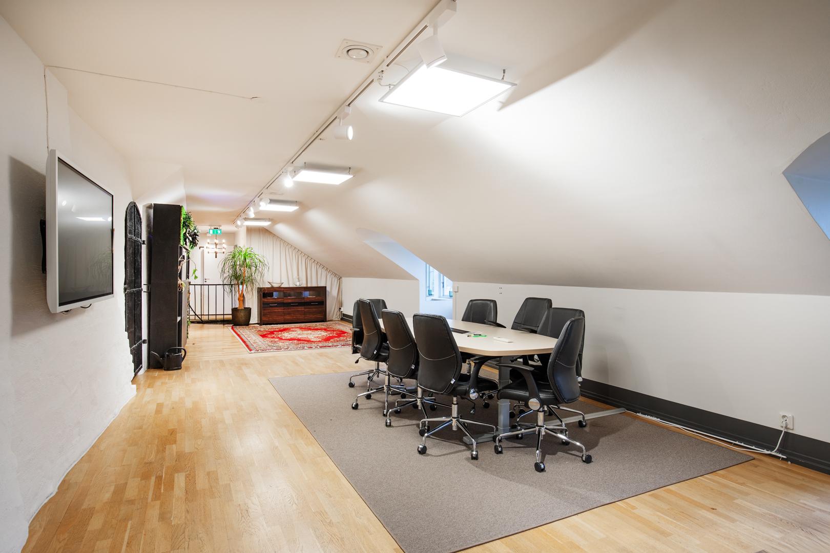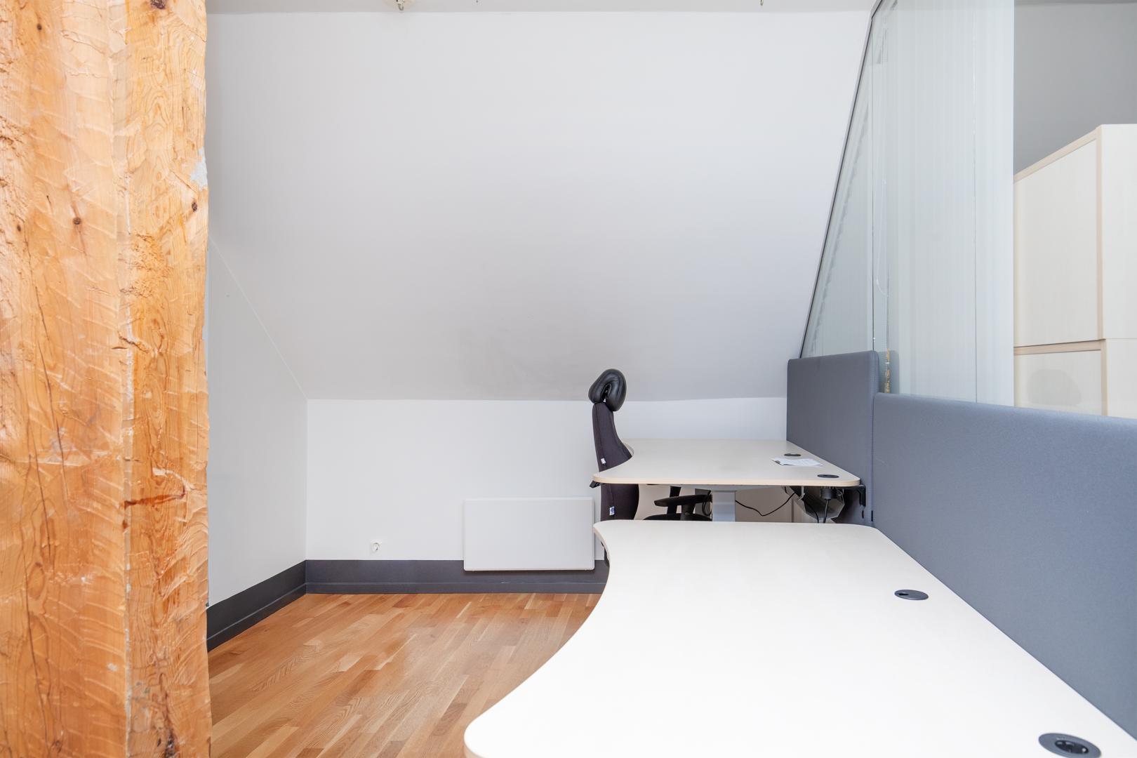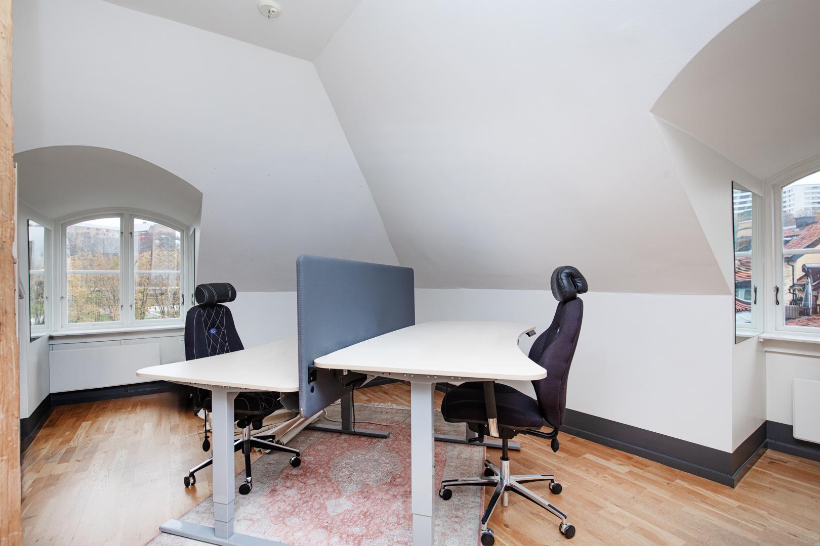 Lokalen är idealisk för företag som vill ha ett flexibelt kontor med karaktär, inklusive fyra separata kontorsrum i olika storlekar, ett rymligt öppet kontorslandskap och ett mötesrum som nås via en trappa ned. Här finns även ett rymligt kök/pentry med gott om plats för matbord.
